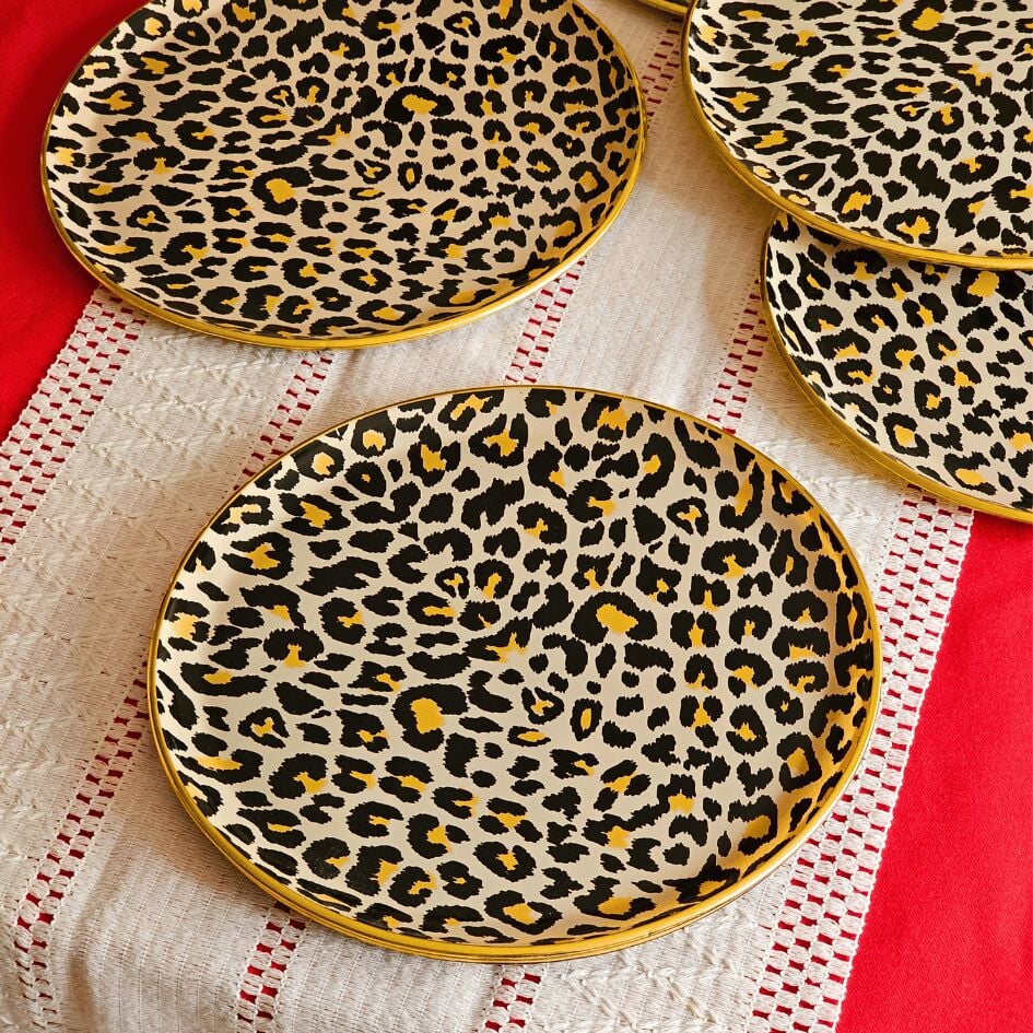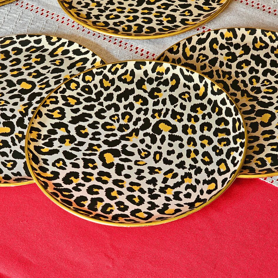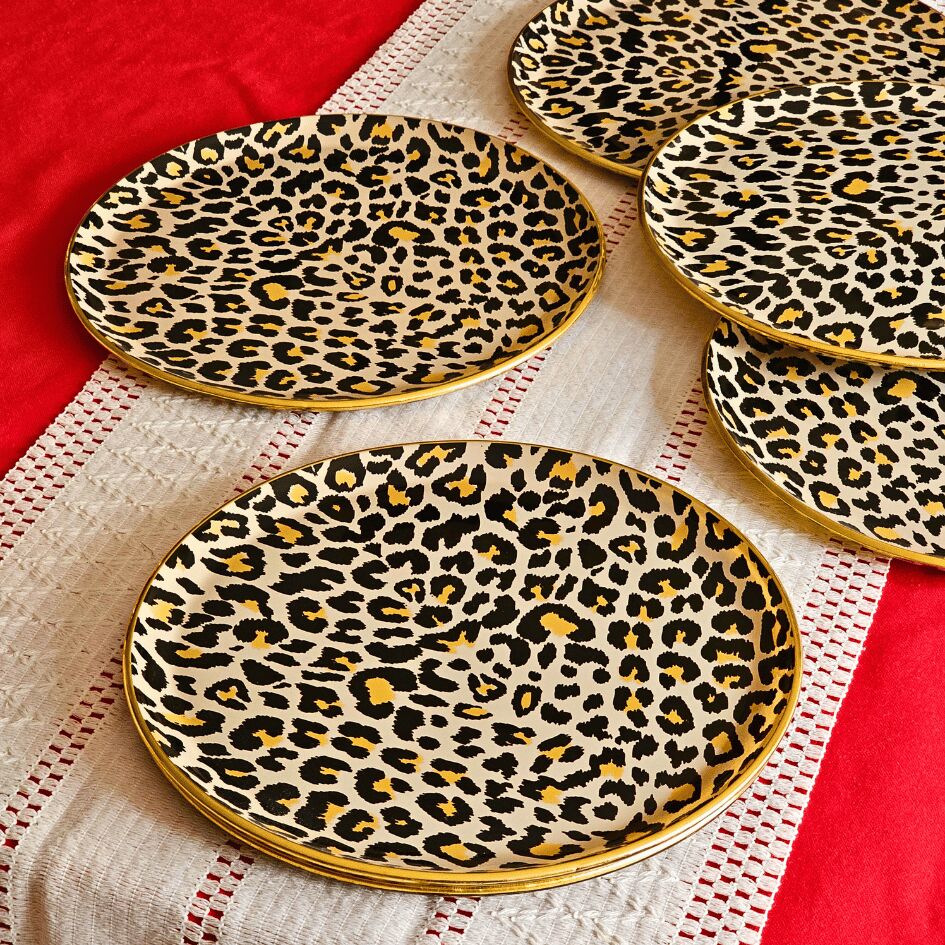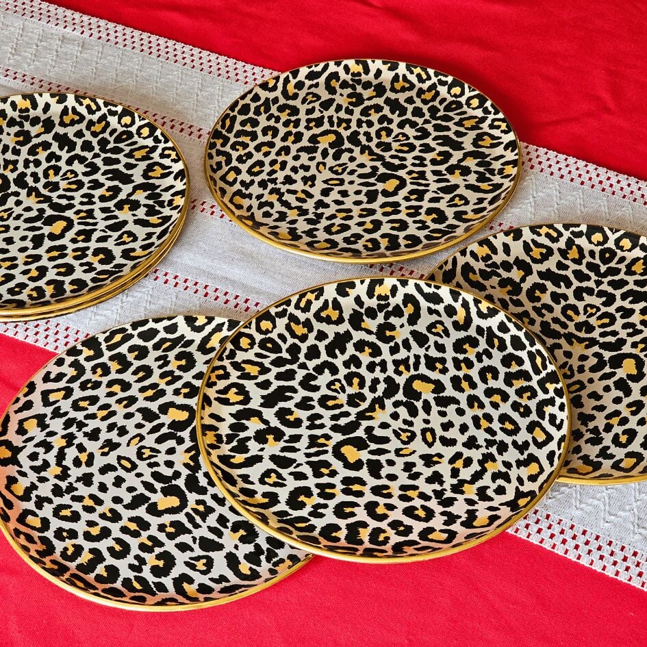 Glore Leopar Somon Altın Yaldızlı Cam Servis Tabağı Takımı