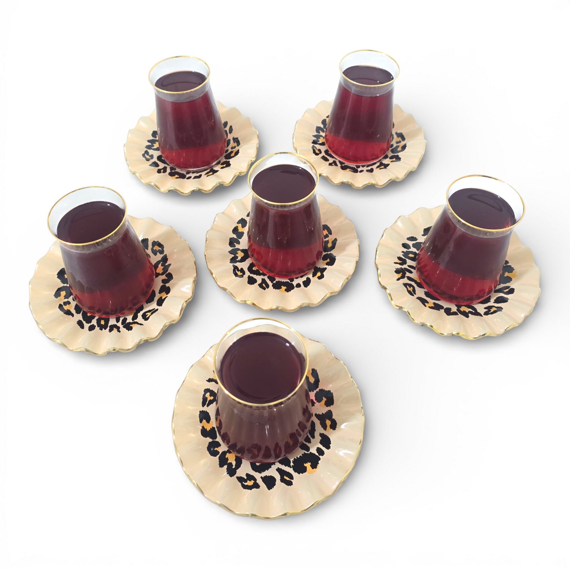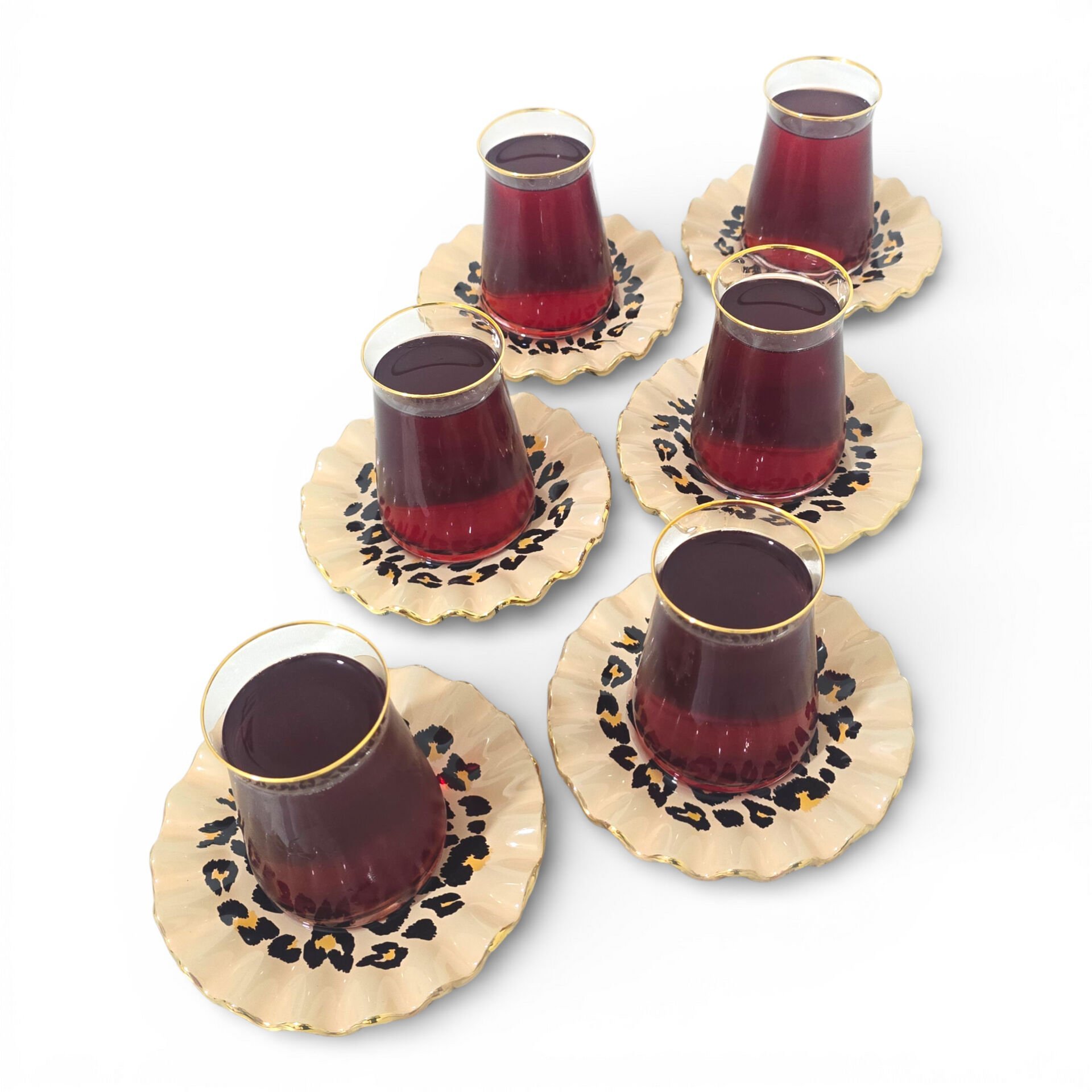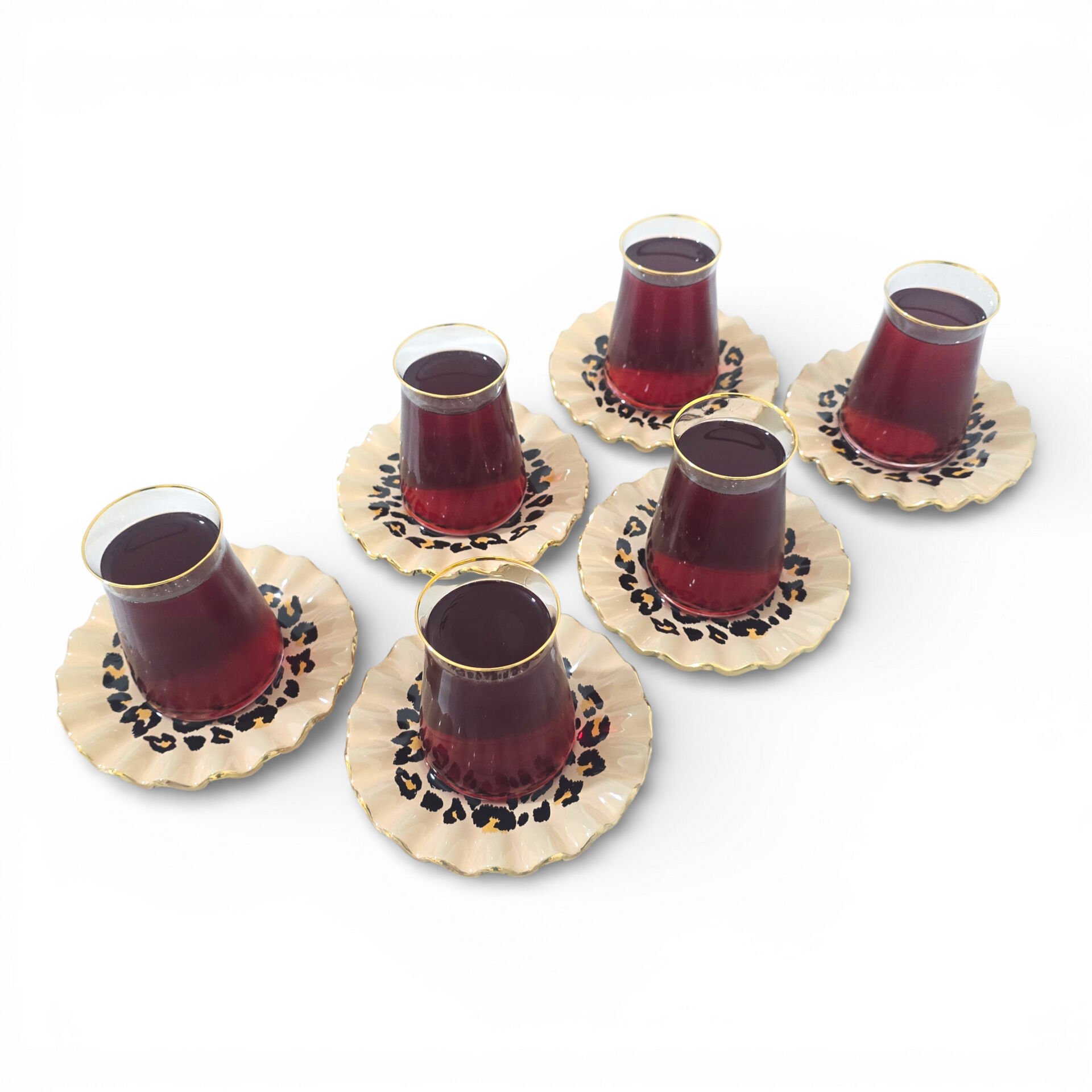 Sudedi Home Leopar Desenli Gerçek Altın Yaldızlı Kristal Cam Çay Takımı 6 Kişilik