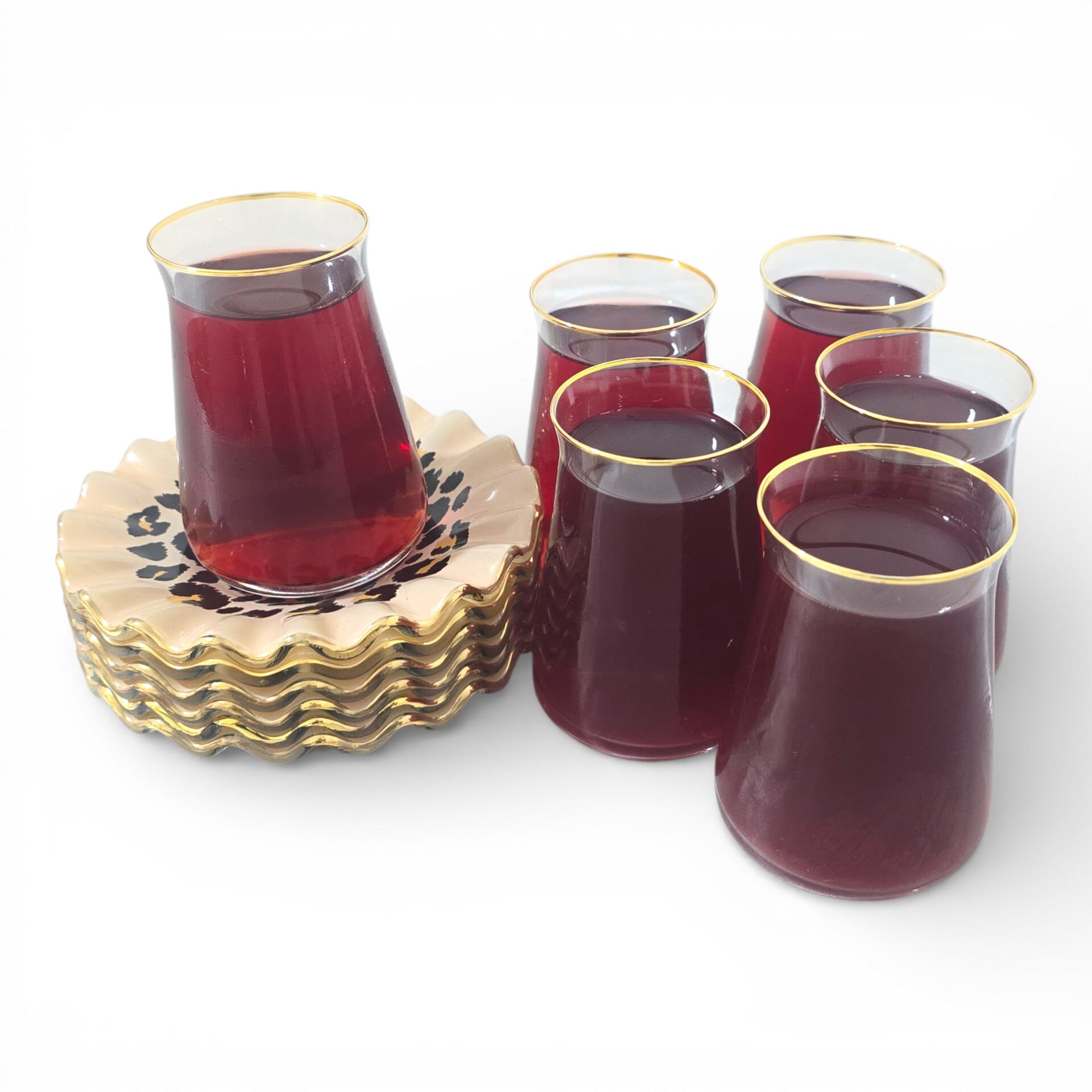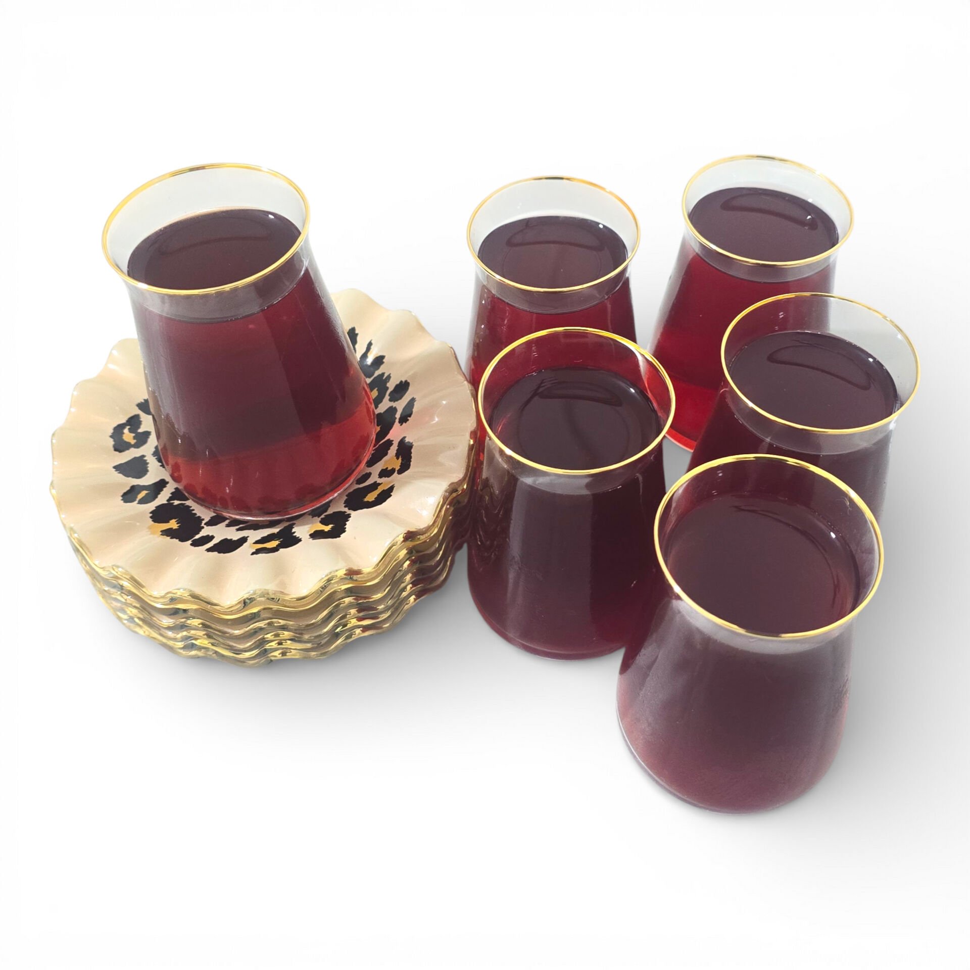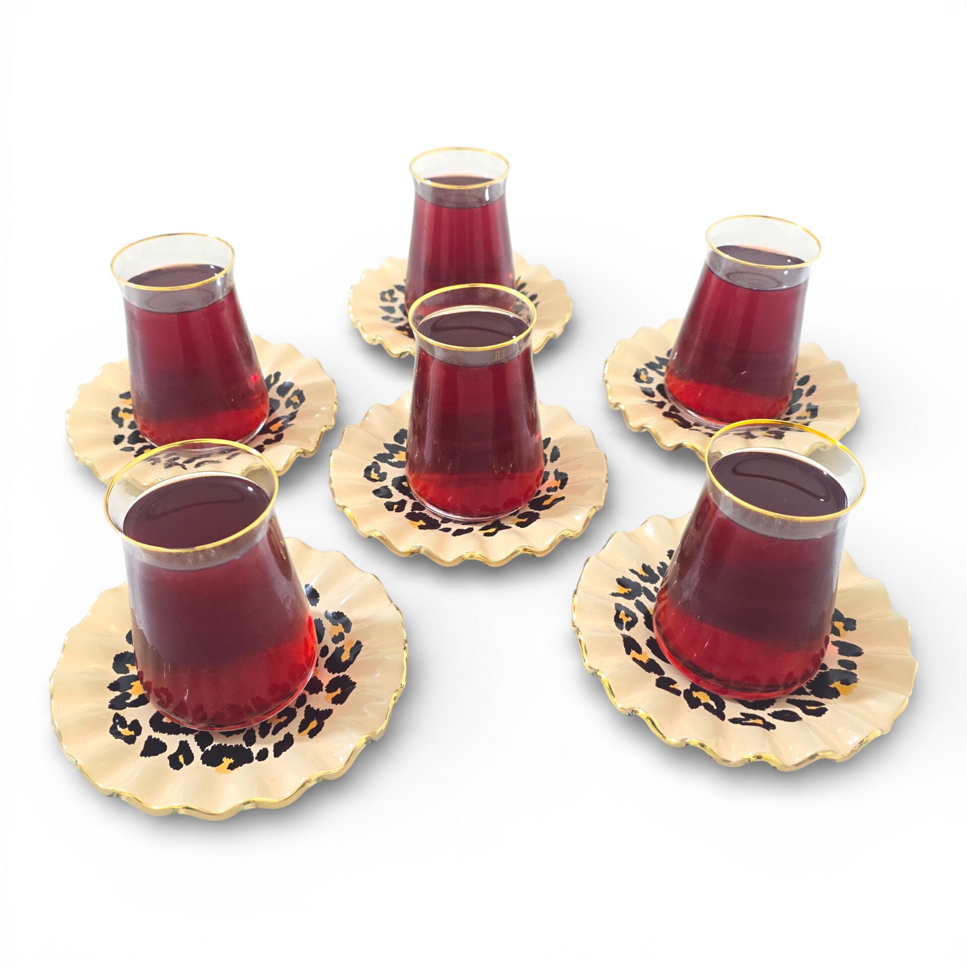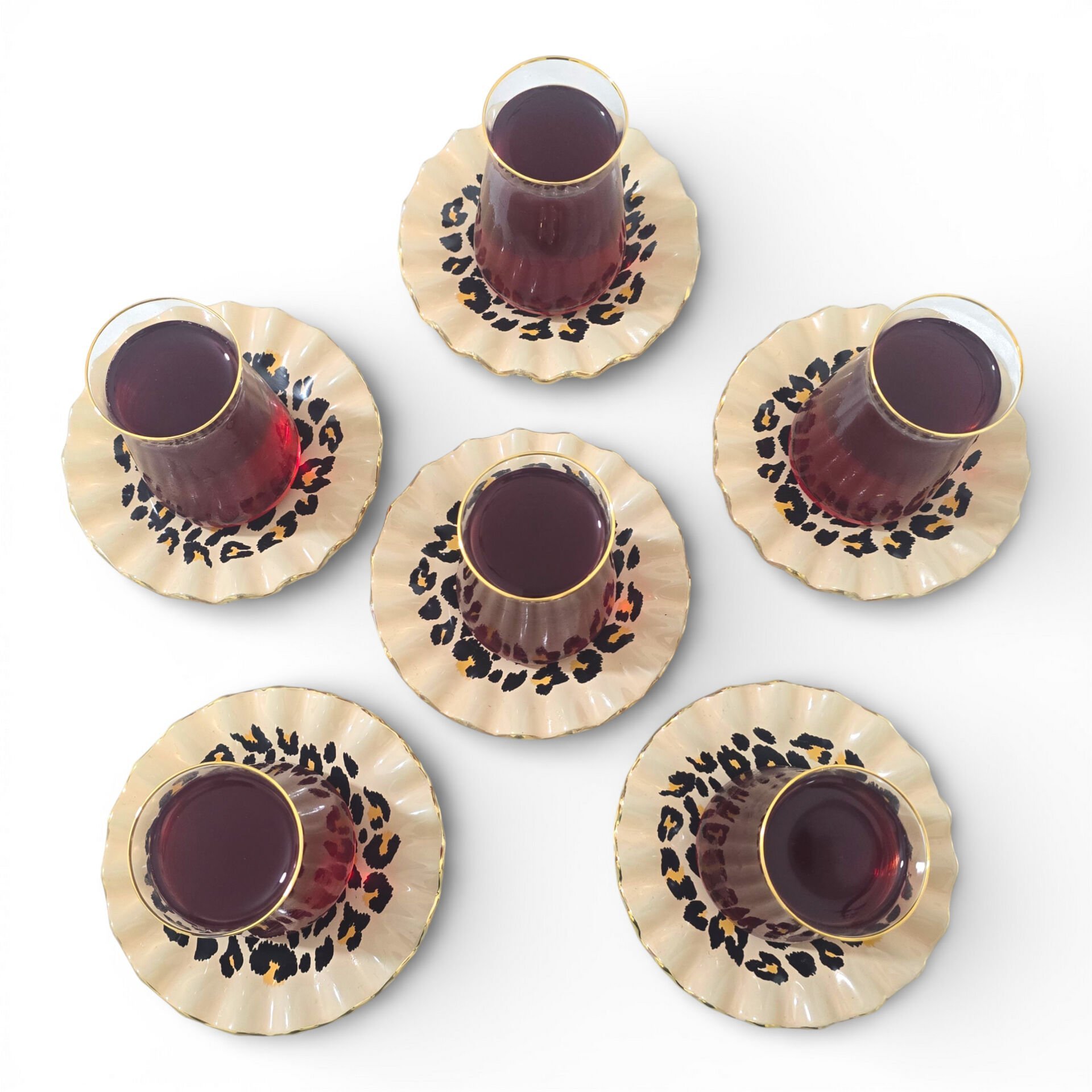 Sudedi Home Leopar Desenli Gerçek Altın Yaldızlı Kristal Cam Çay Takımı 6 Kişilik
