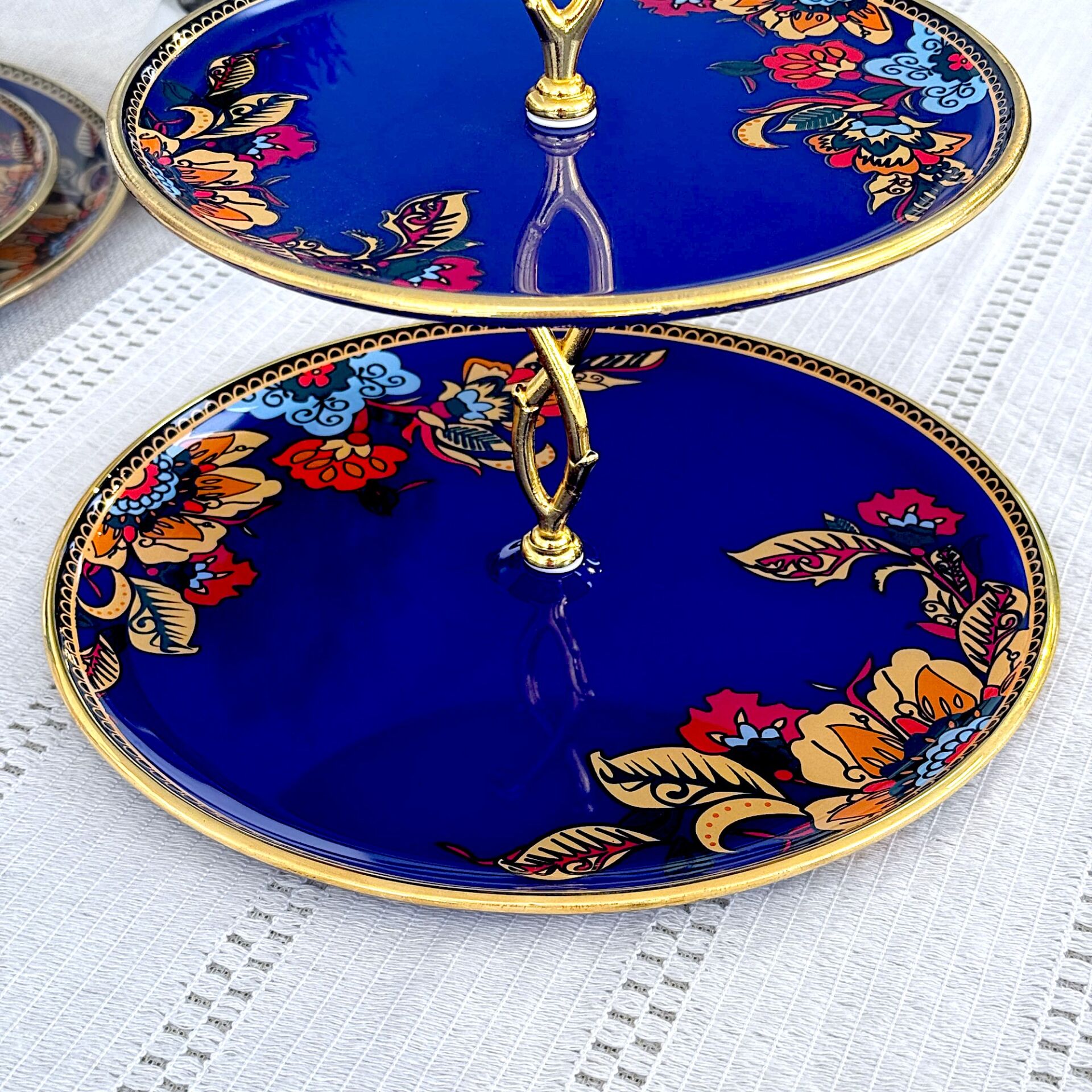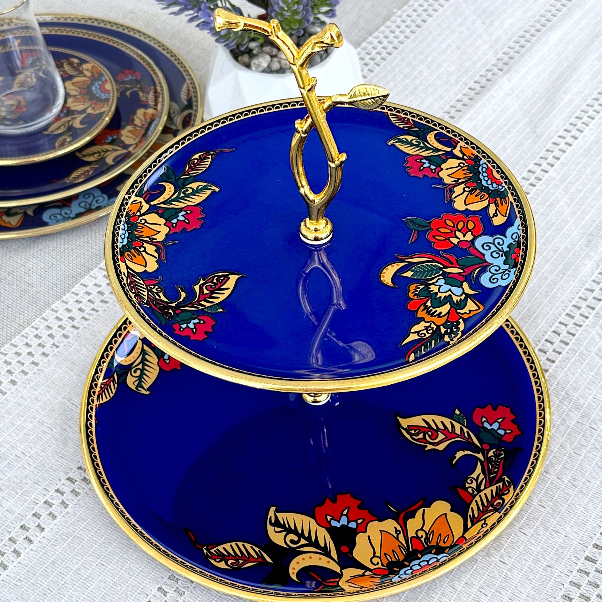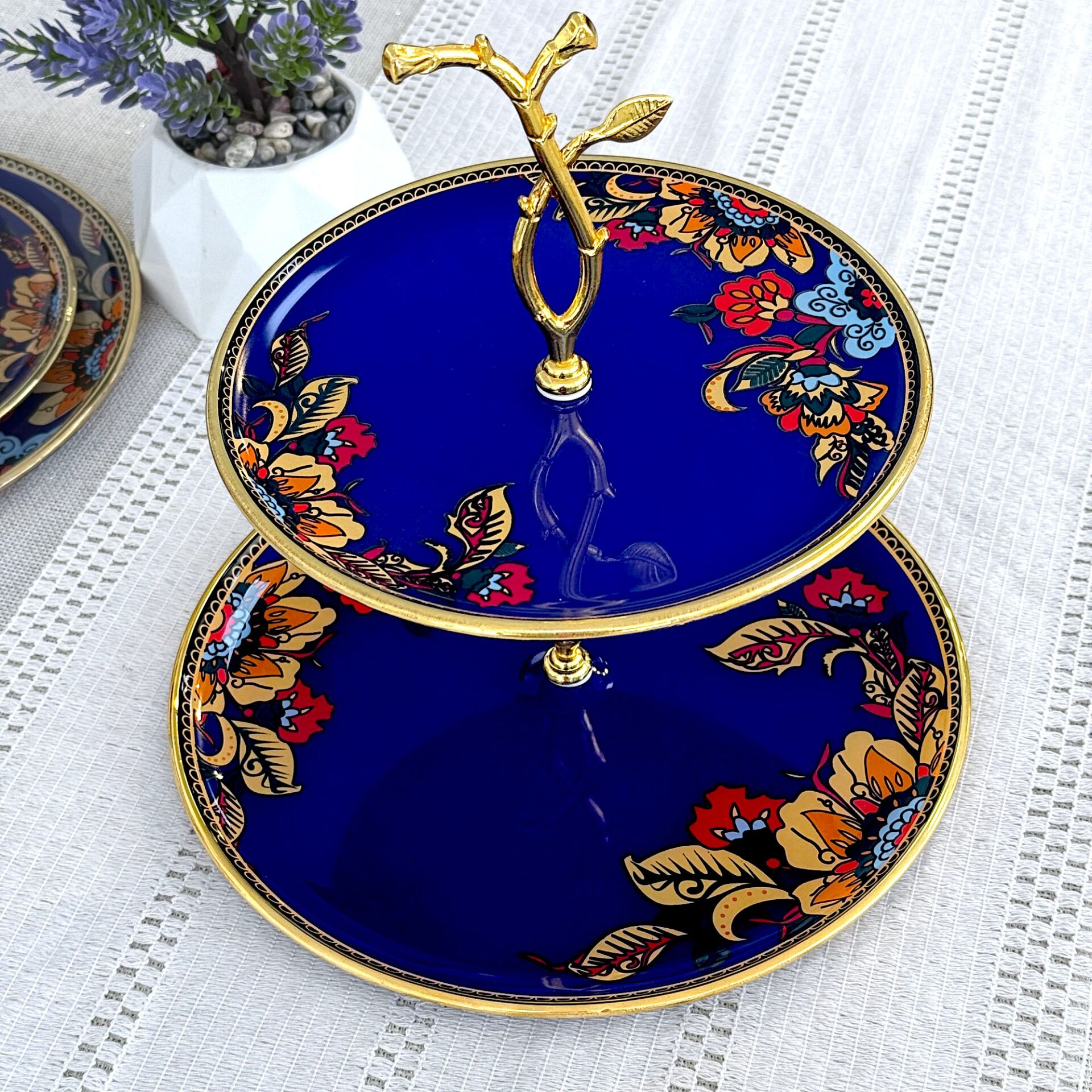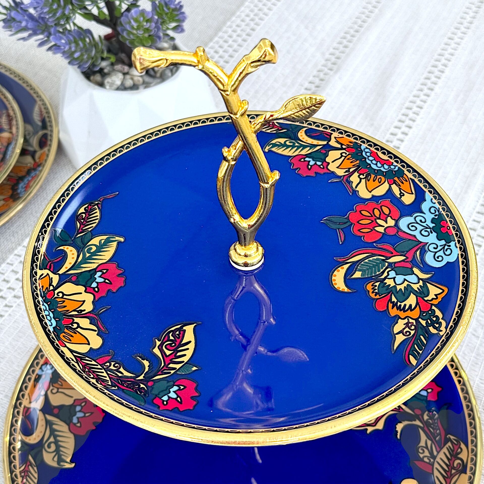 Glore Lorena Asorti Altın Yaldızlı Cam Kurabiyelik (Mavi)