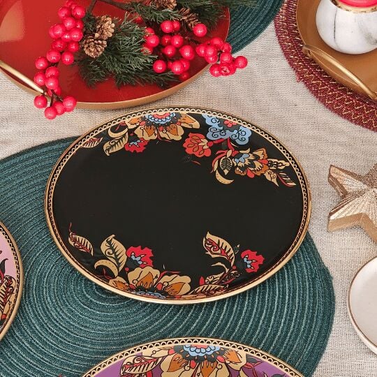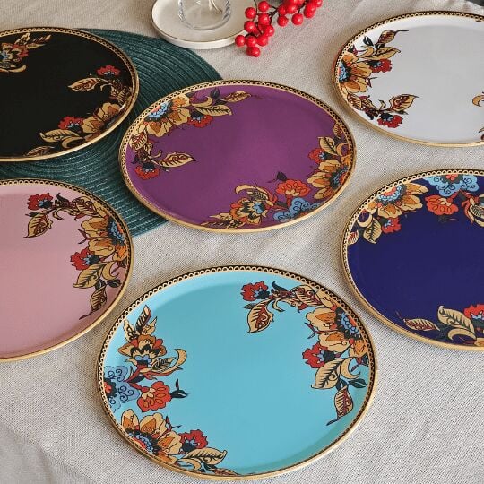 Glore Lorena Asorti Altın Yaldızlı Cam Servis Tabağı Takımı
