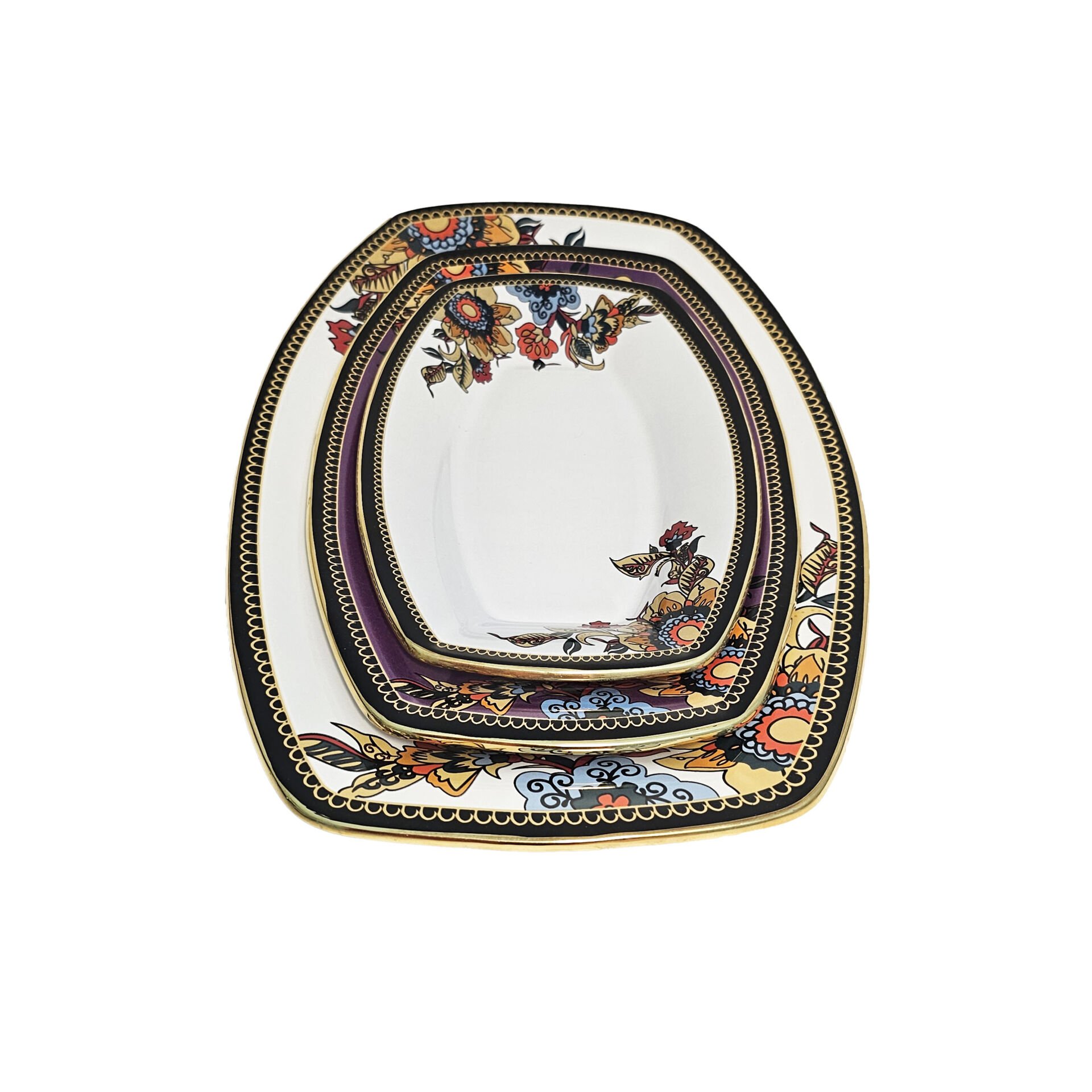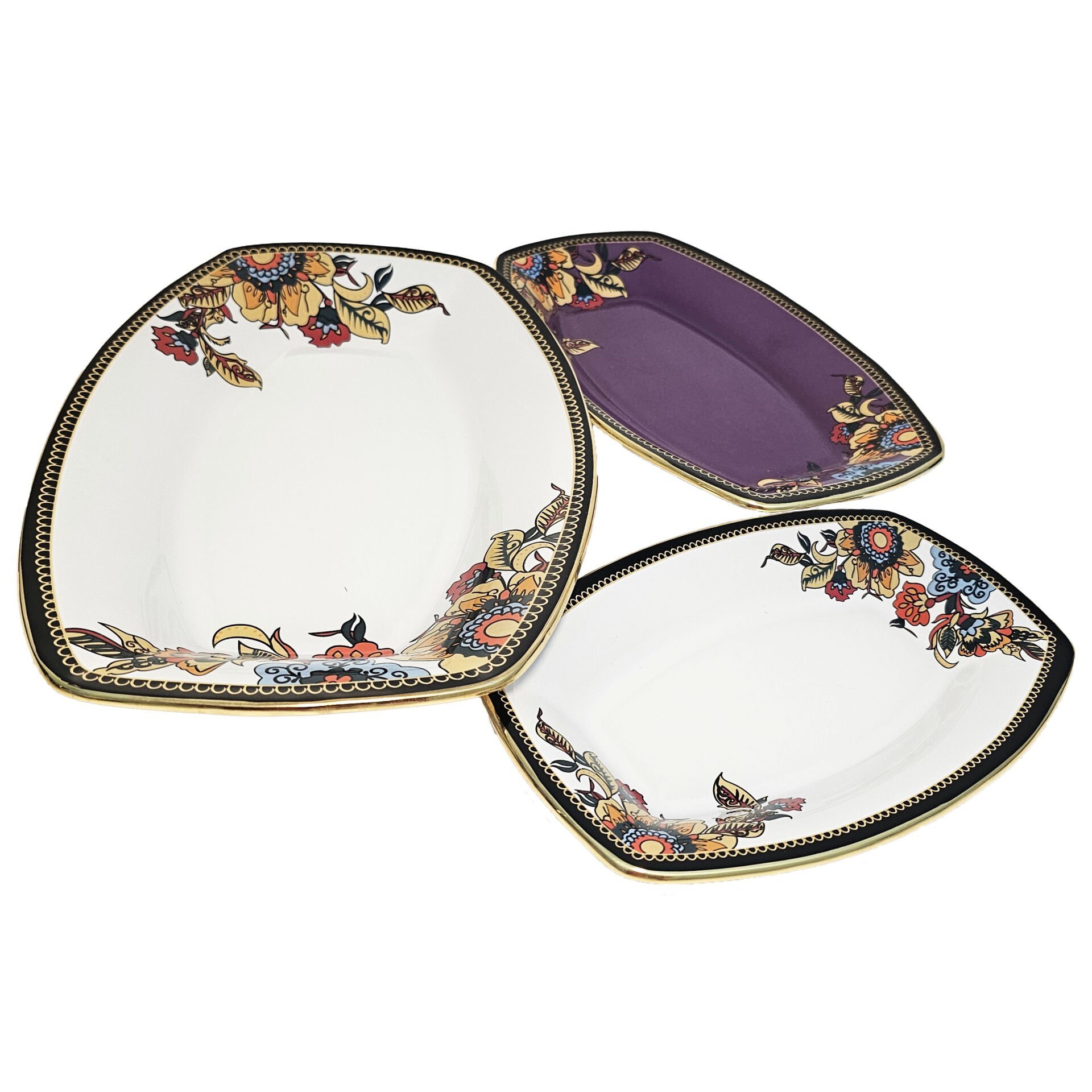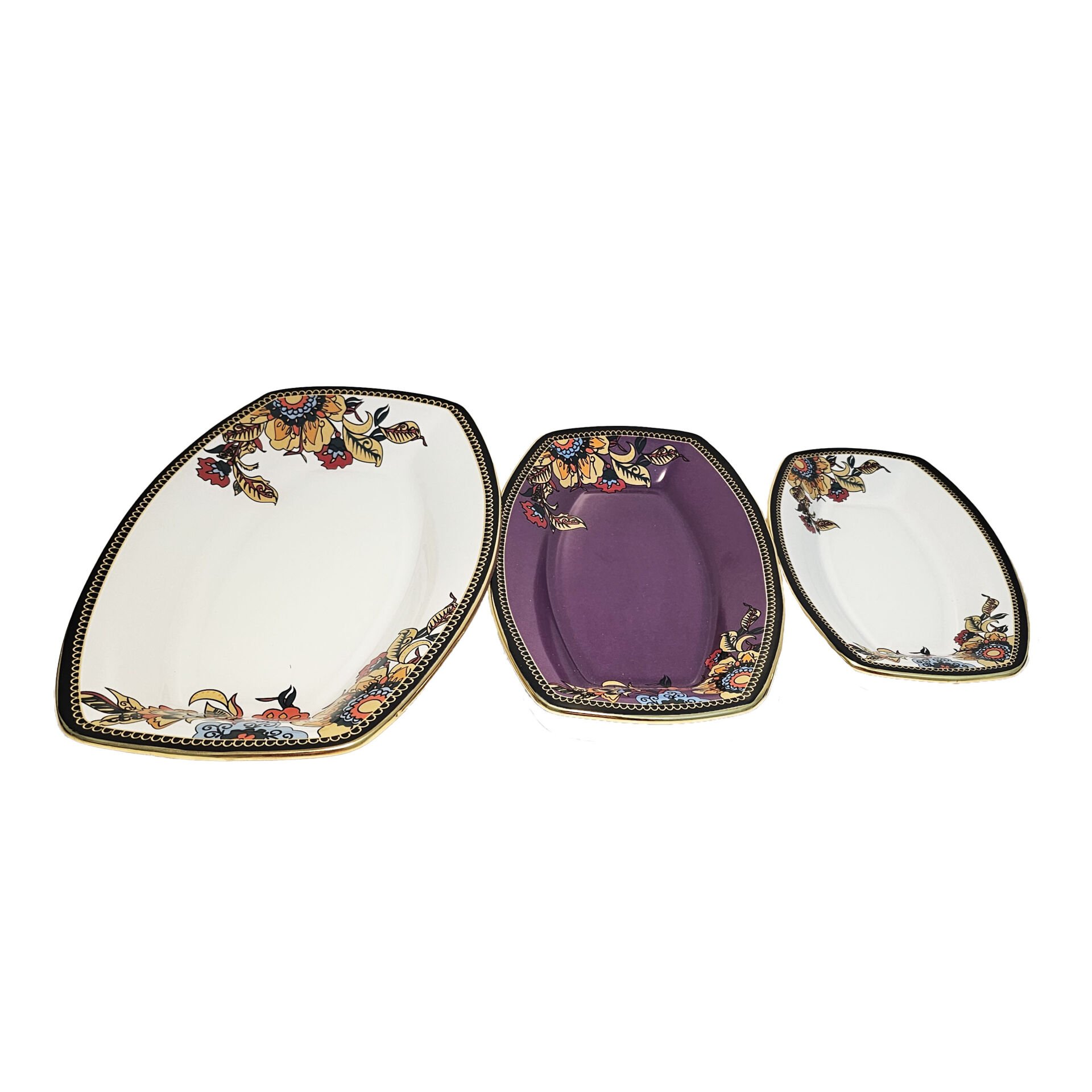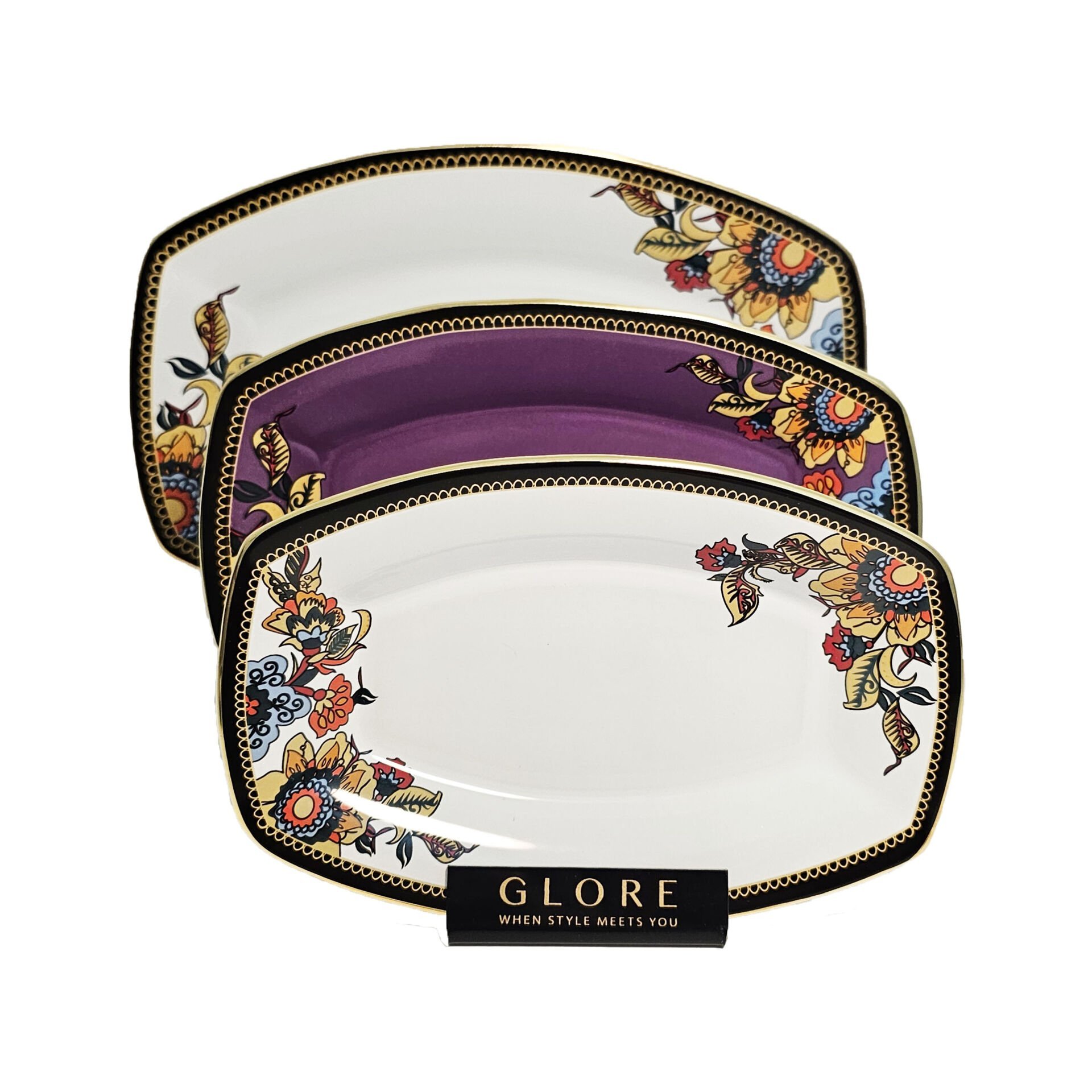 Glore Lorena Asorti Altın Yaldızlı Kayık Tabak Seti (Beyaz-Mor-Beyaz)