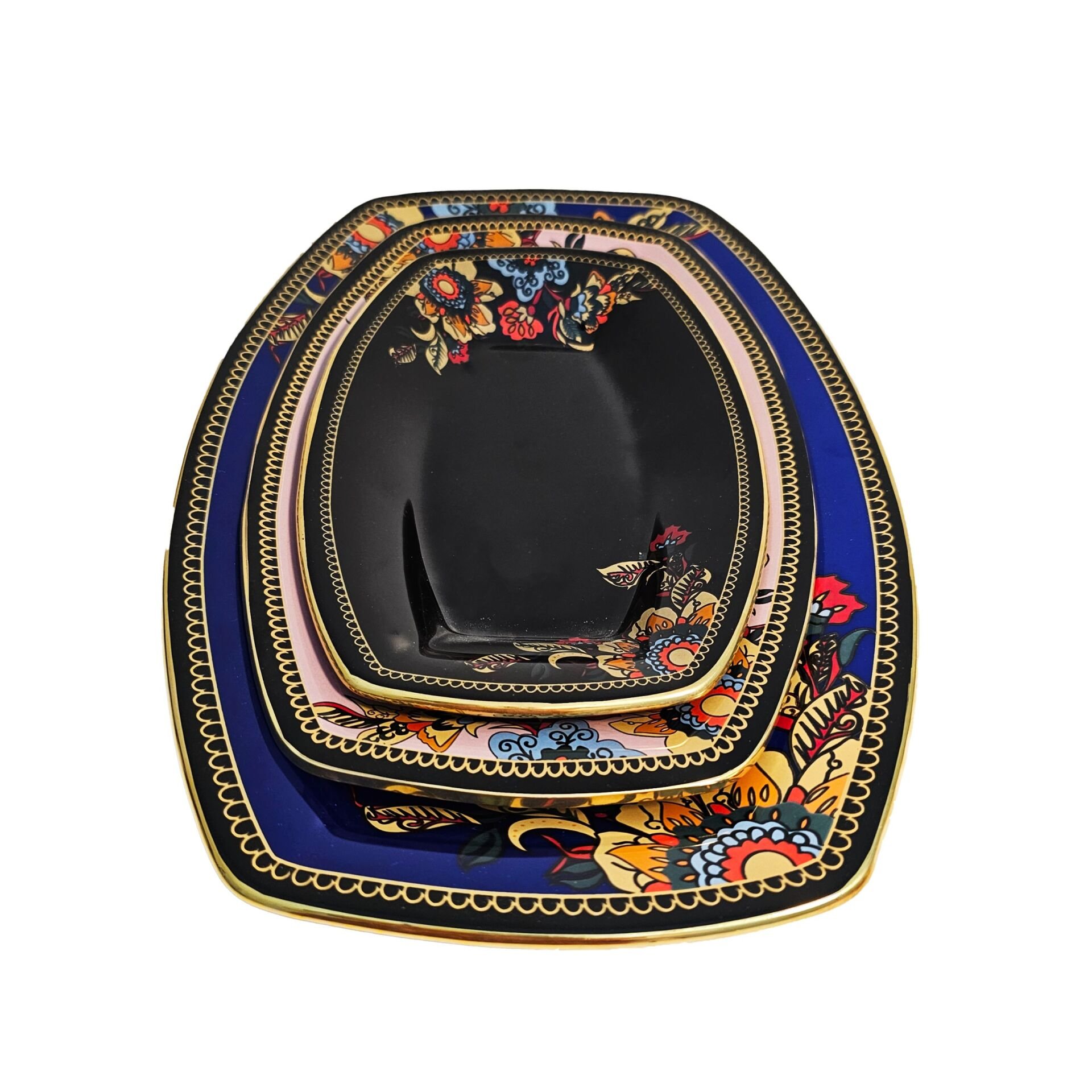 Glore Lorena Asorti Altın Yaldızlı Kayık Tabak Seti (Mavi Pembe Siyah)