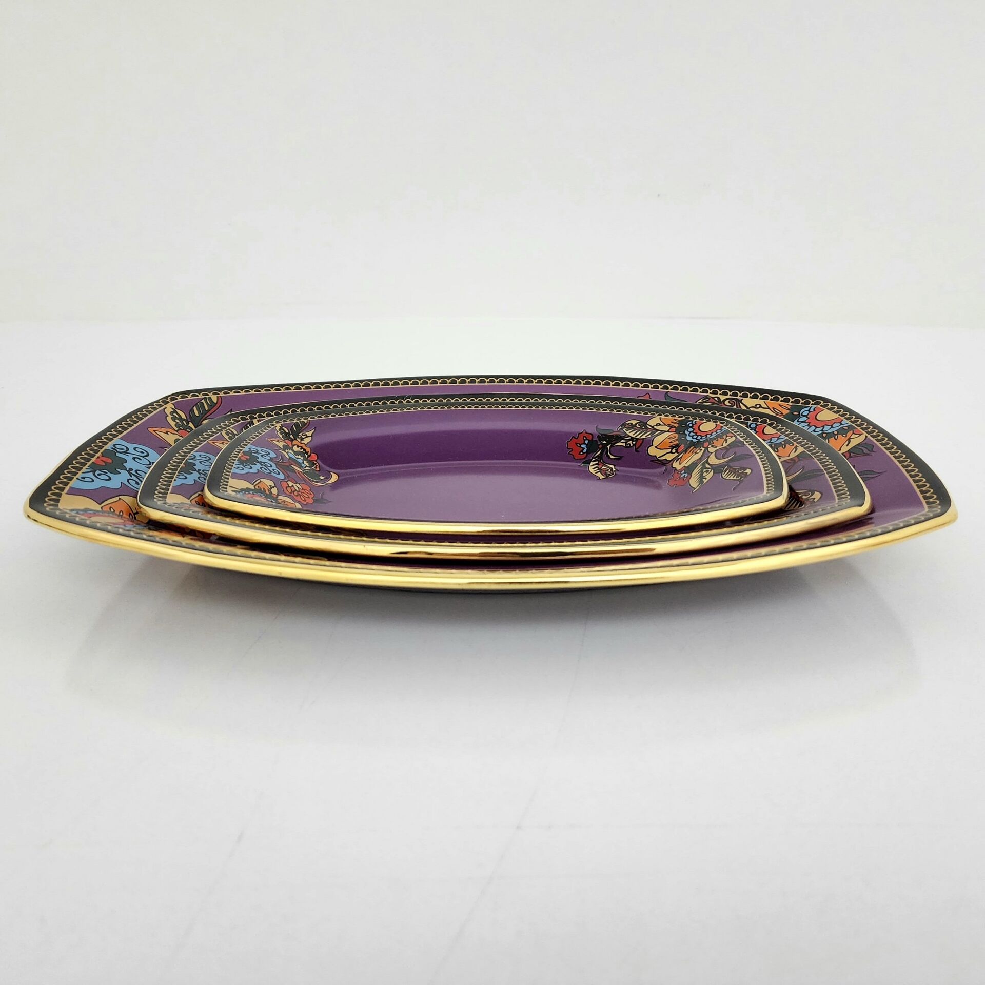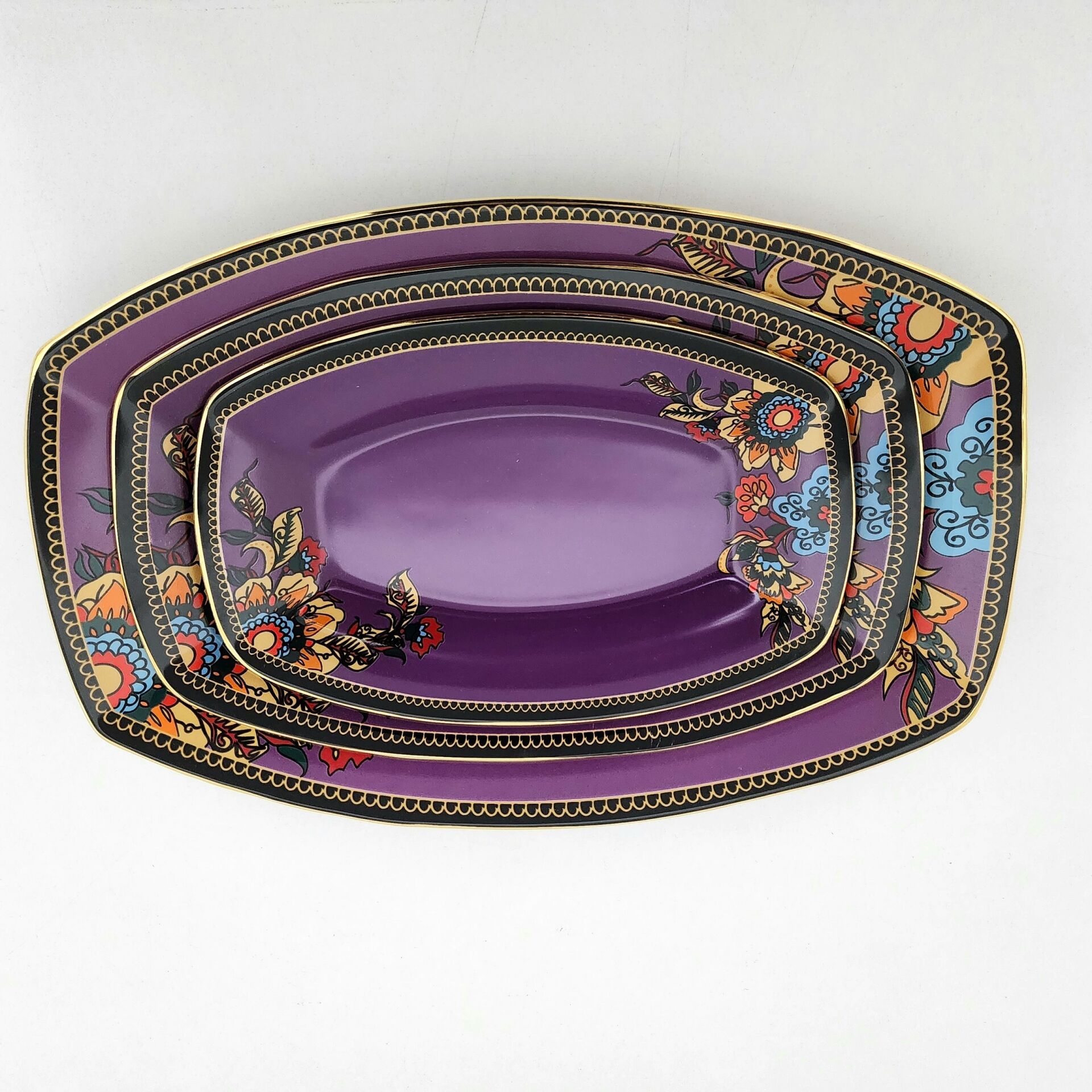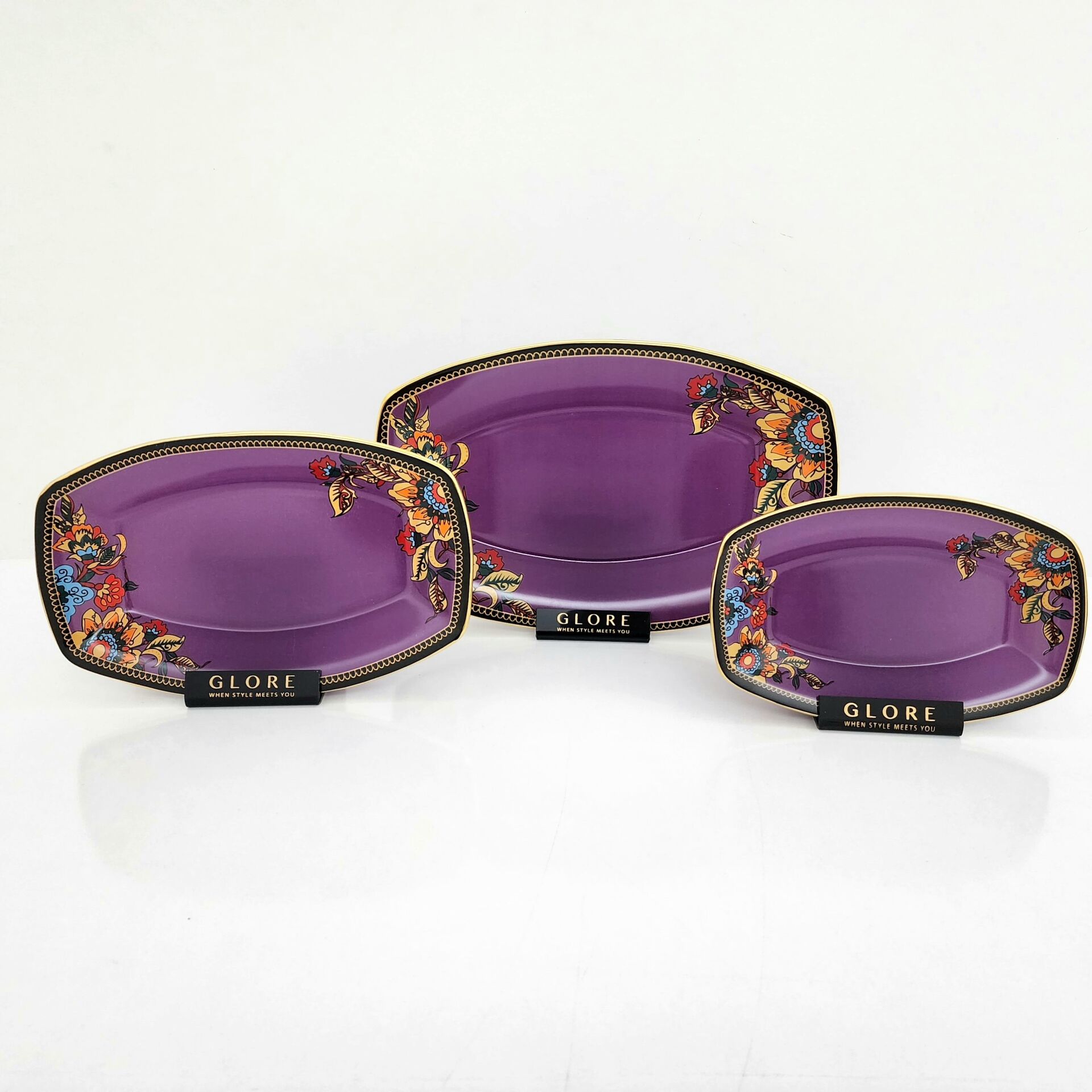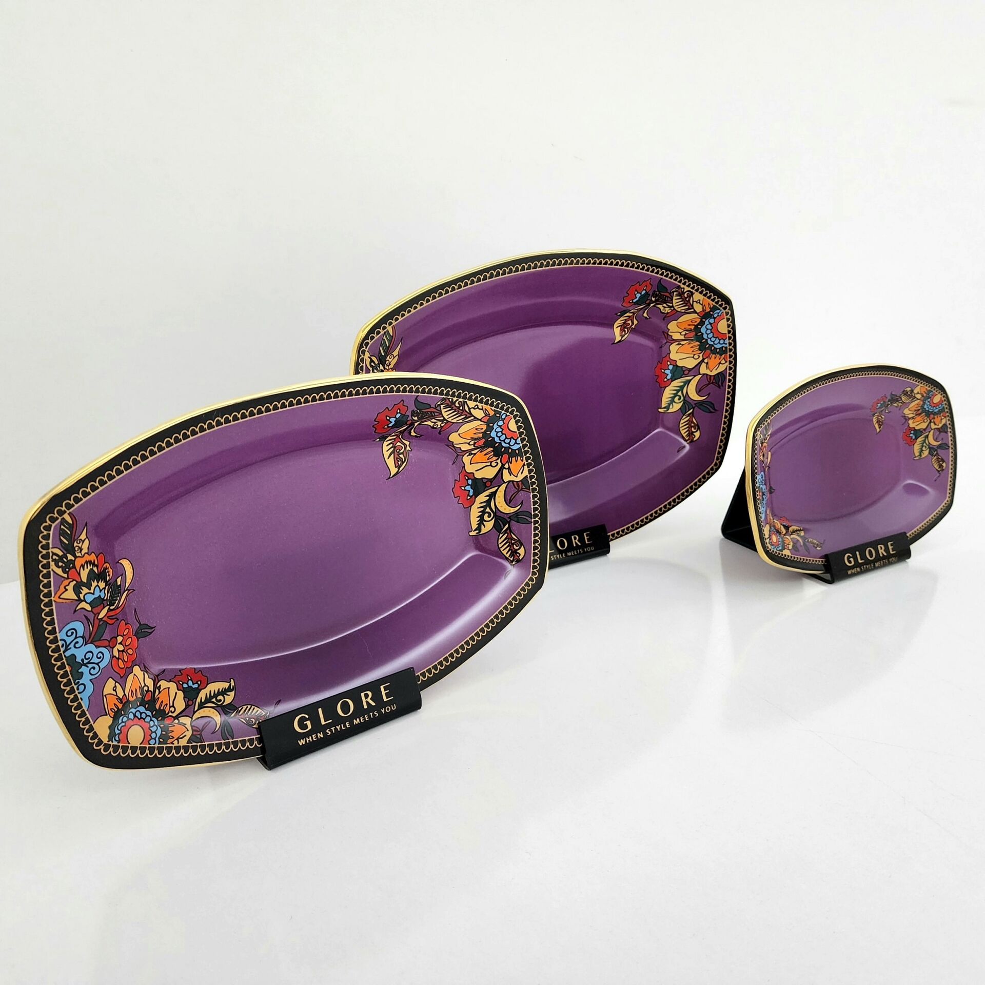 Glore Lorena Asorti Altın Yaldızlı Kayık Tabak Seti (Mor)
