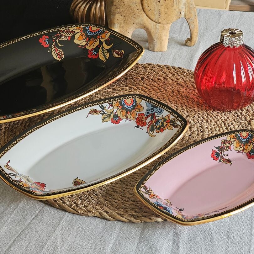 Glore Lorena Asorti Altın Yaldızlı Kayık Tabak Seti (Siyah Beyaz Pembe)