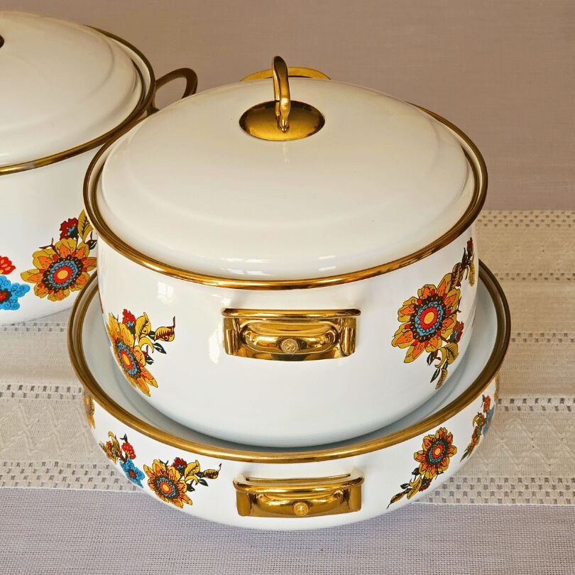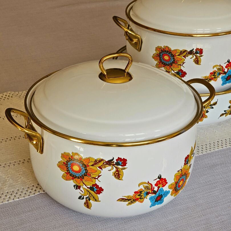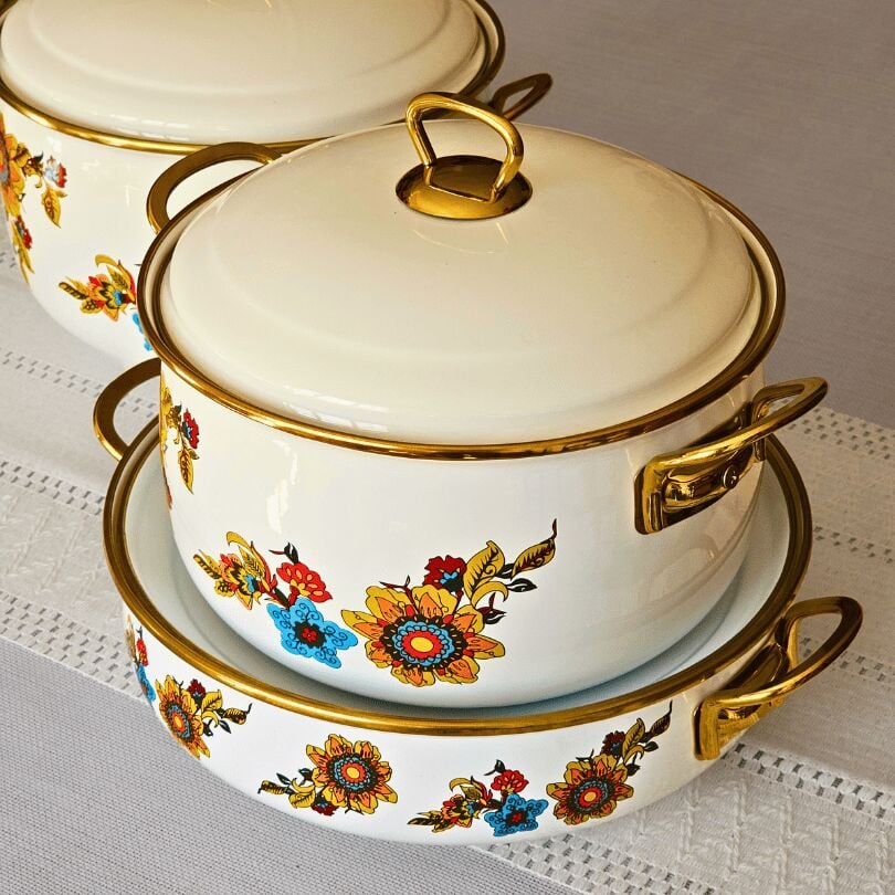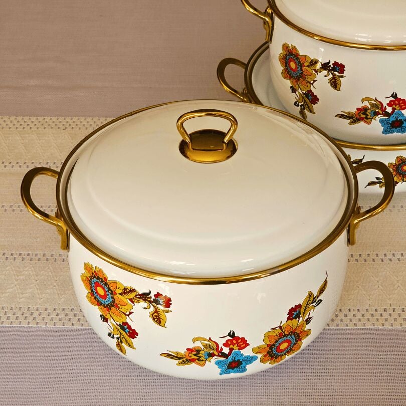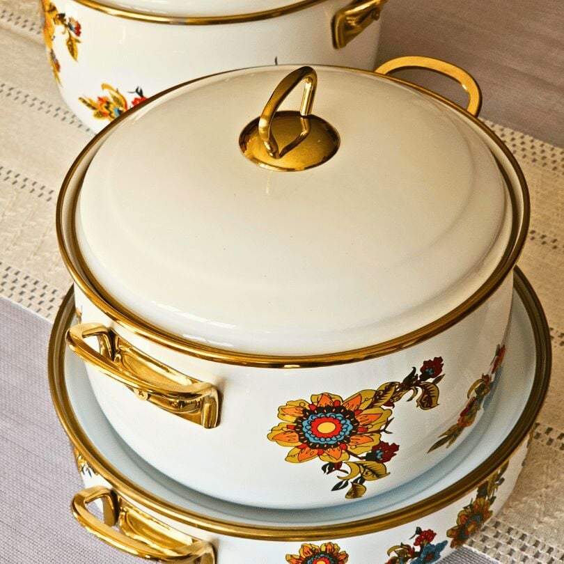 Glore Lorena Beyaz 6 Parça Büyük Emaye Tencere Takımı 28cm - 26cm - 24cm