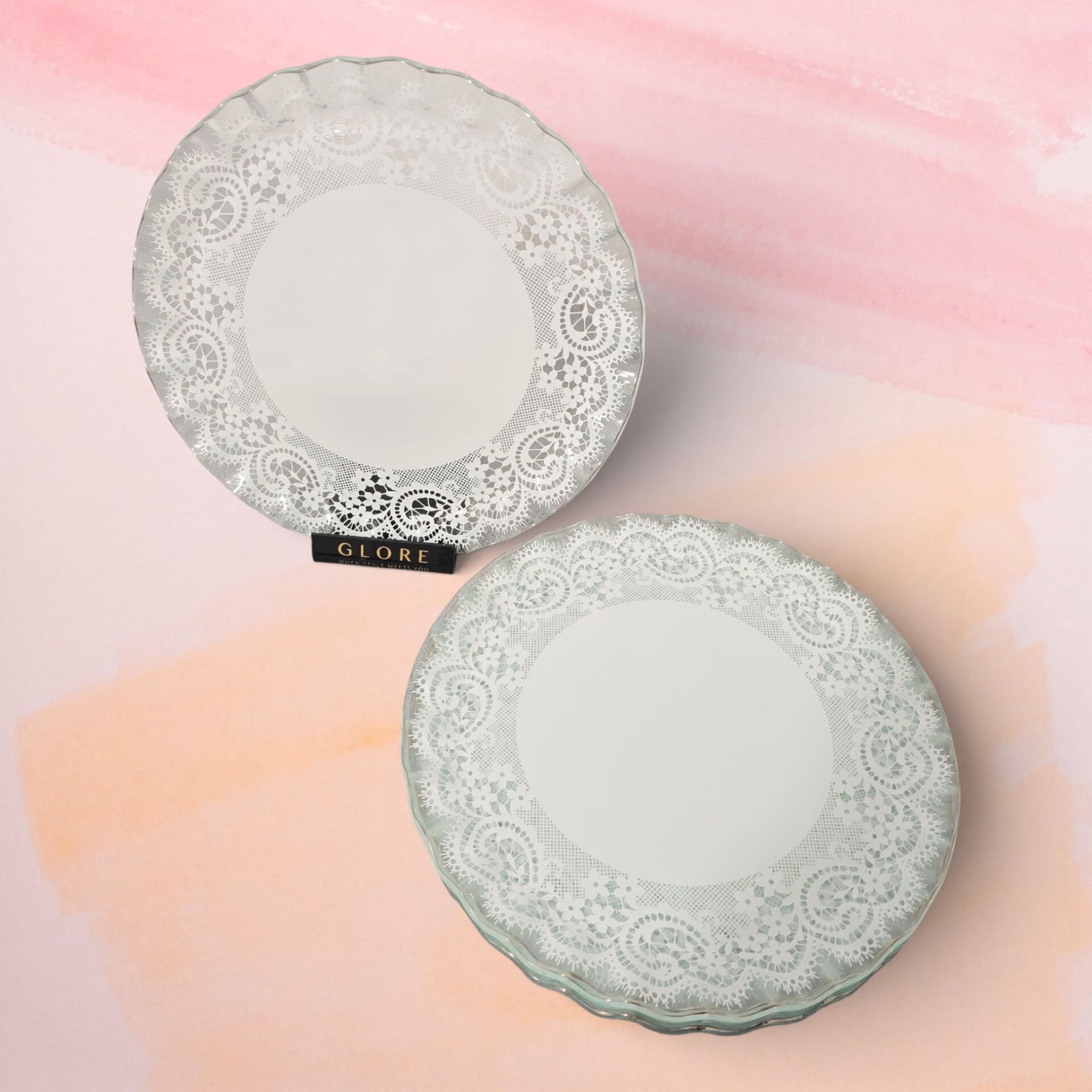 Glore Marche Platin Yaldızlı Cam Servis Tabağı
