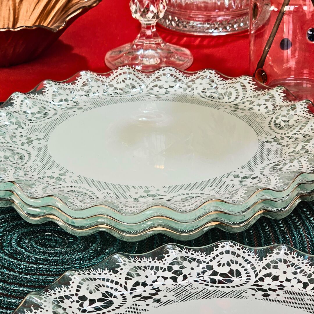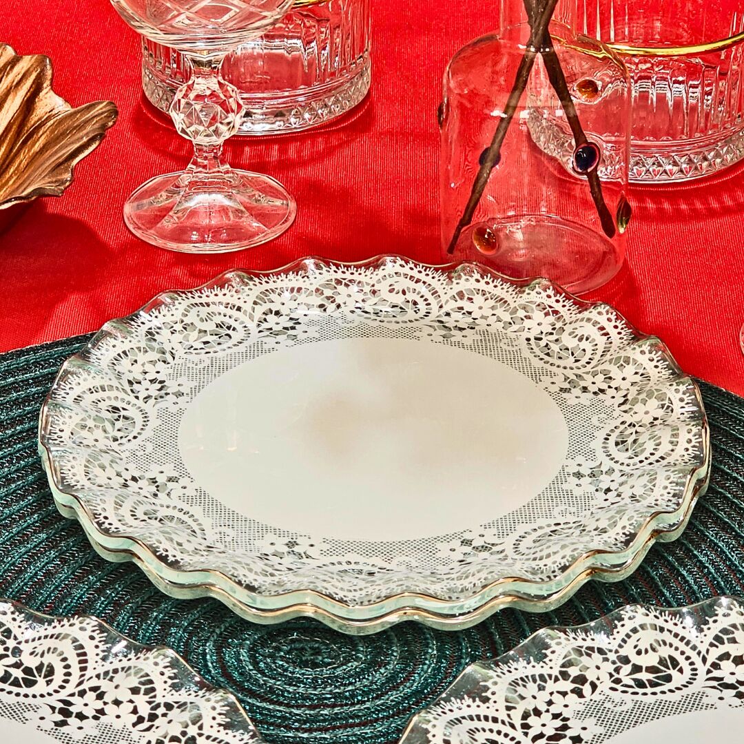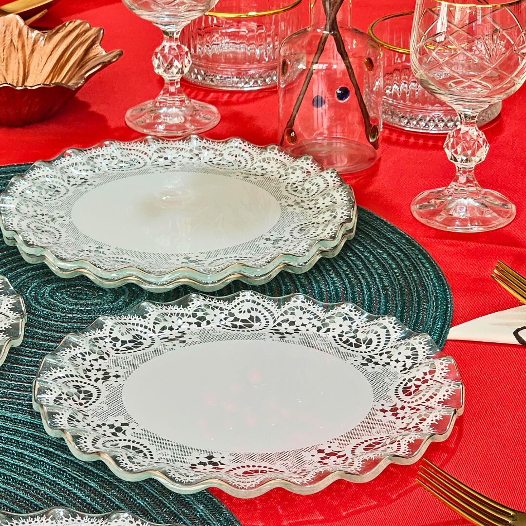 6 adet 21cm platin yaldızlı cam pasta tabağı