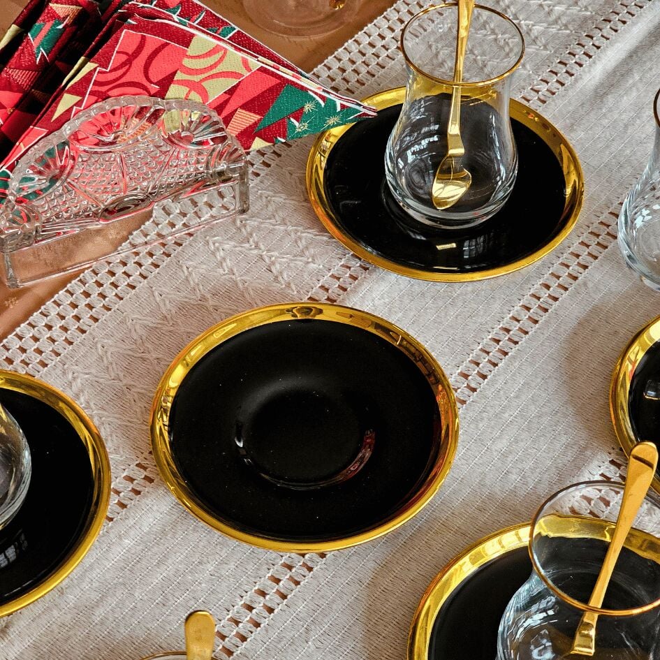 6 adet altın yaldızlı cam çay tabağı