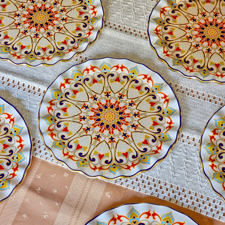 Glore Orient Altın Yaldızlı Cam Pasta Tabağı Seti