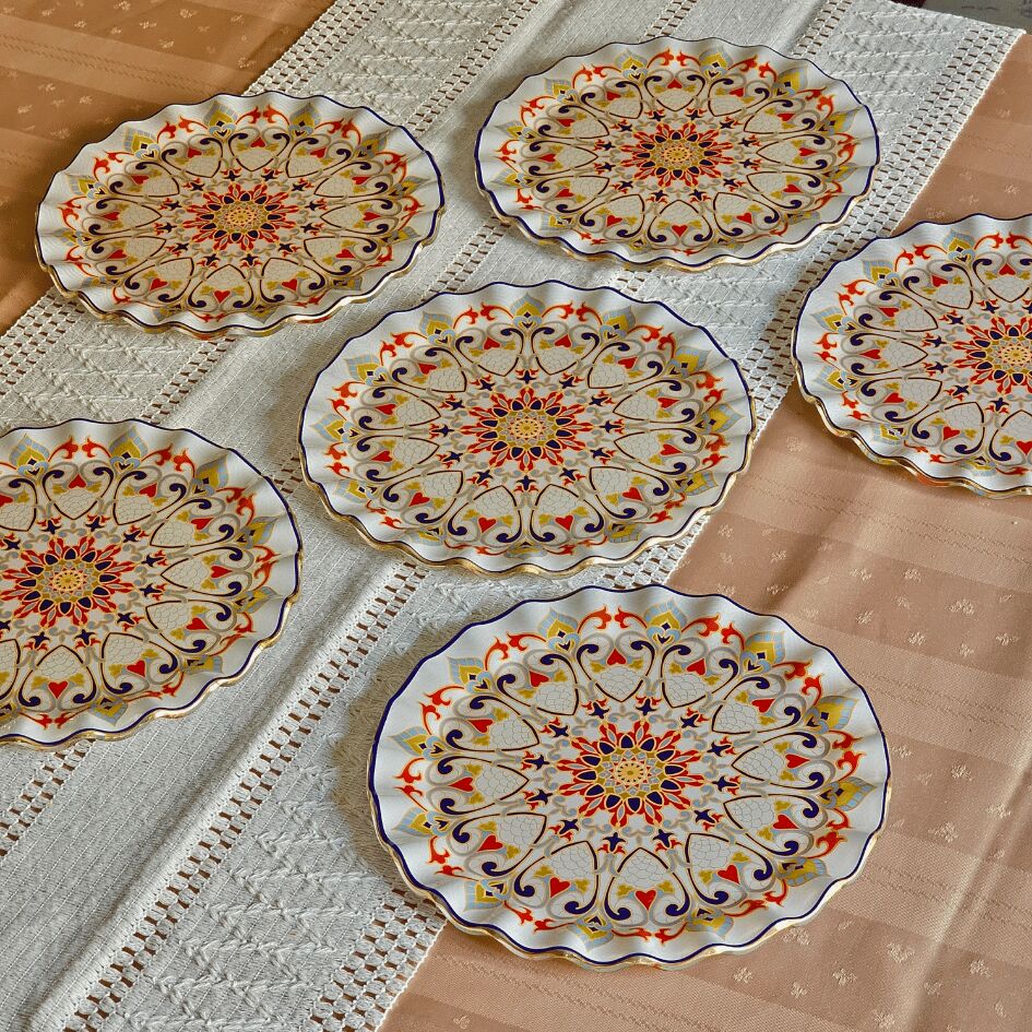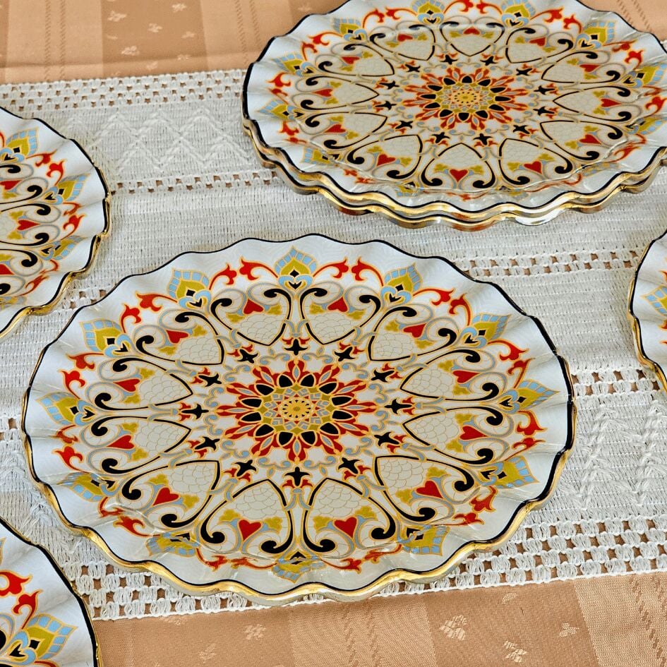 6 adet 21cm altın yaldızlı cam pasta tabağı
