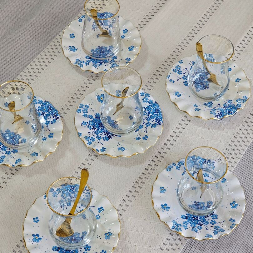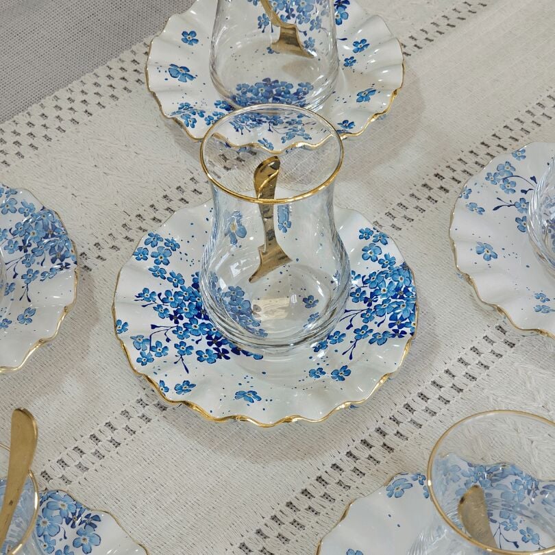 Glore Safir Altın Yaldızlı Cam Çay Bardağı Seti