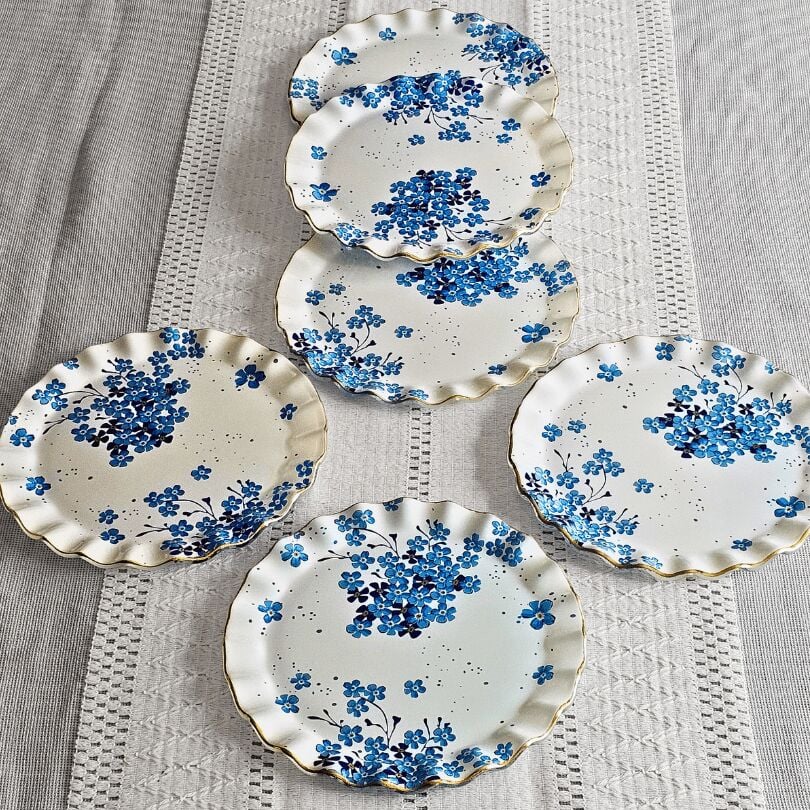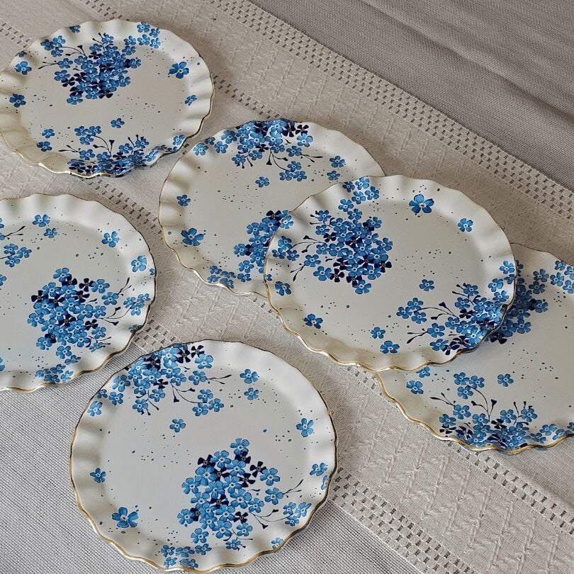6 adet 21cm altın yaldızlı cam pasta tabağı