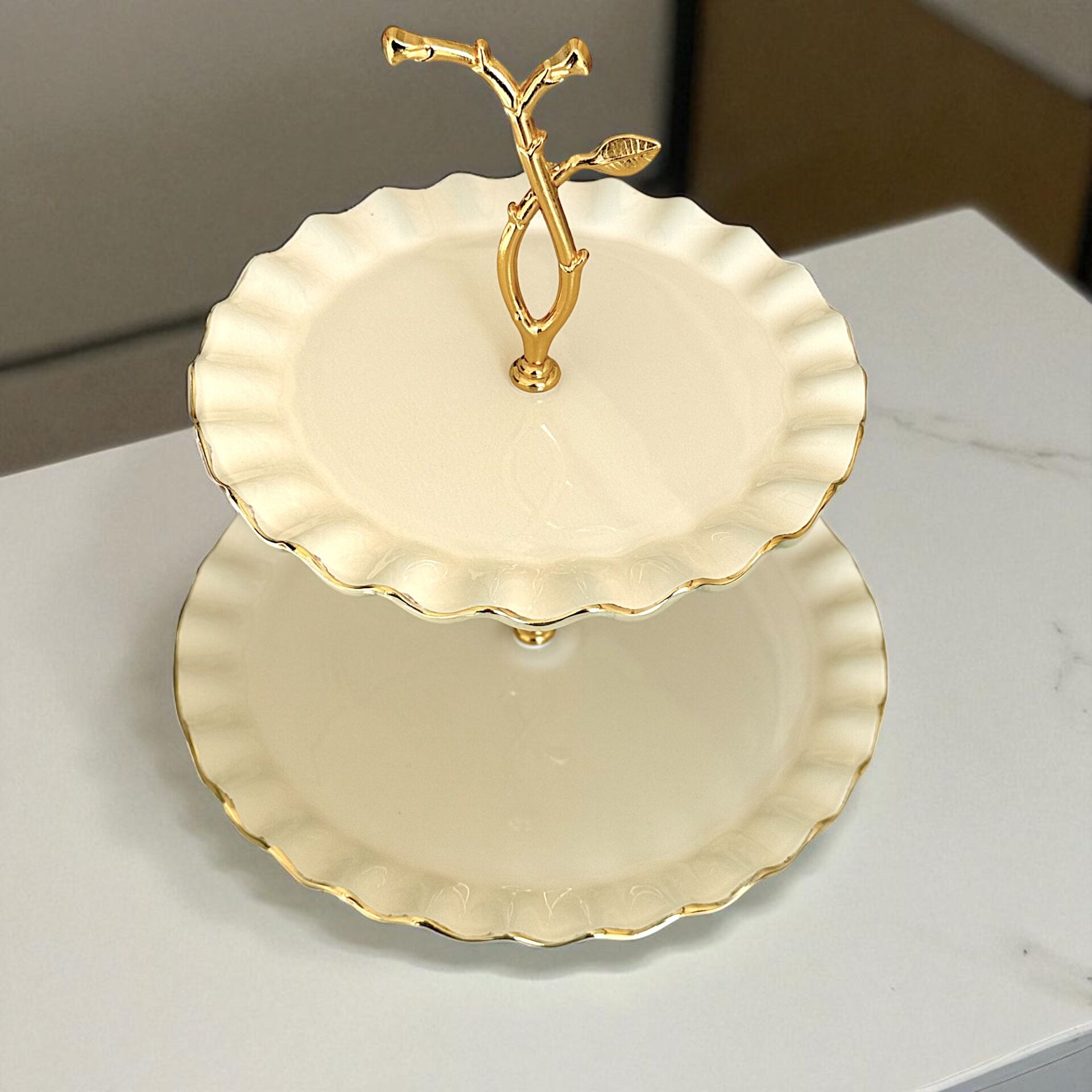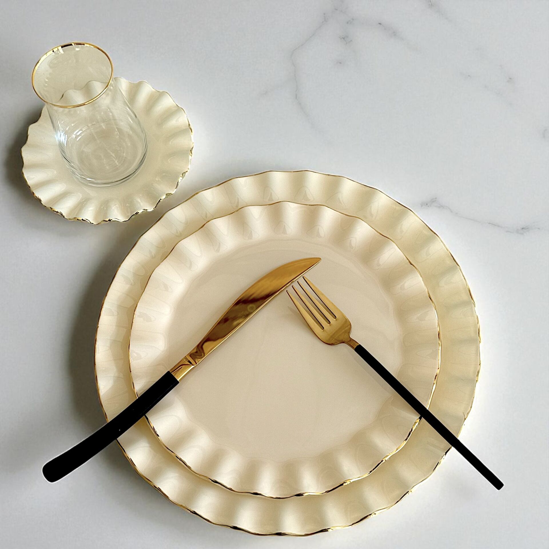 Glore Solid Krem Wavy Altın Yaldızlı 6 Kişilik 34 Parça Pasta Servis Takımı