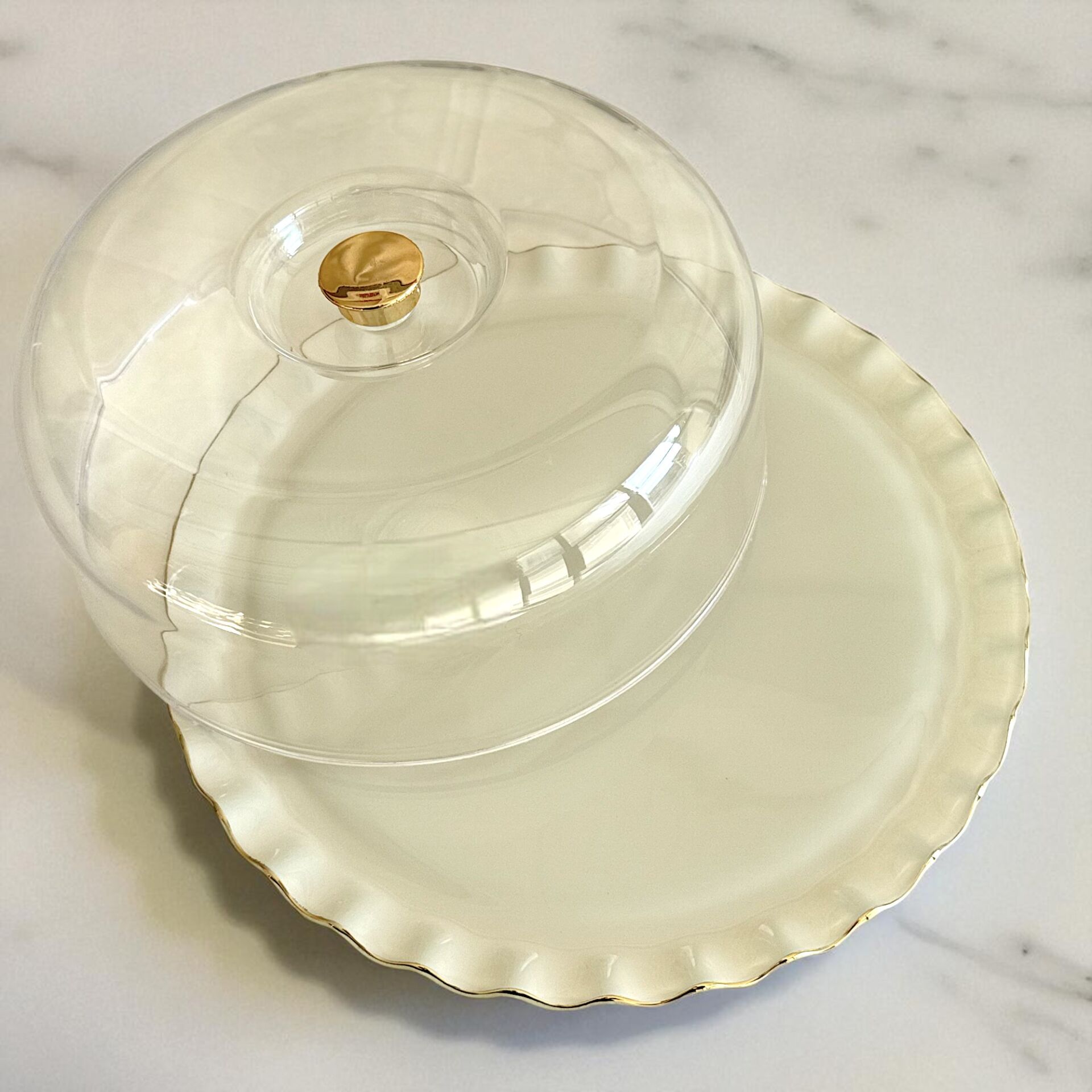 1 adet 31cm altın yaldızlı cam kek tepsisi