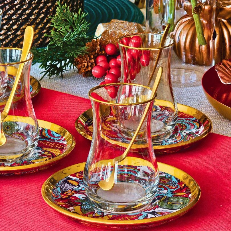 Glore Tarabya Altın Yaldızlı Çay Seti 6Lı Lina