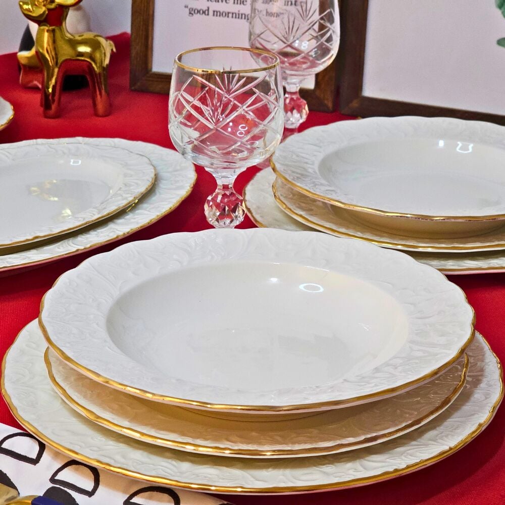 İpek Altın Yaldızlı Pera 18 Prç Yemek Takımı