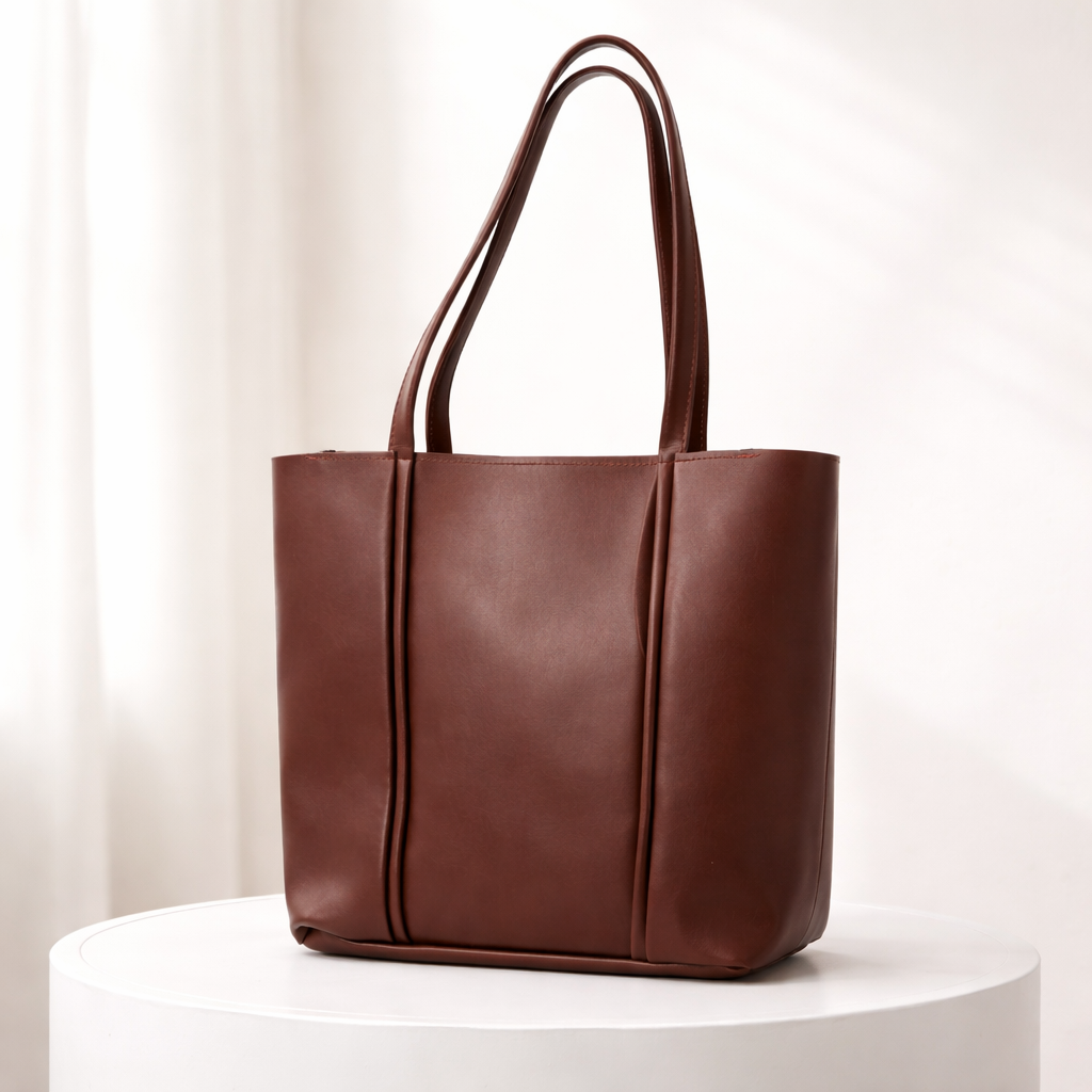 Kahverengi Kadın Omuz Çantası Geniş Hacimli Minimal Tasarım Günlük Kullanım Modern Tote Çanta – Sudedi Home