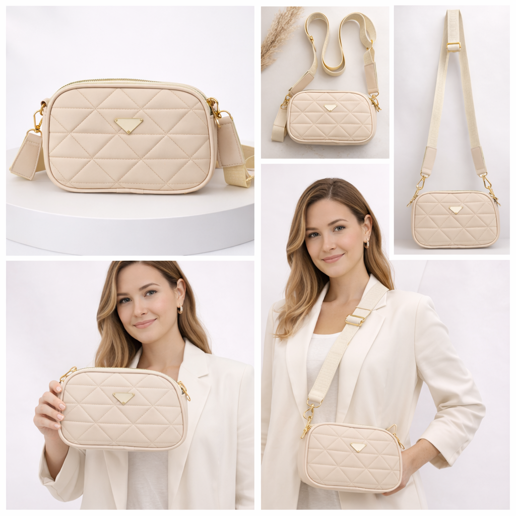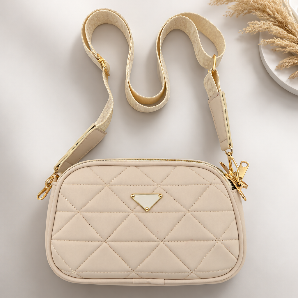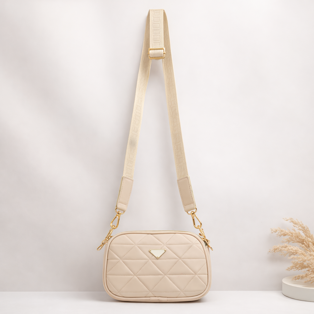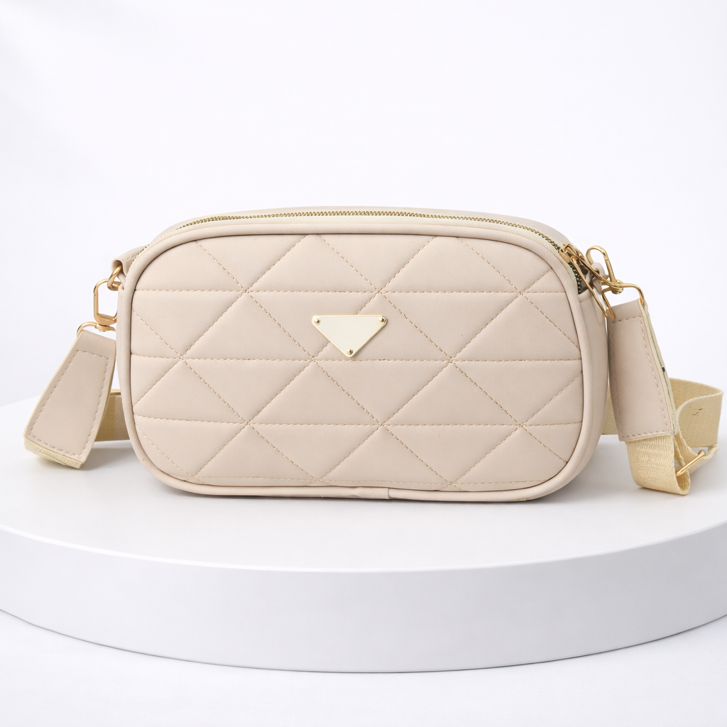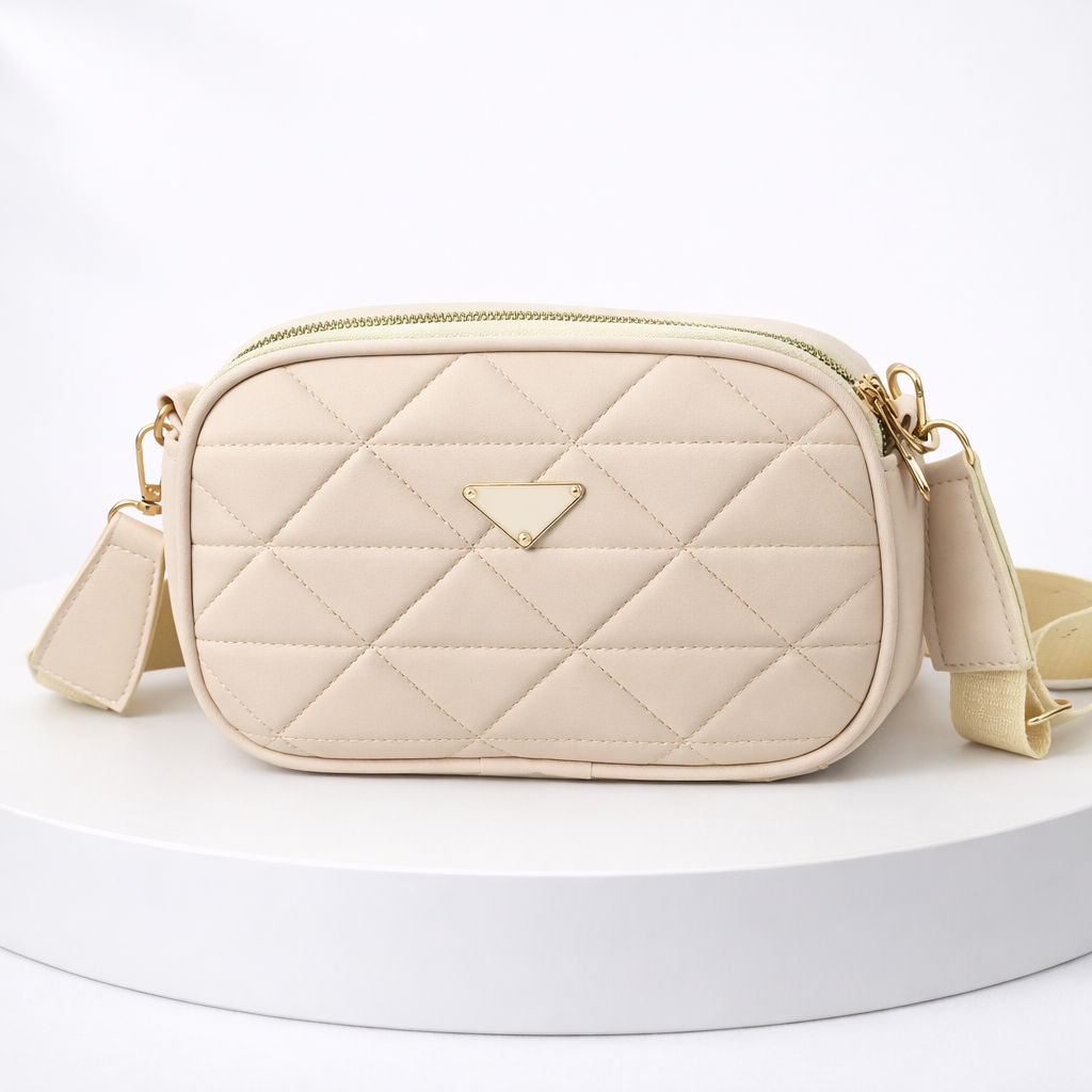 Kapitone Desenli Kadın Çapraz Omuz Çantası Bej Günlük Kullanım Şık Kadın Çanta – Sudedi Home