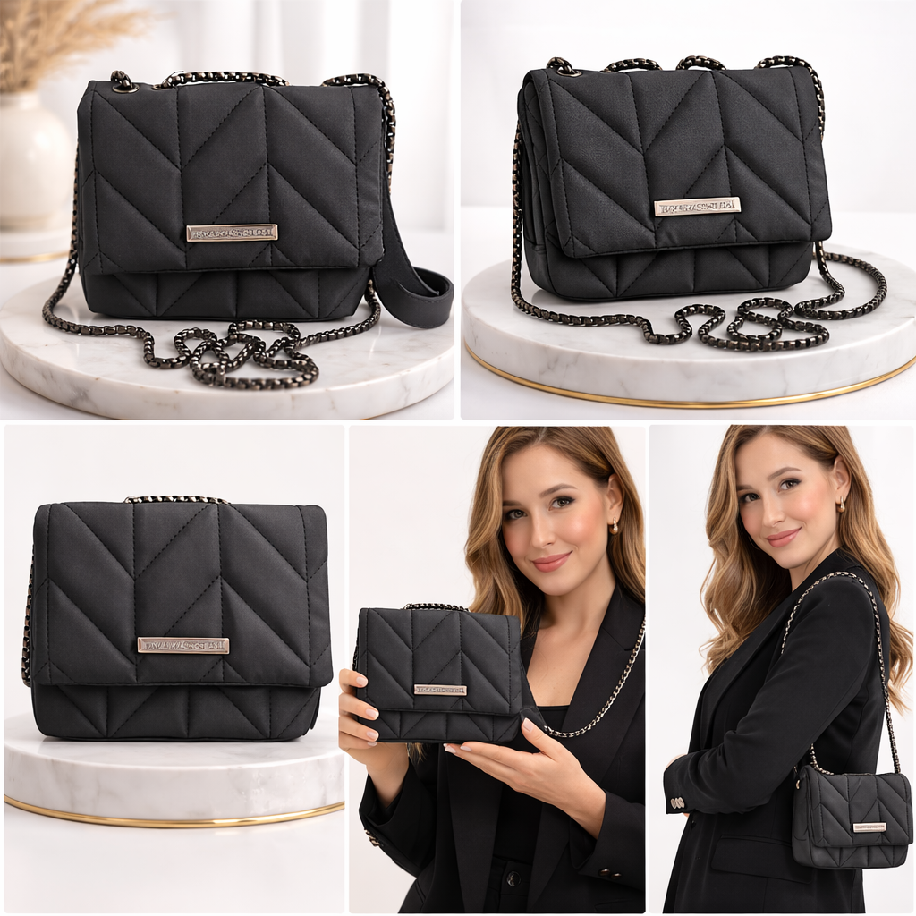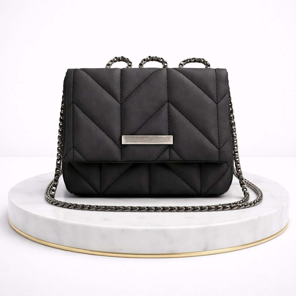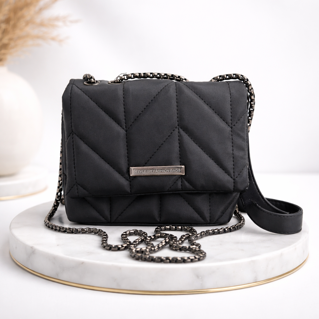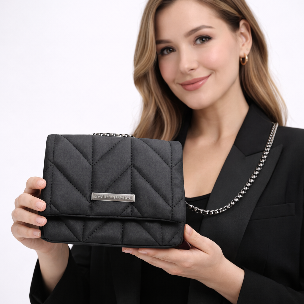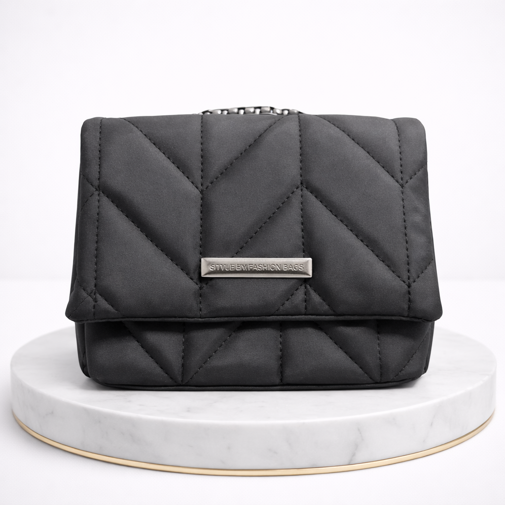 Sudedi Home modern kapitone dikiş tasarımı ve zamansız siyah rengi ile günlük kullanım için tasarlanmış şık kadın omuz çantasıdır.