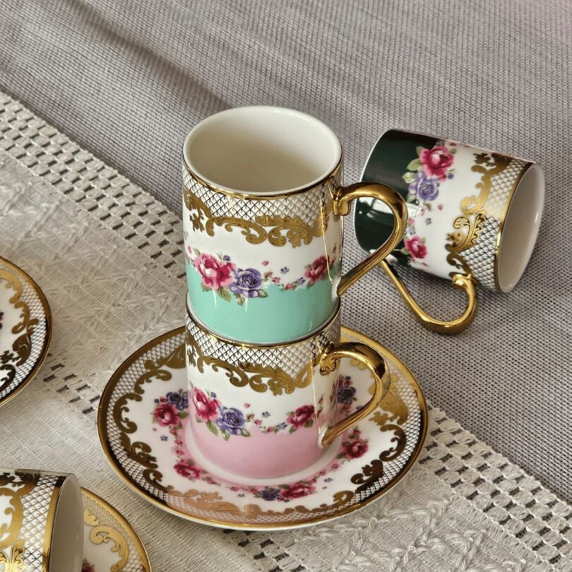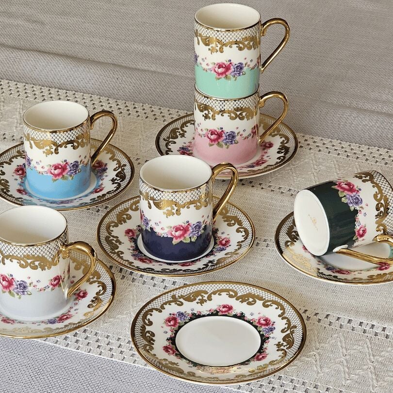 Kosova İst-167 Güllü Silindir Renkli Porselen Fincan Takımı