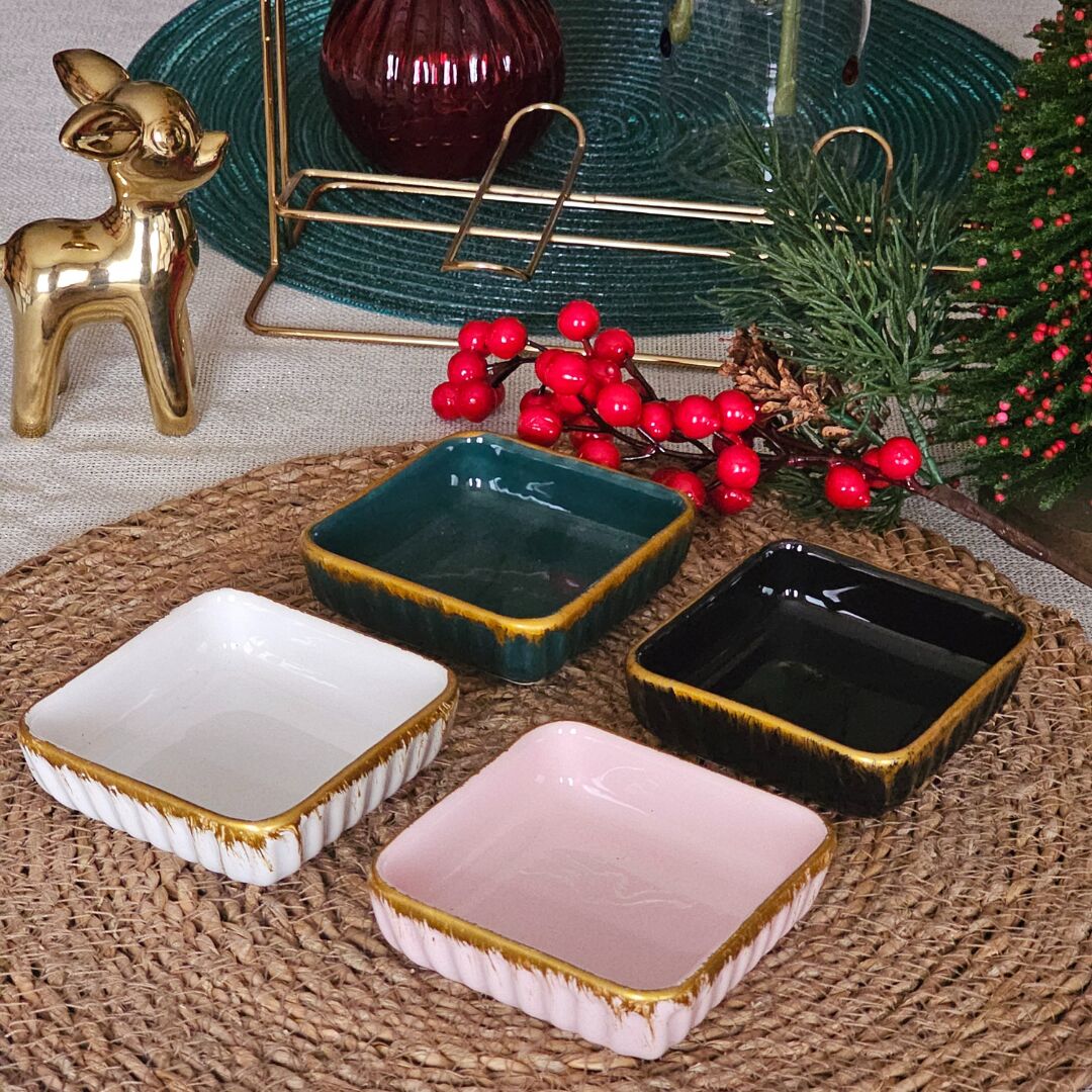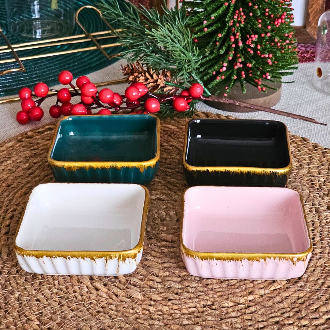 Krd Seramik Kare Renkli Kase 4 Adet Çerezlik Sunumluk Renkli Kase Takımı