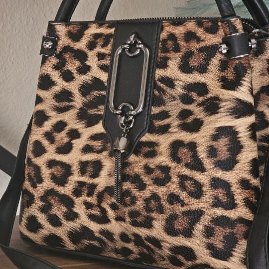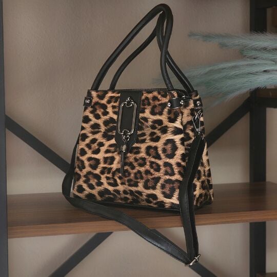 Stilinden ödün vermeyen kadınların tercihi olacak bu leopar desenli çanta, cesur ve iddialı tasarımıyla öne çıkıyor. Yumuşak dokulu kumaşı ve göz alıcı deseni ile her kombinine karakter katacak.