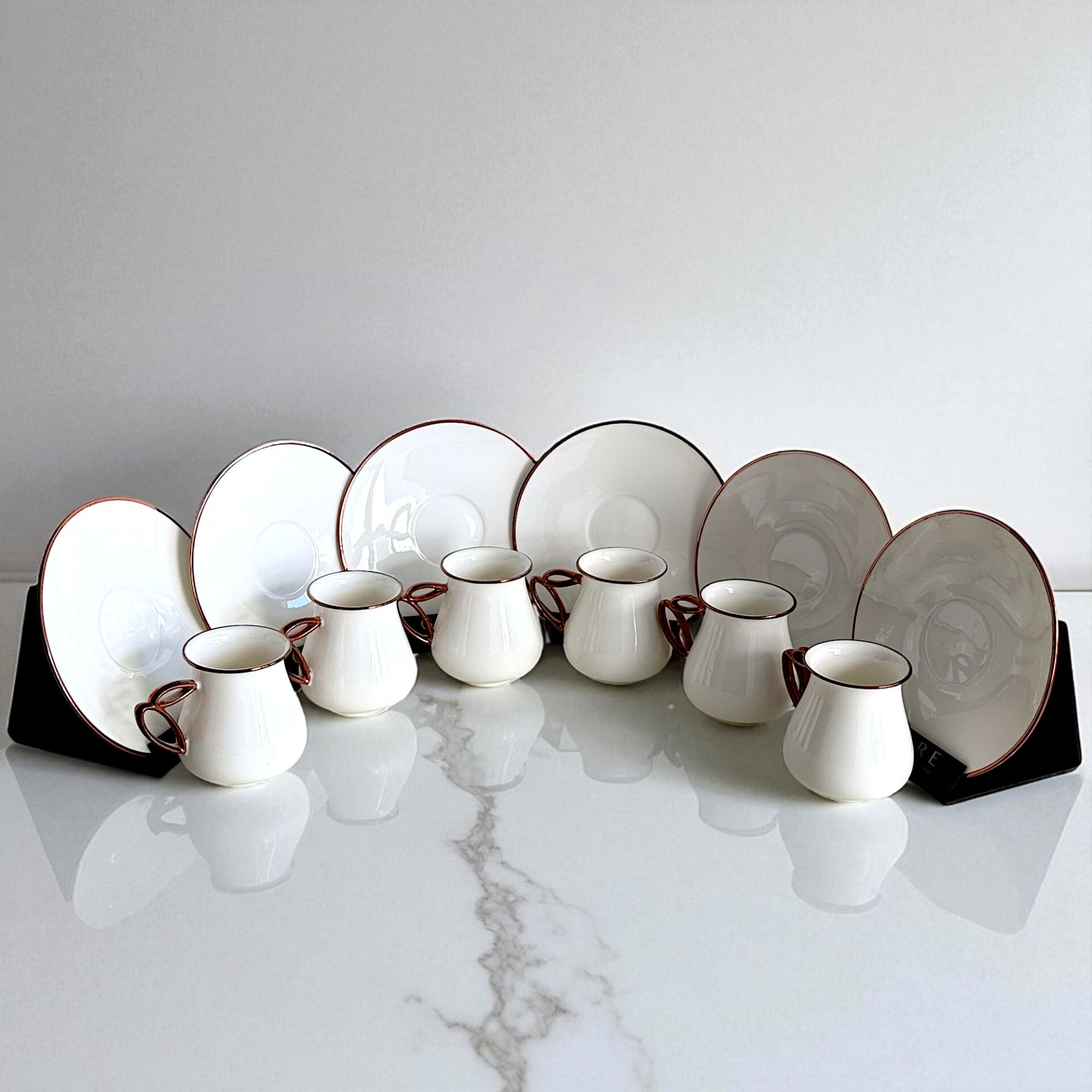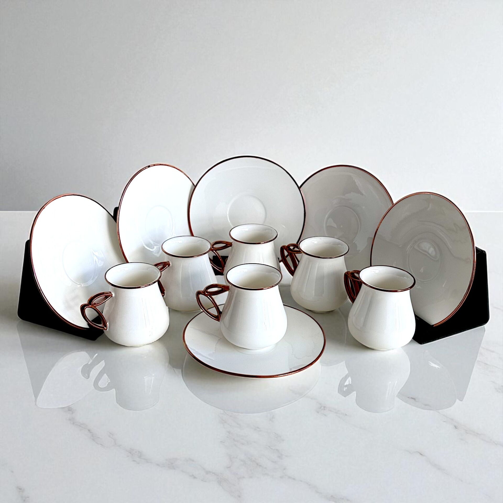 Kahve tutkunları için özel olarak tasarlanmış bu porselen Türk kahvesi fincan takımı ile kahve keyfinizi bir üst seviyeye taşıyın.
