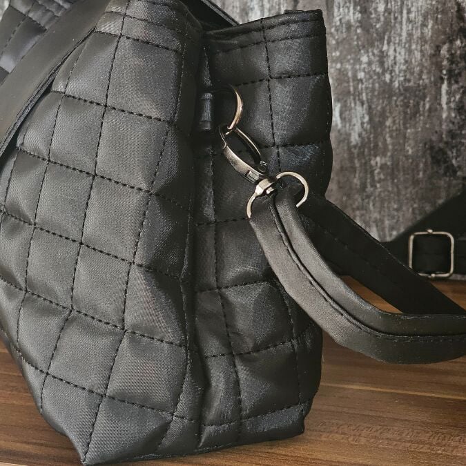 Modern Siyah Kapitone Dokulu Klips Kapamalı Çanta