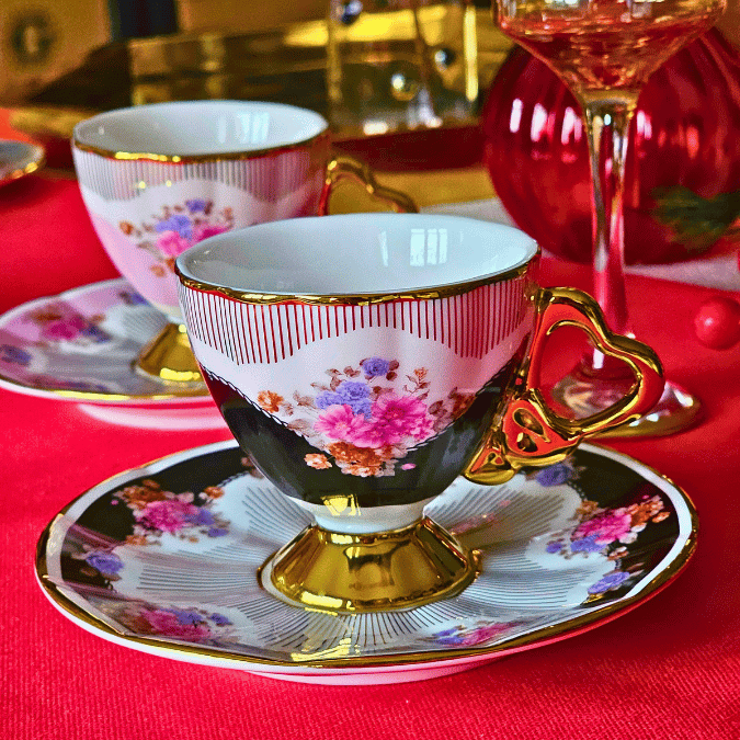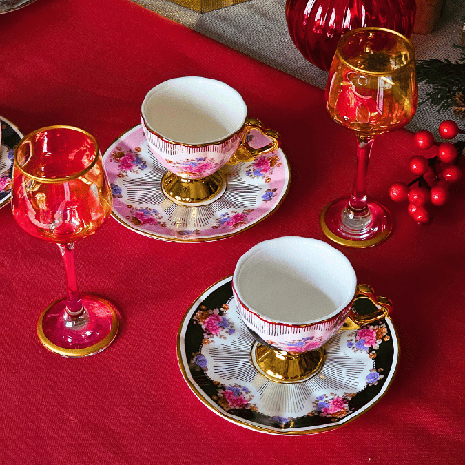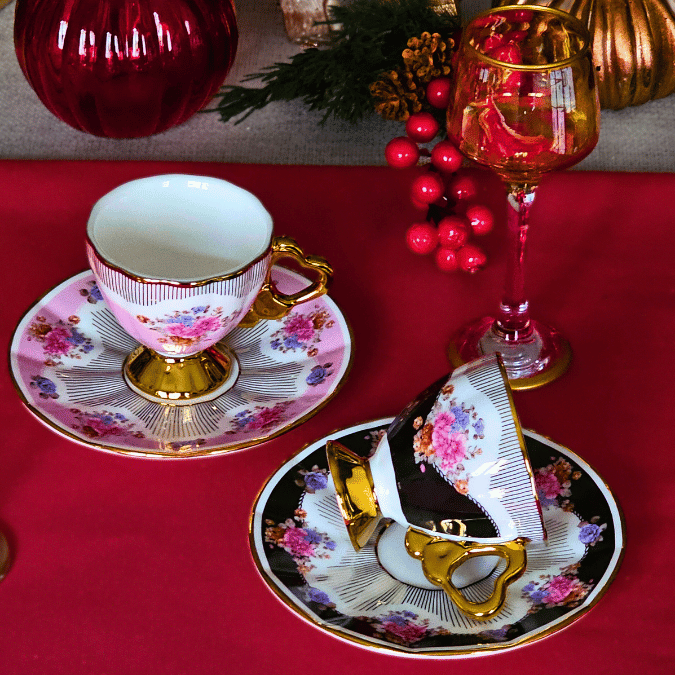 Naomi 2 Kişilik Kahve Fincanı Takımı - 90 ml (Siyah-Pembe)