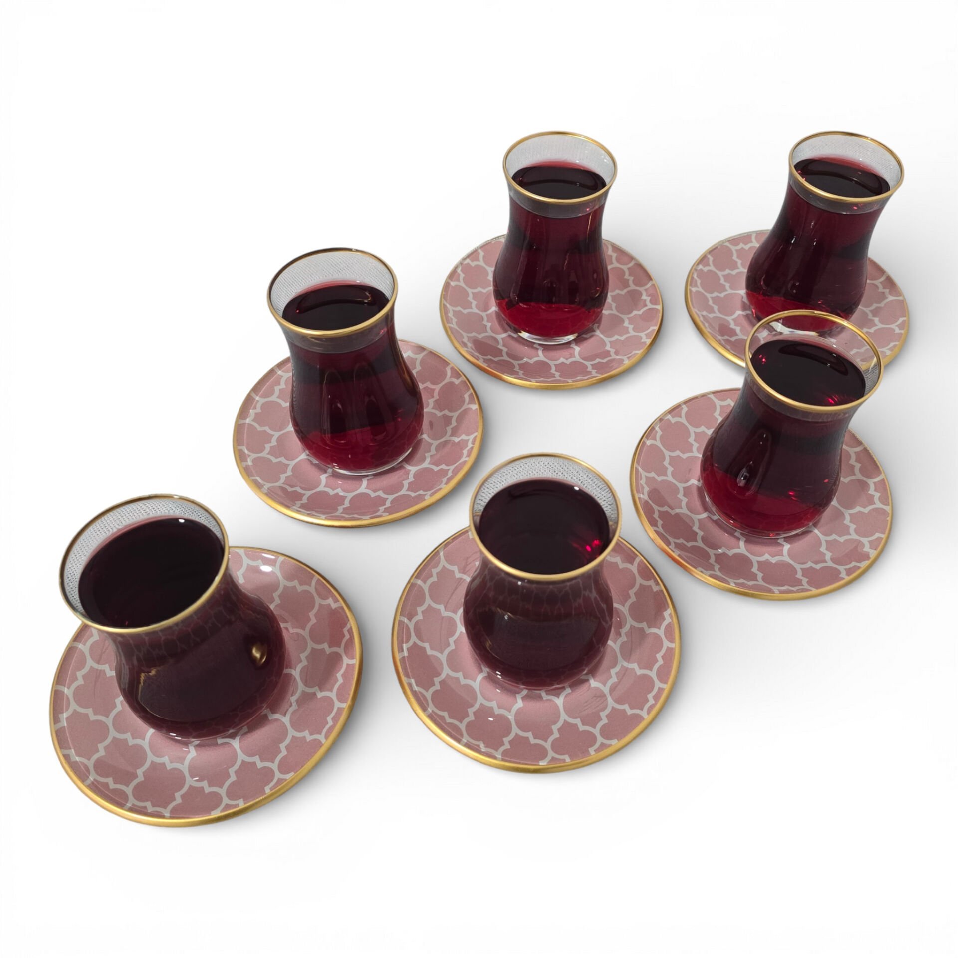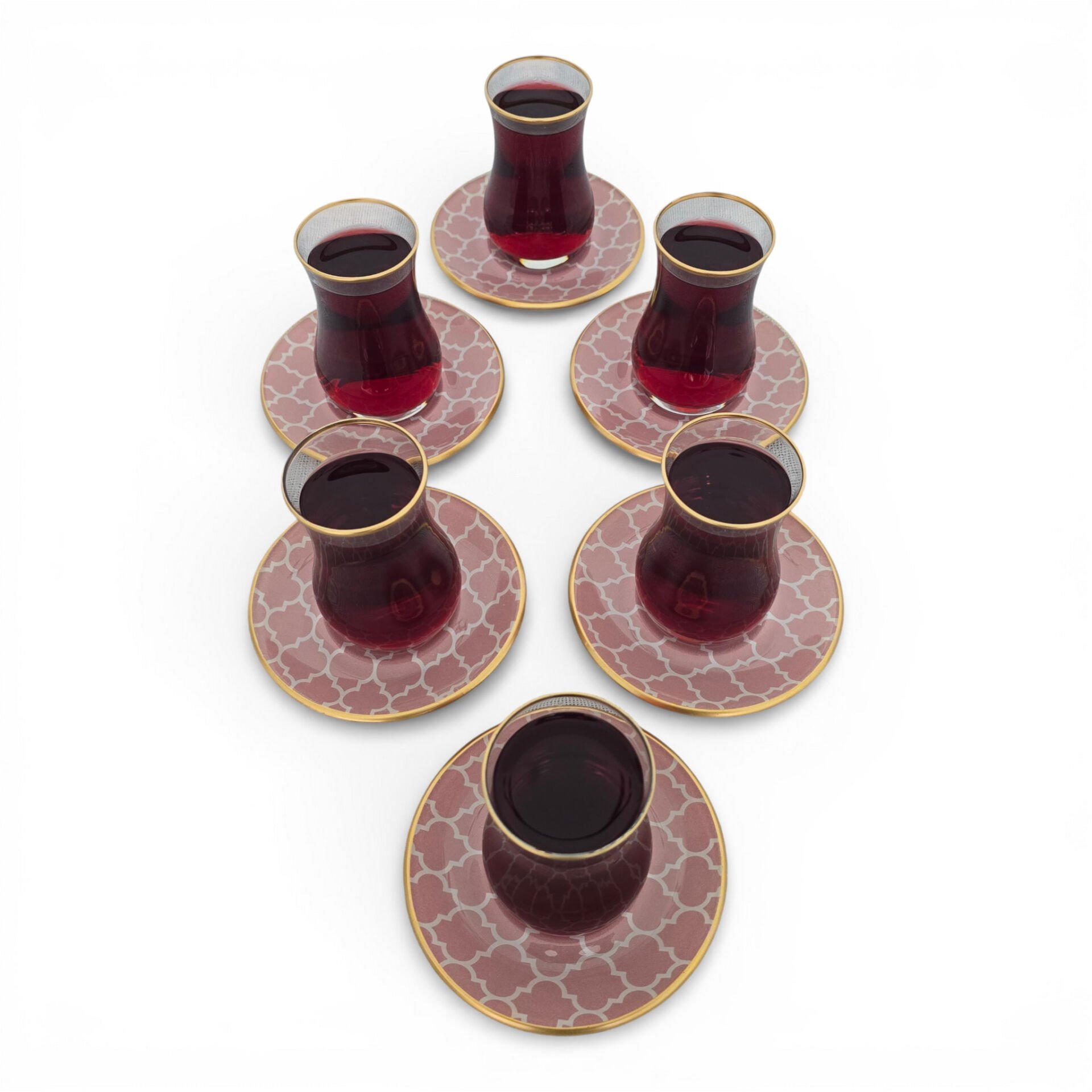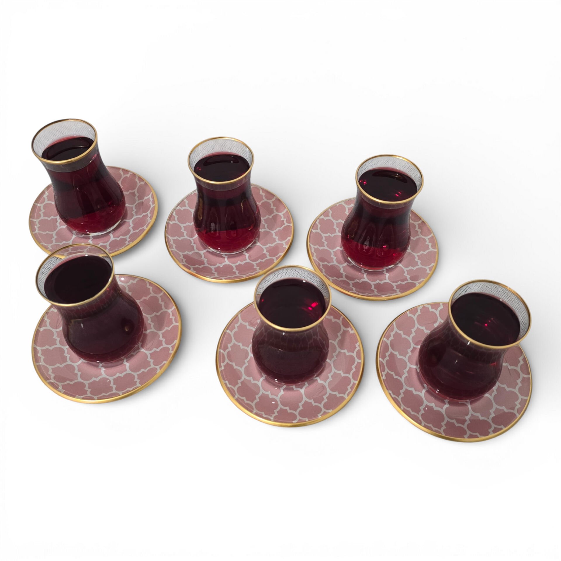 Sudedi Home Gerçek Altın Yaldızlı Pembe Desenli 6’lı Cam Çay Bardağı Seti
