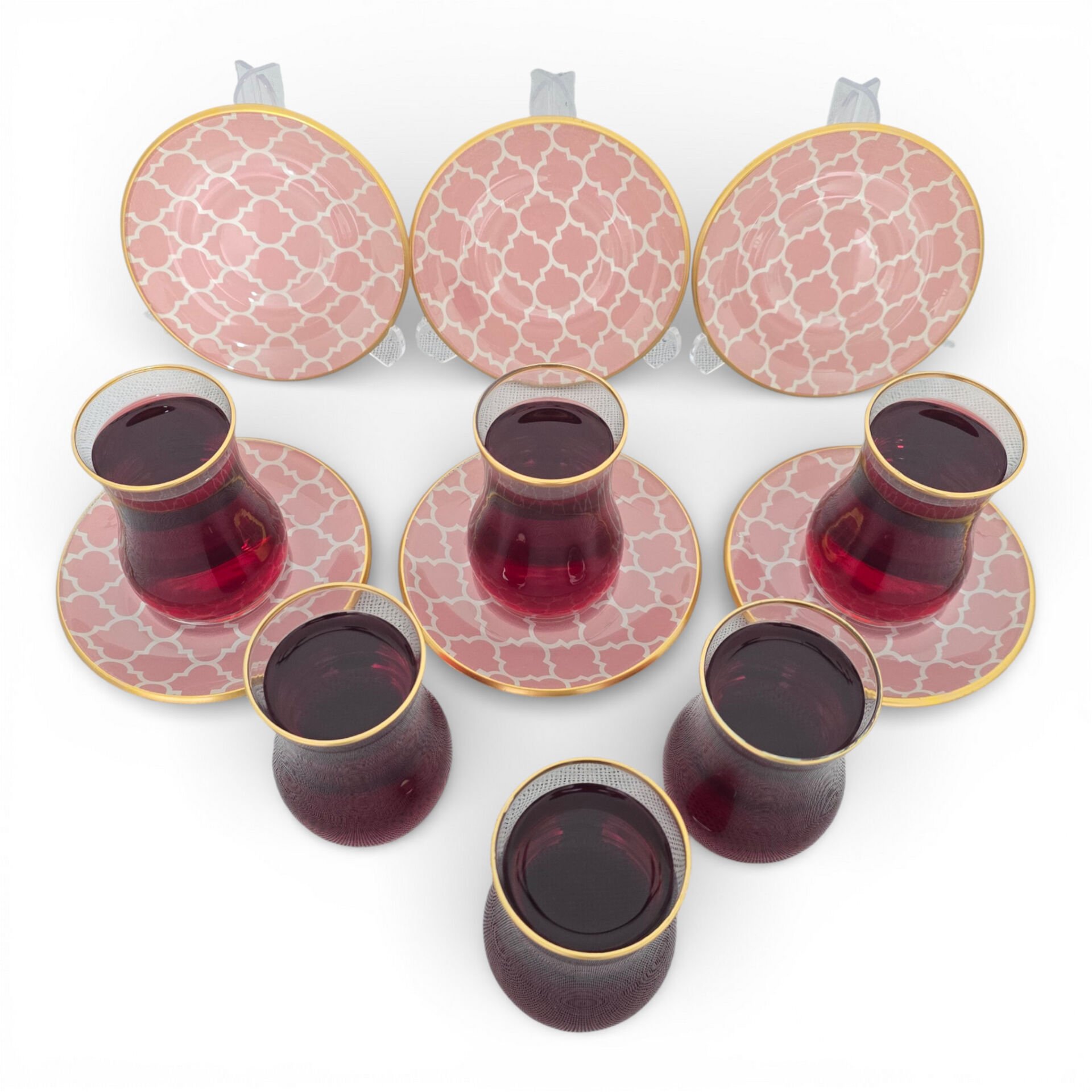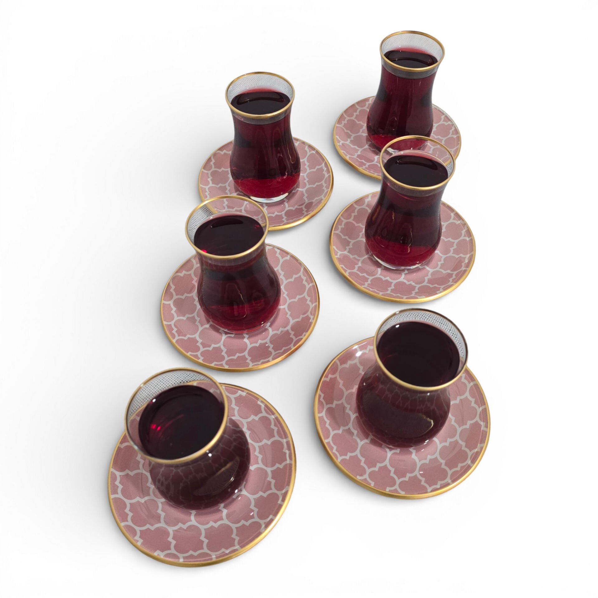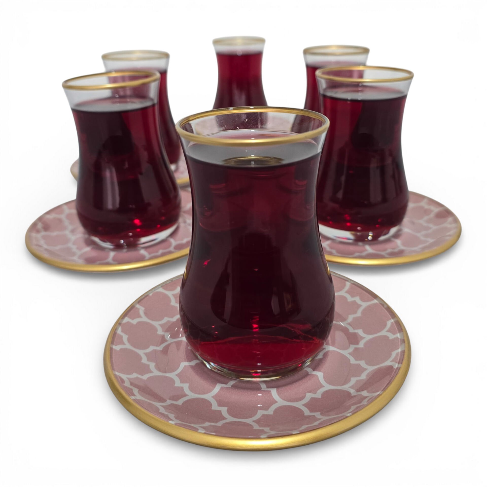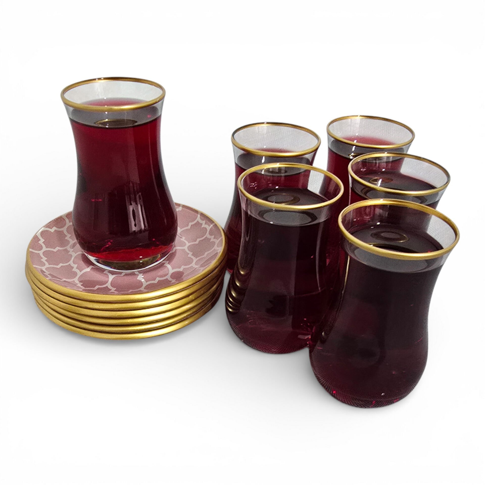 Sudedi Home Gerçek Altın Yaldızlı Pembe Desenli 6’lı Cam Çay Bardağı Seti