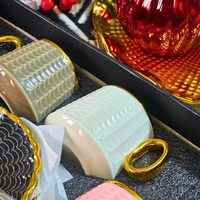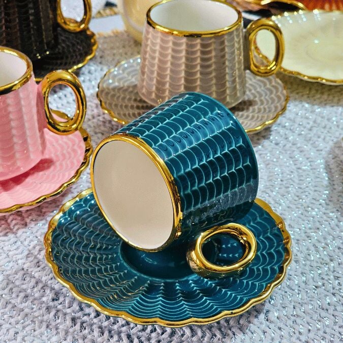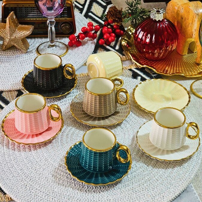 Piero Renkli Yaldızlı 6 Kişilik Kahve Fincan Takımı