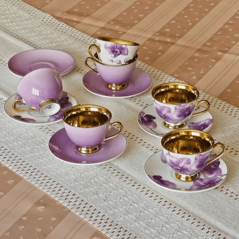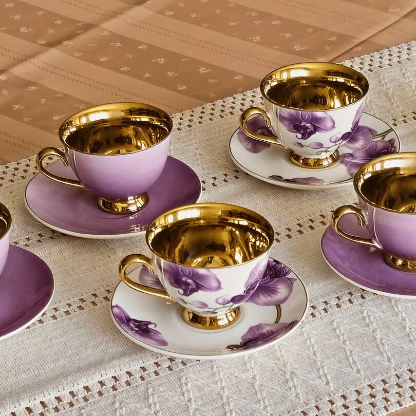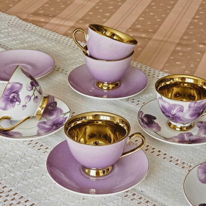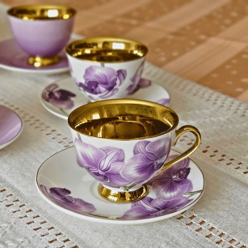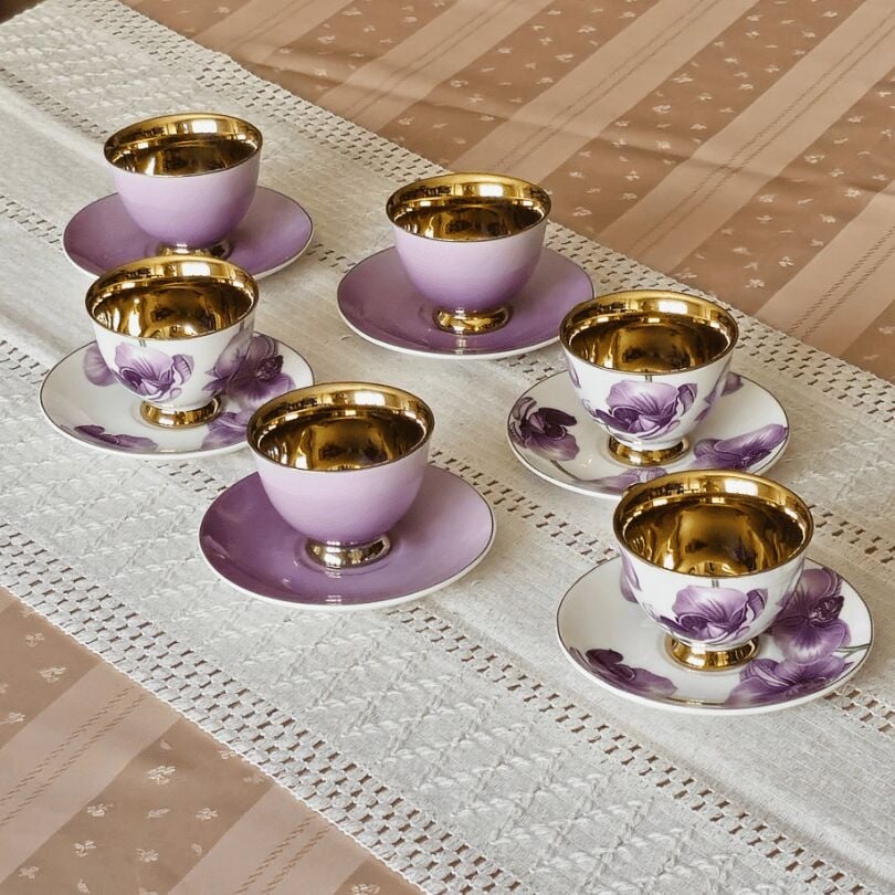 Sembol Fiona Mor Gold Çiçekli 6 Kişilik Porselen Kahve Fincan Takımı Harlem-715