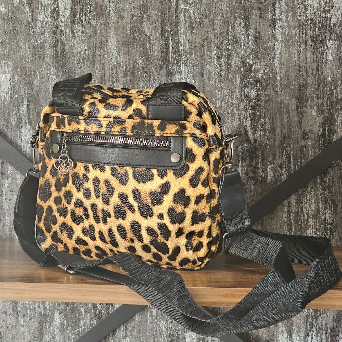 Stil sahibi ve pratik kadınların vazgeçilmezi olacak bu leopar desenli çanta ile tanışın! Sadece dikkat çekici deseniyle değil, aynı zamanda akıllıca tasarlanmış çoklu cep sistemiyle de fark yaratıyor. Ana bölmesinin yanı sıra, ön yüzünde ve yanlarında yer alan fermuarlı cepler sayesinde telefonunuz, anahtarlarınız, makyaj malzemeleriniz ve diğer kişisel eşyalarınız için özel alanlar yaratabilirsiniz. Böylece her şey elinizin altında ve düzenli!