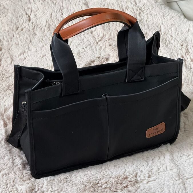 Şık ve Fonksiyonel Siyah Kanvas Tote Çanta Kahverengi Deri Detaylı