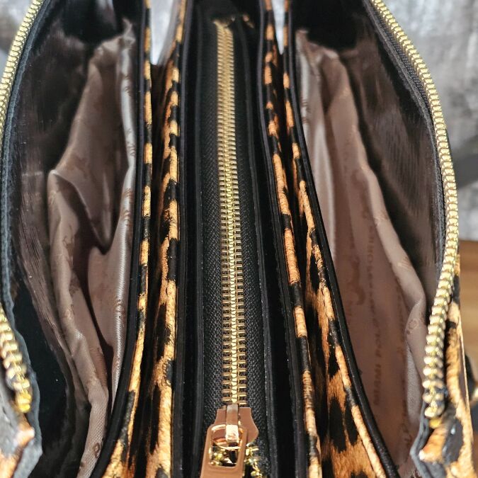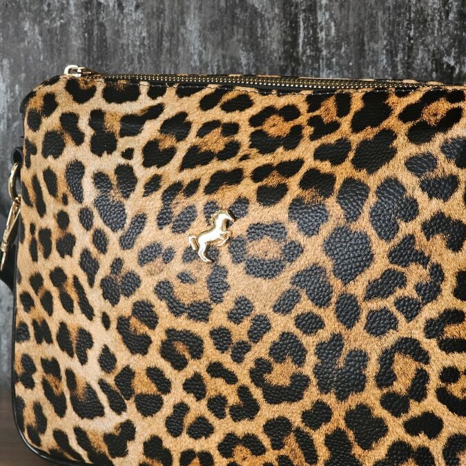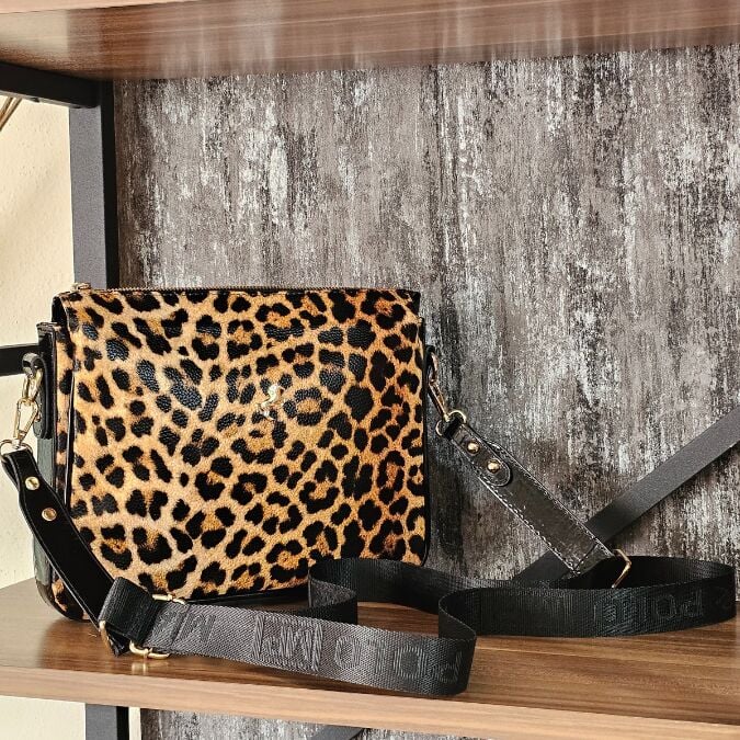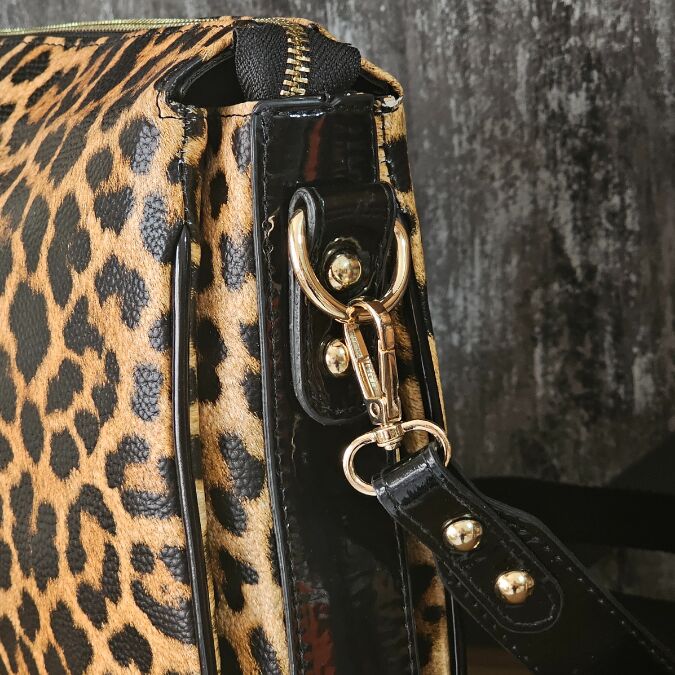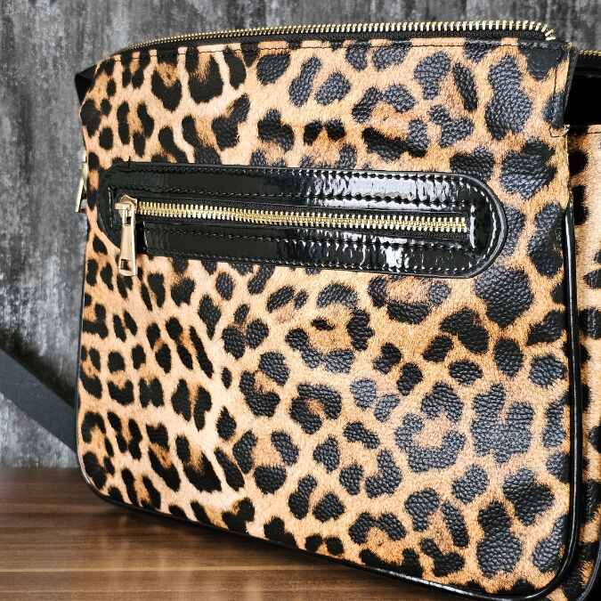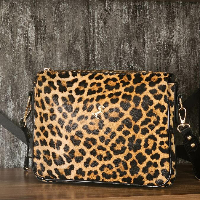 Vahşi ve şık görünümü bir araya getiren bu çarpıcı leopar desenli çanta ile tarzınızı bir üst seviyeye taşıyın.