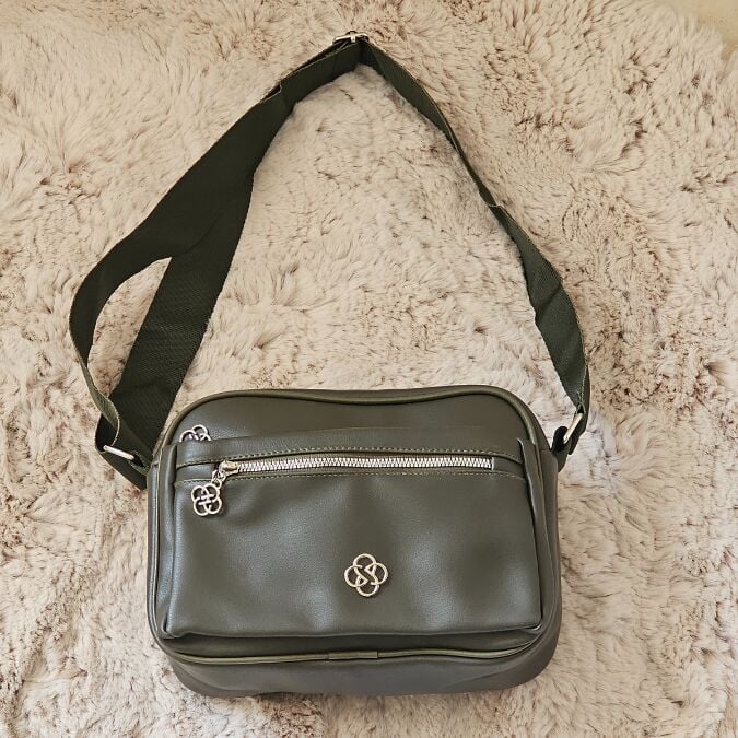 Bu modern ve kullanışlı zeytin yeşili omuz çantası, stilinize sofistike bir dokunuş katarken günlük ihtiyaçlarınızı düzenli bir şekilde taşımanıza olanak tanır.