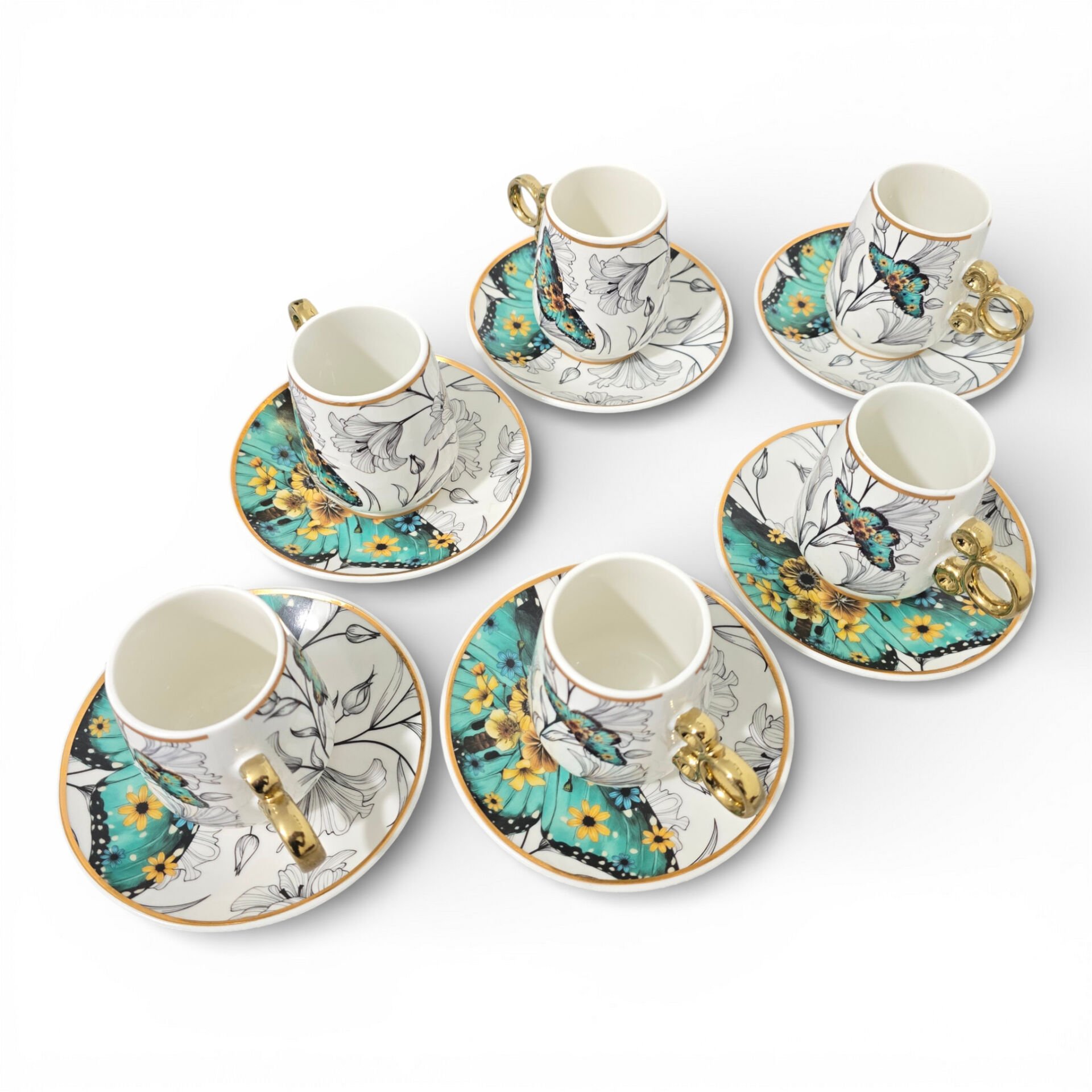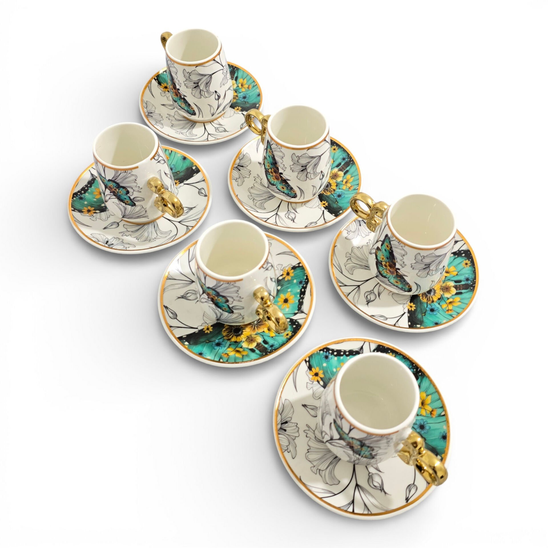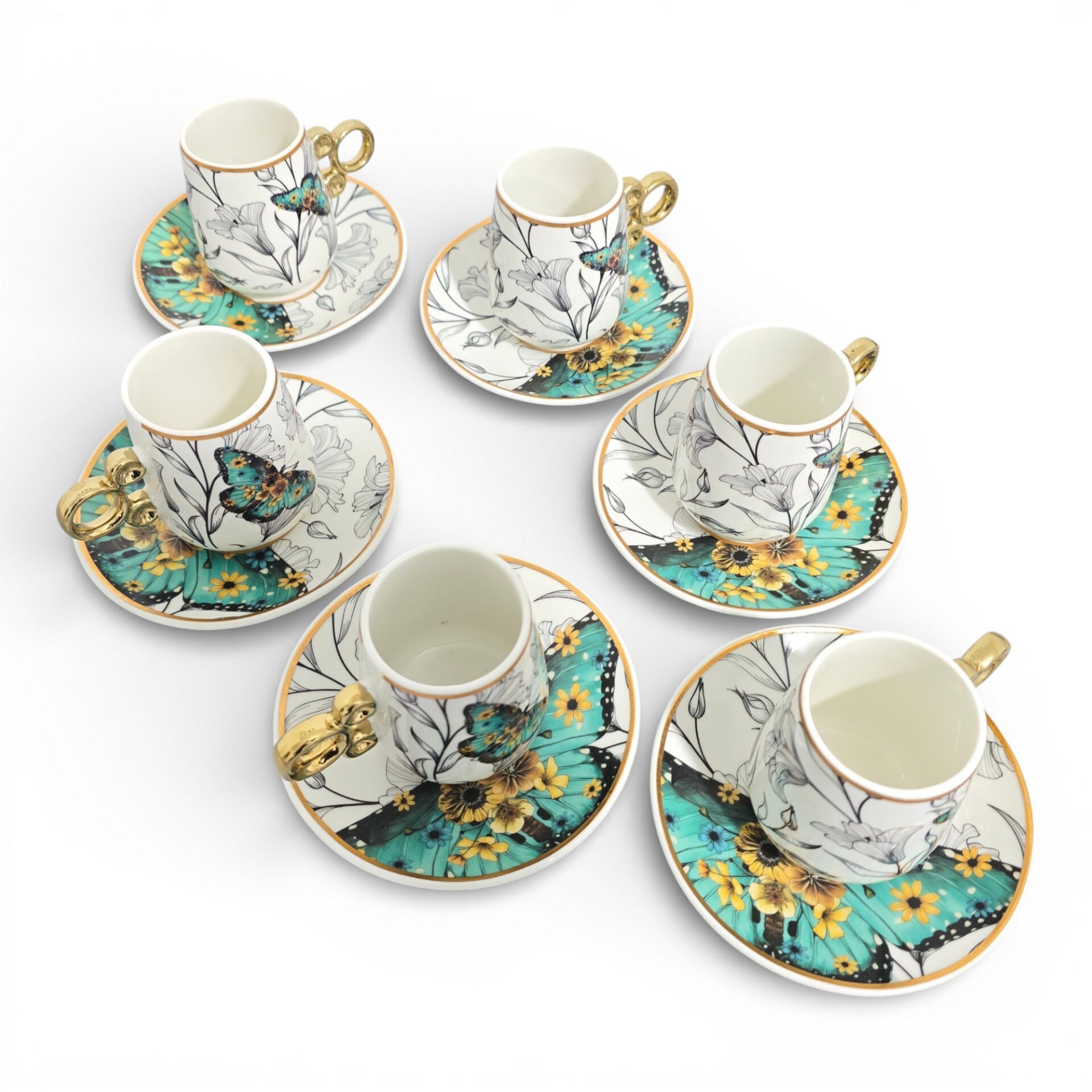 Sudedi Floral Renkli Yaldızlı 6 Kişilik Kahve Fincan Takımı