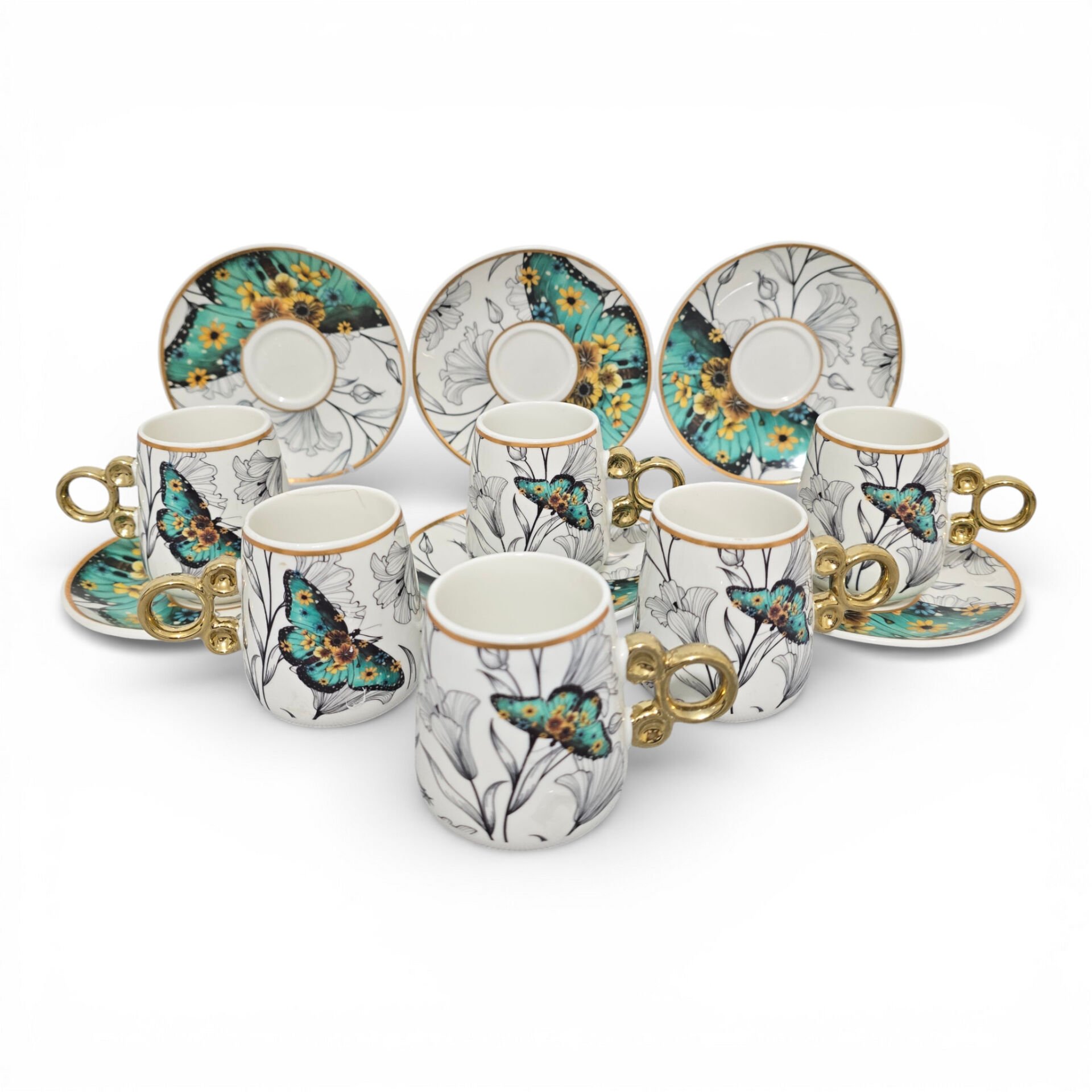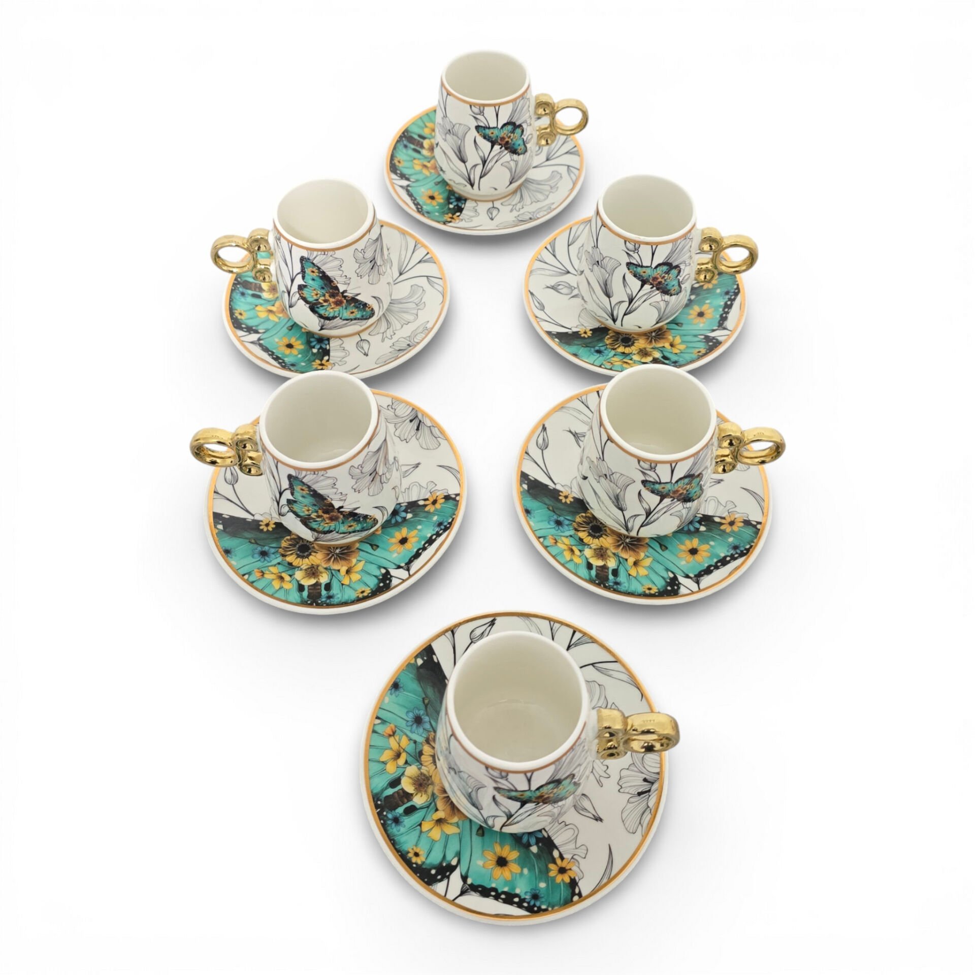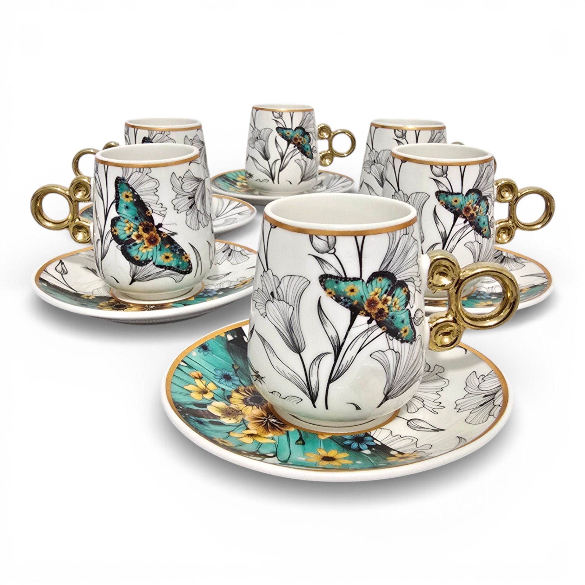 Sudedi Floral Renkli Yaldızlı 6 Kişilik Kahve Fincan Takımı