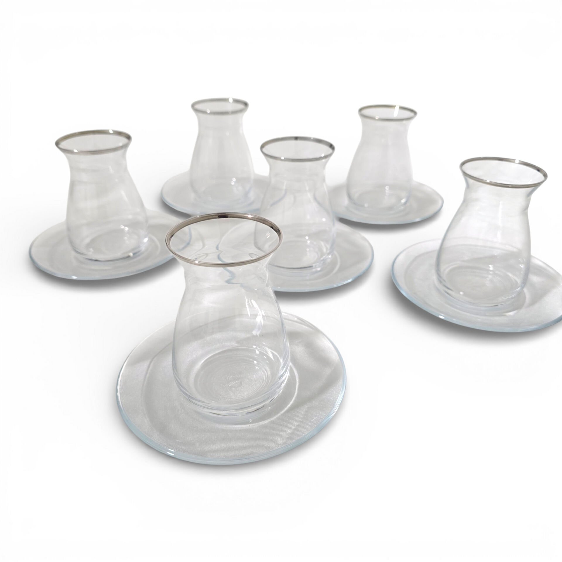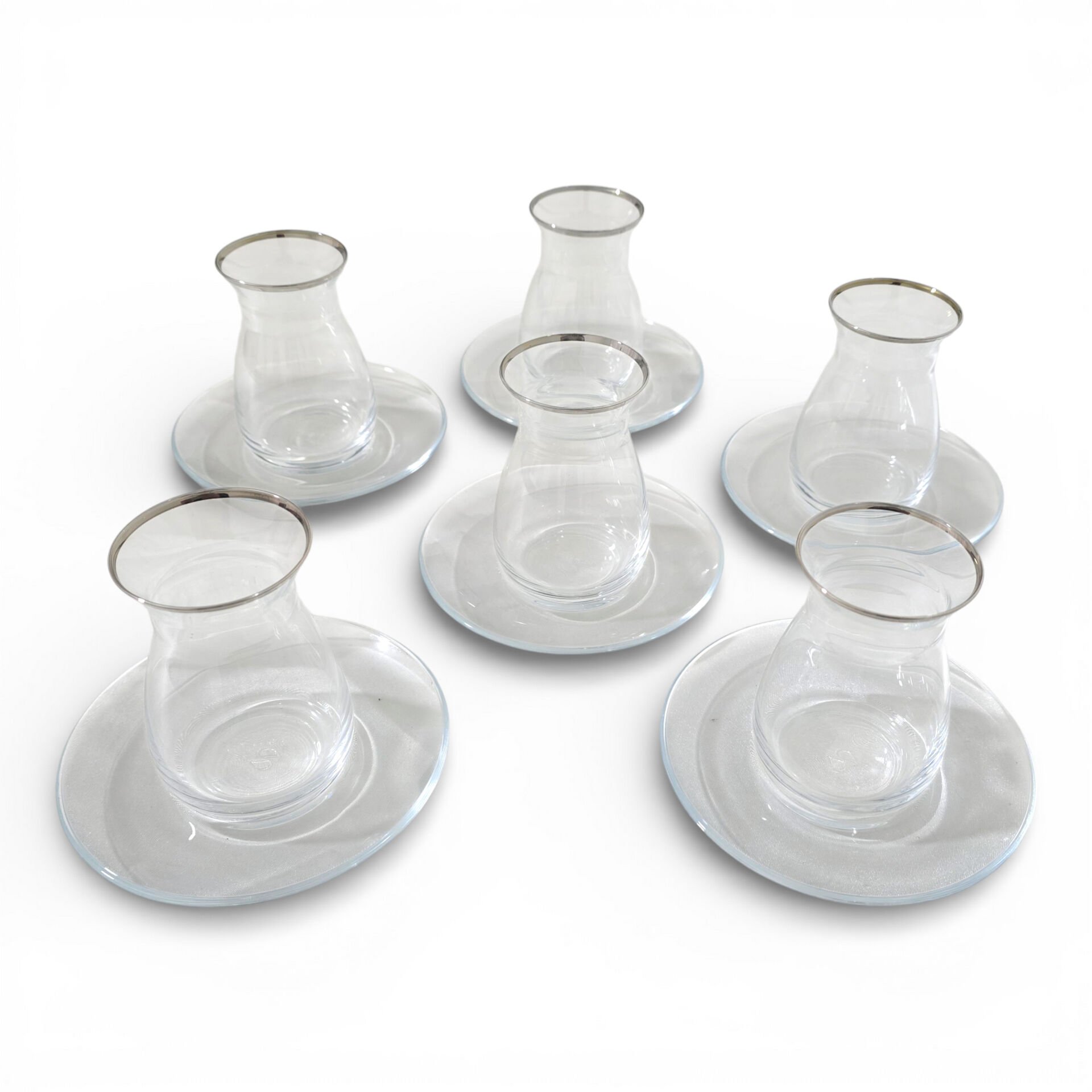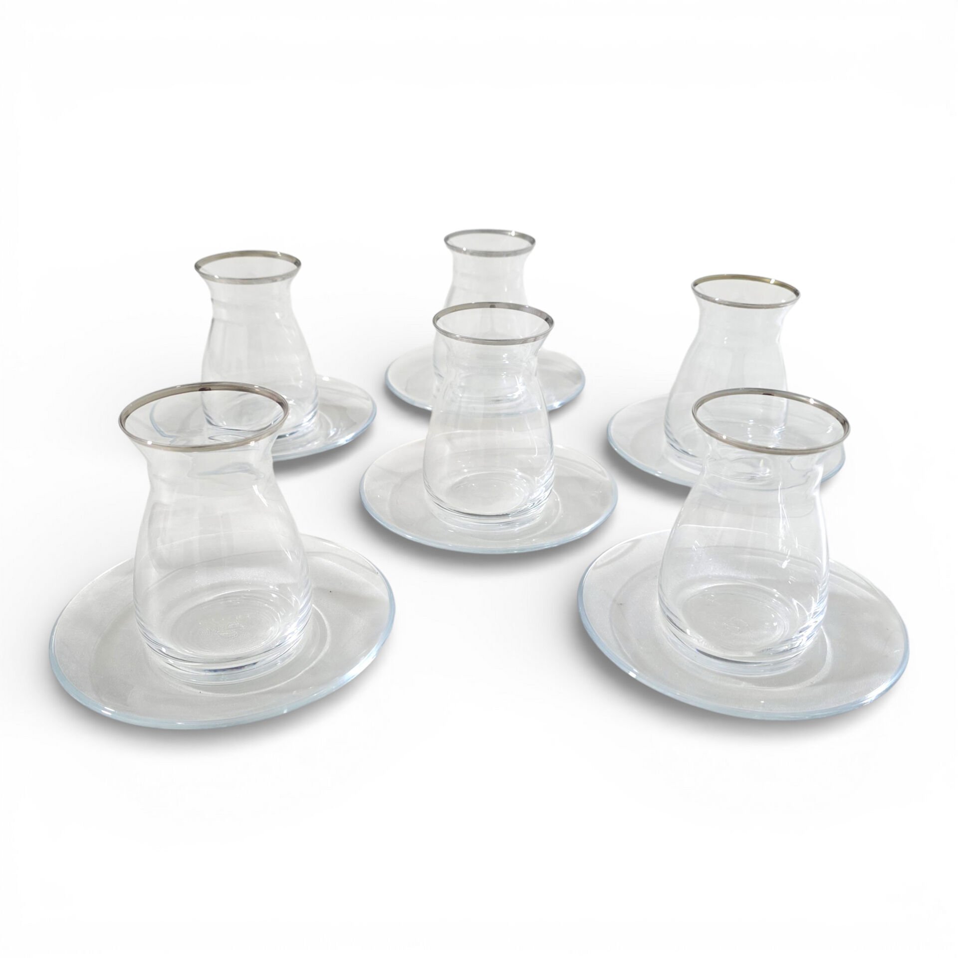 Sudedi Home 6 Kişilik Platin Yaldızlı Çay Bardağı Ve Cam Çay Tabağı Seti