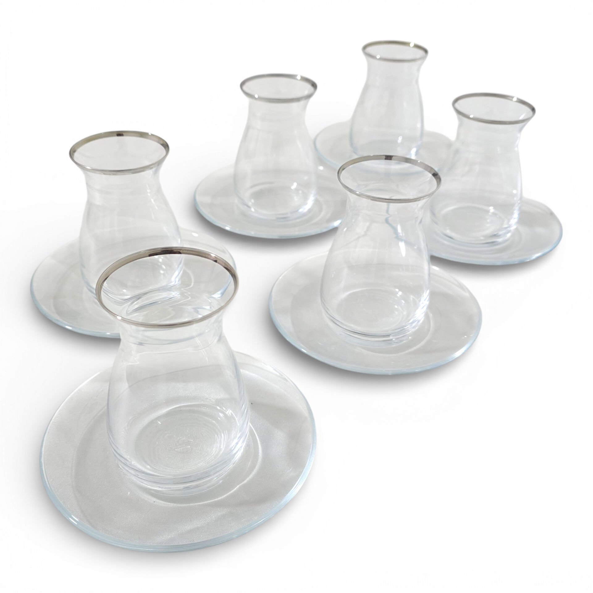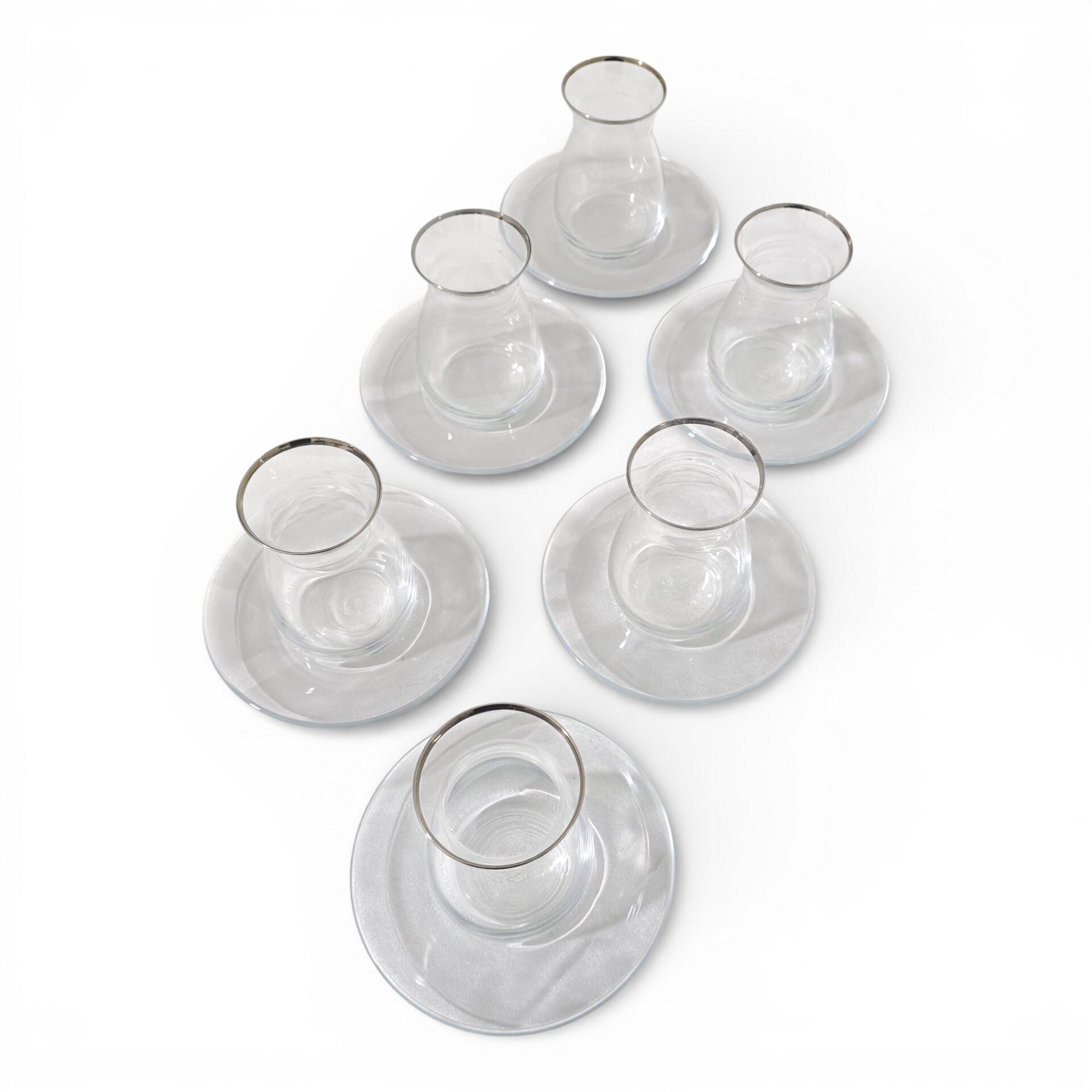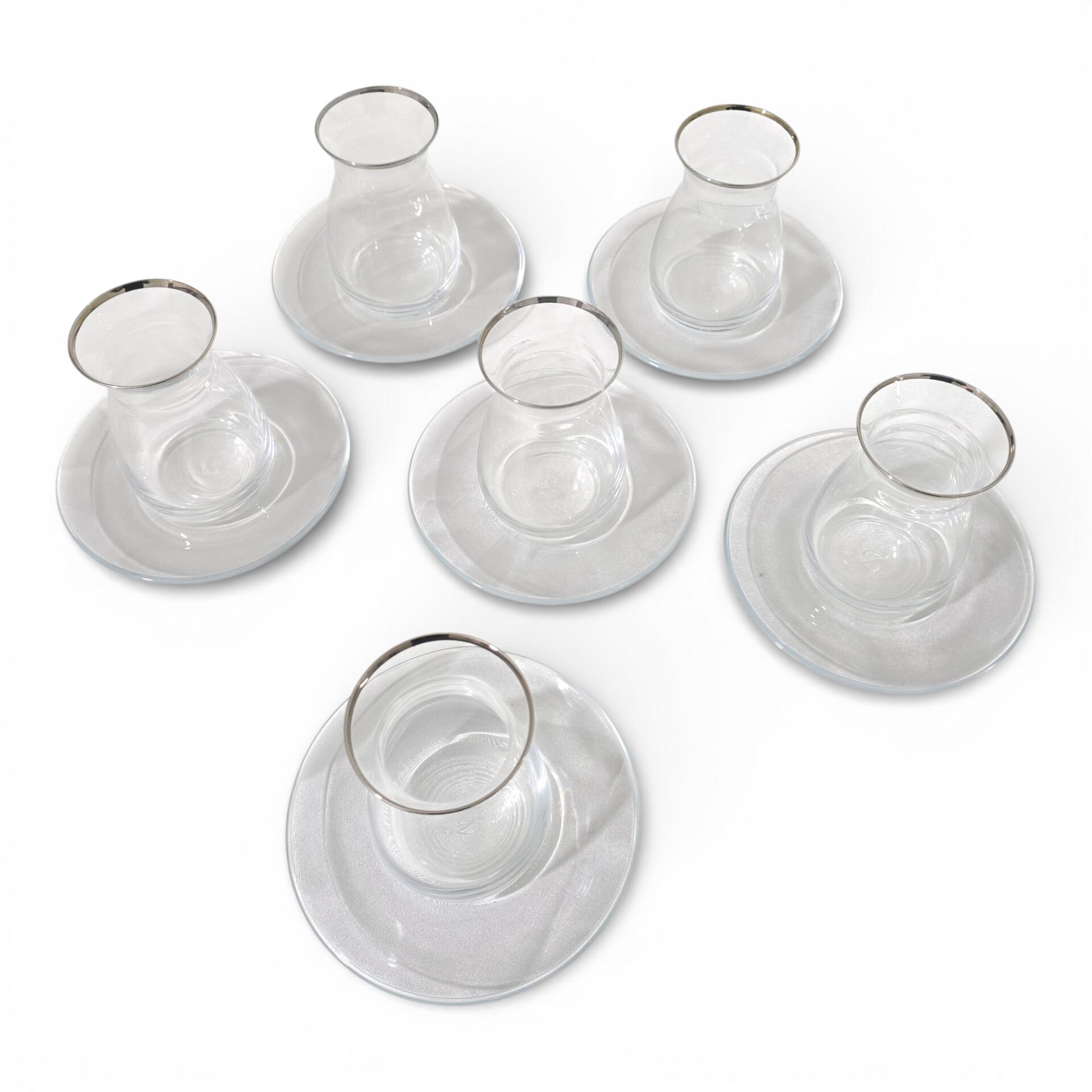 Sudedi Home 6 Kişilik Platin Yaldızlı Çay Bardağı Ve Cam Çay Tabağı Seti