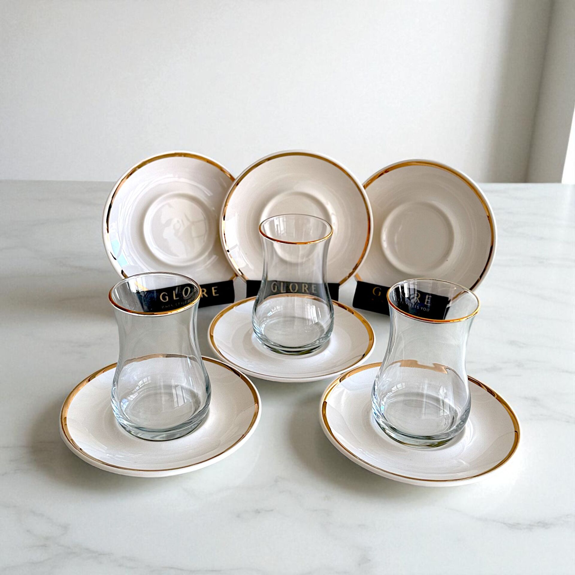 Sudedi Home Altın Yaldızlı Beyaz 6 Kişilik Çay Bardağı Seti ile Sofralarınıza Klasik Bir Şıklık Katın!