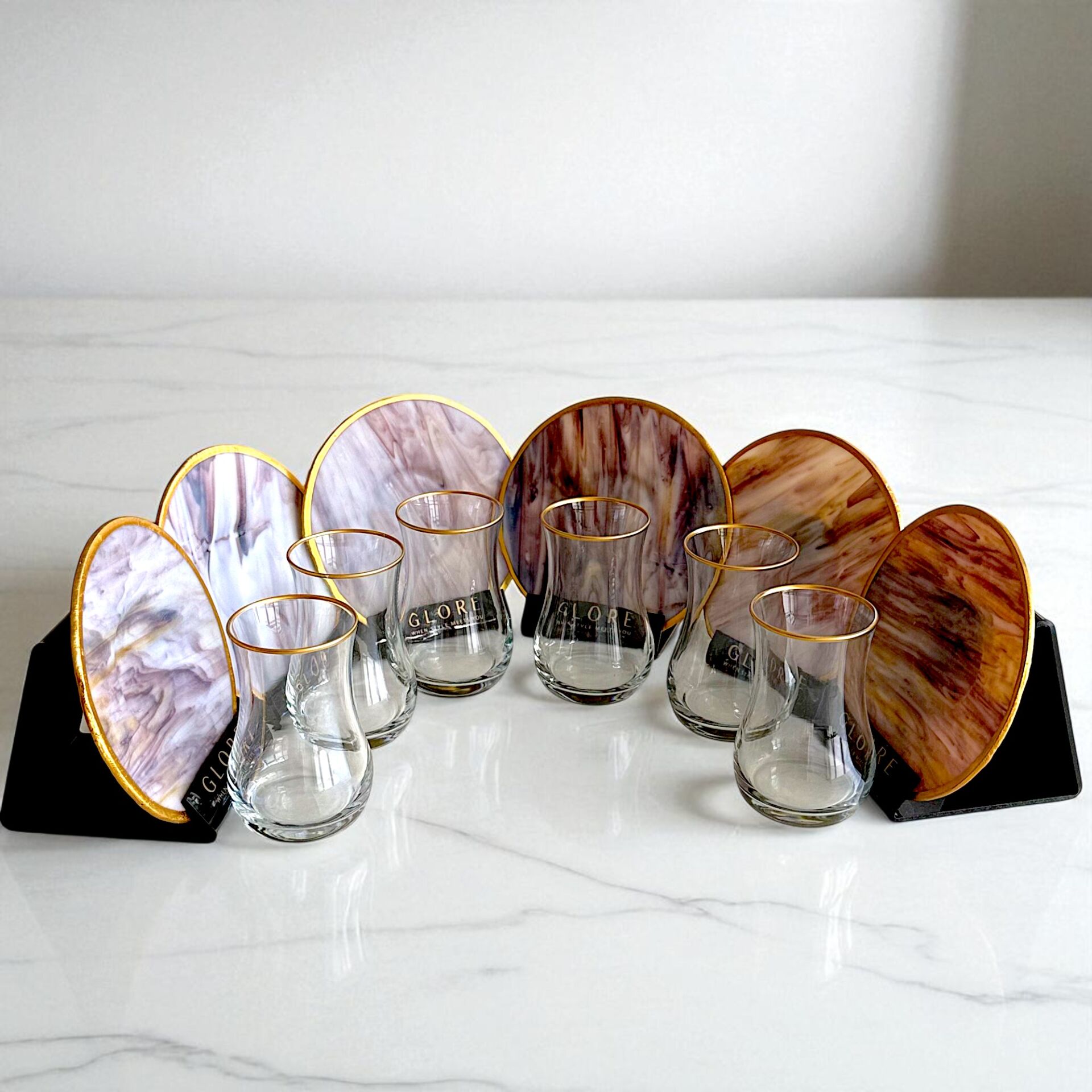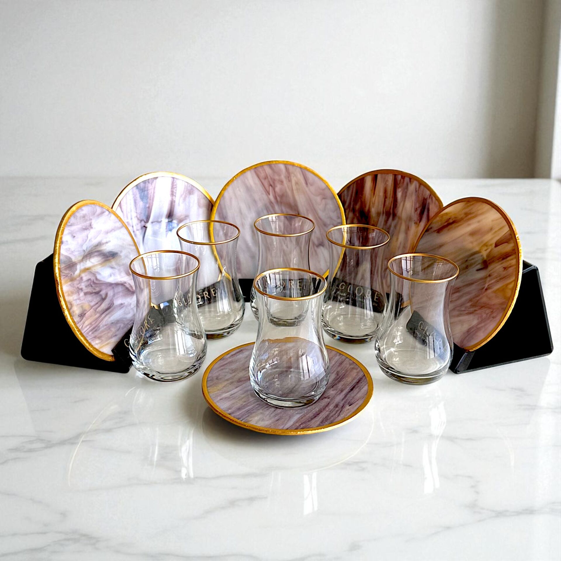Sudedi Home Mermer Desenli 6 Kişilik Lüks Çay Seti
