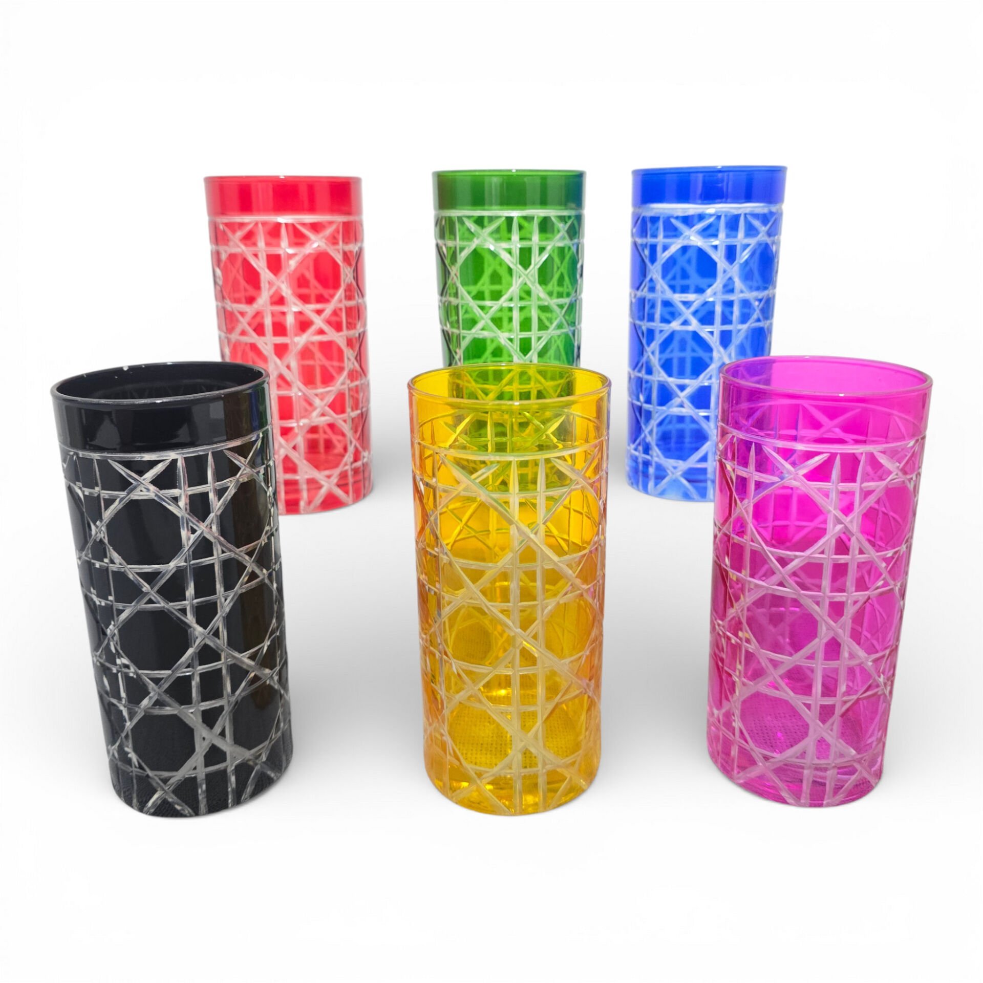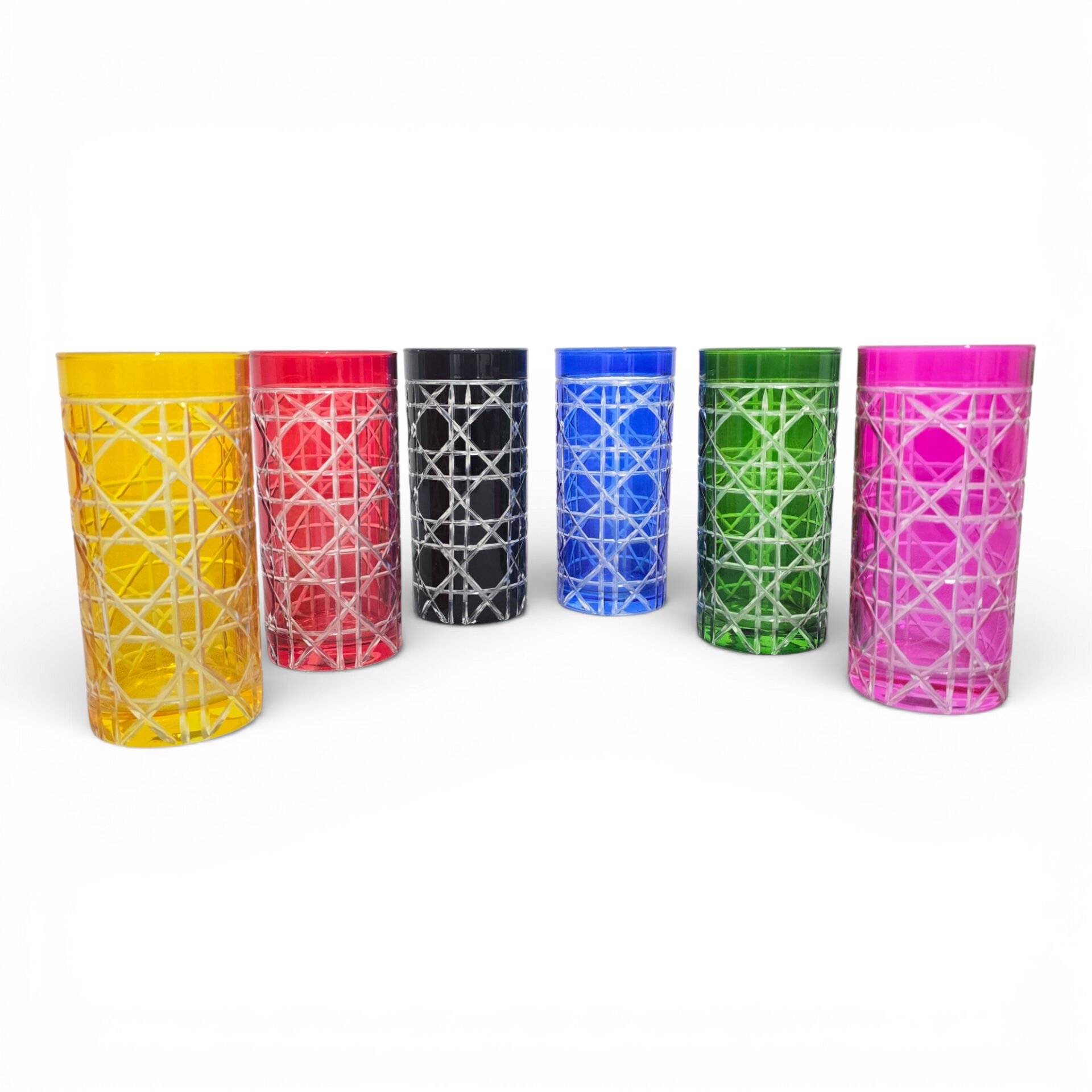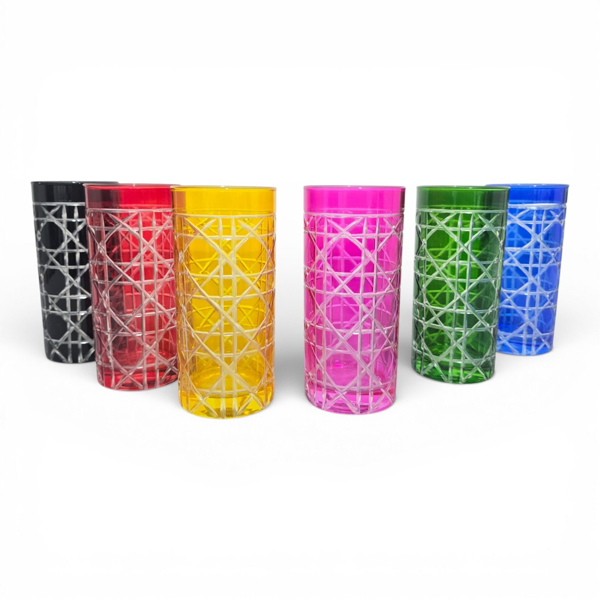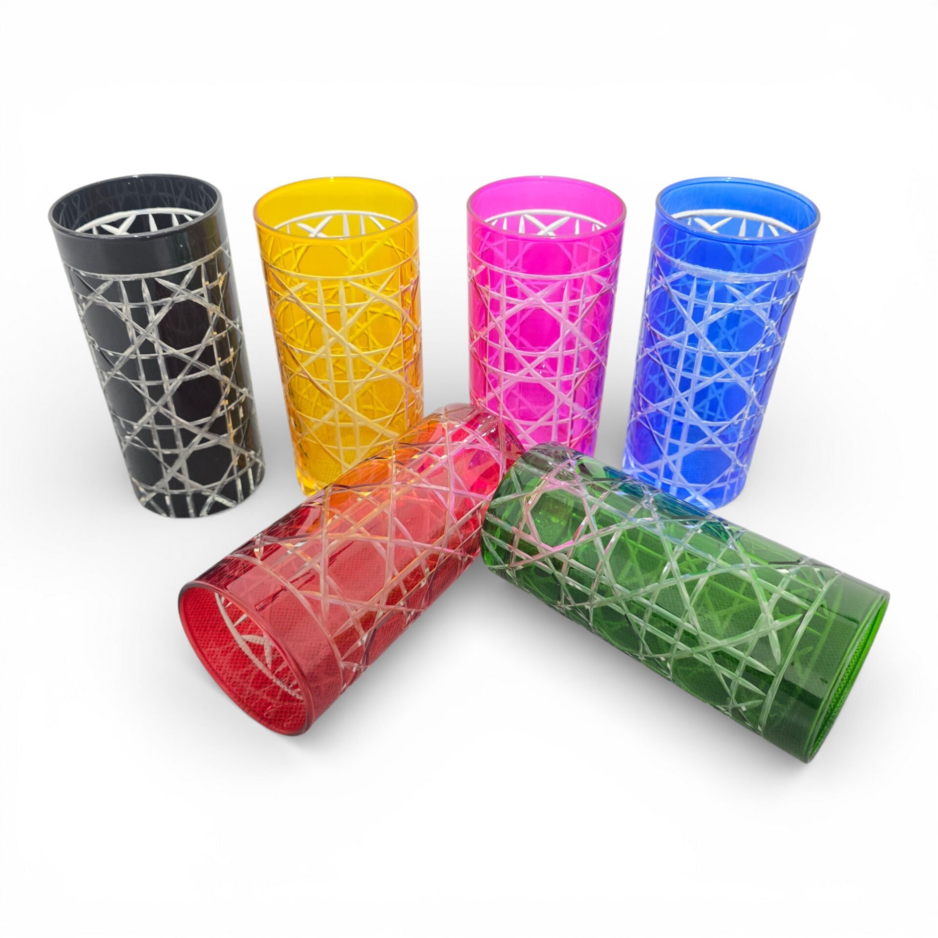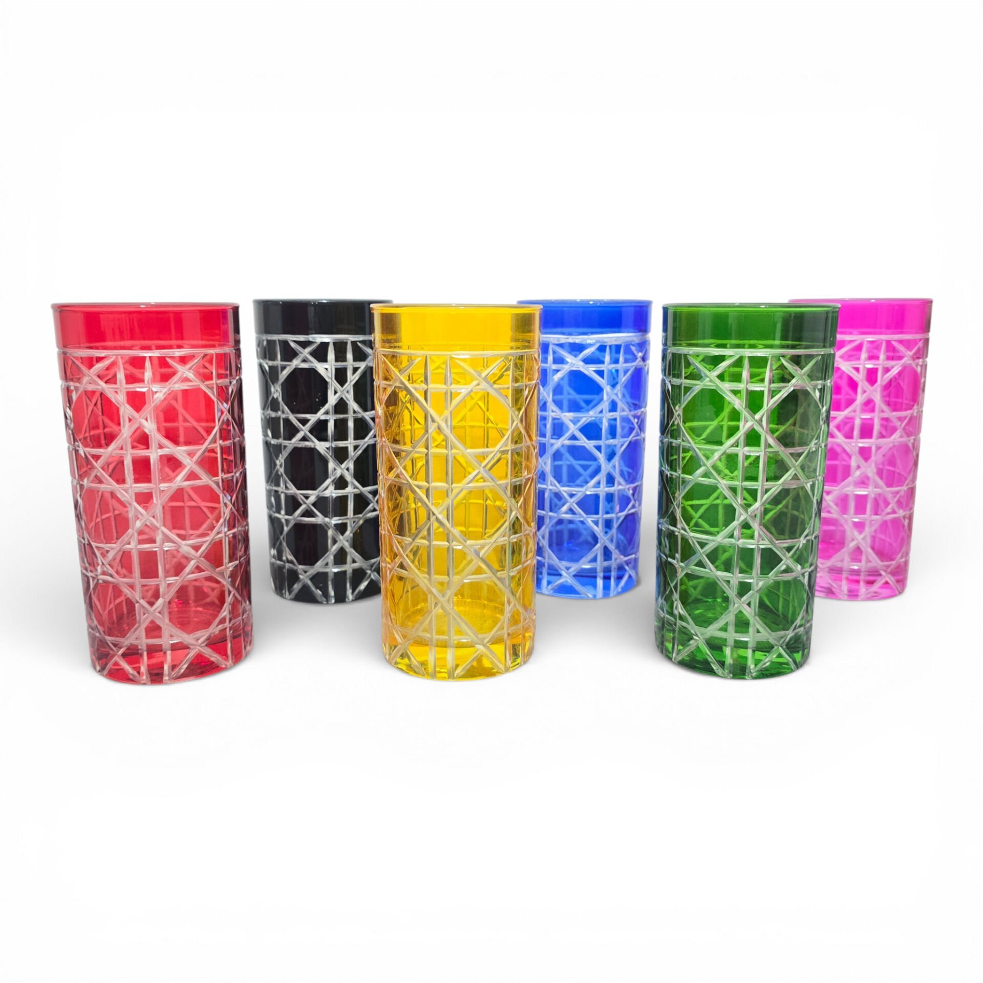 Set içeriği 6 adet renkli kesme cam kahve yanı su bardağından oluşur.