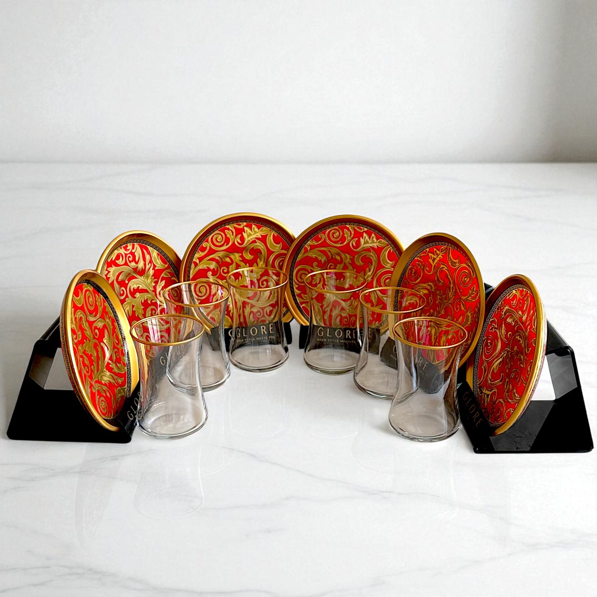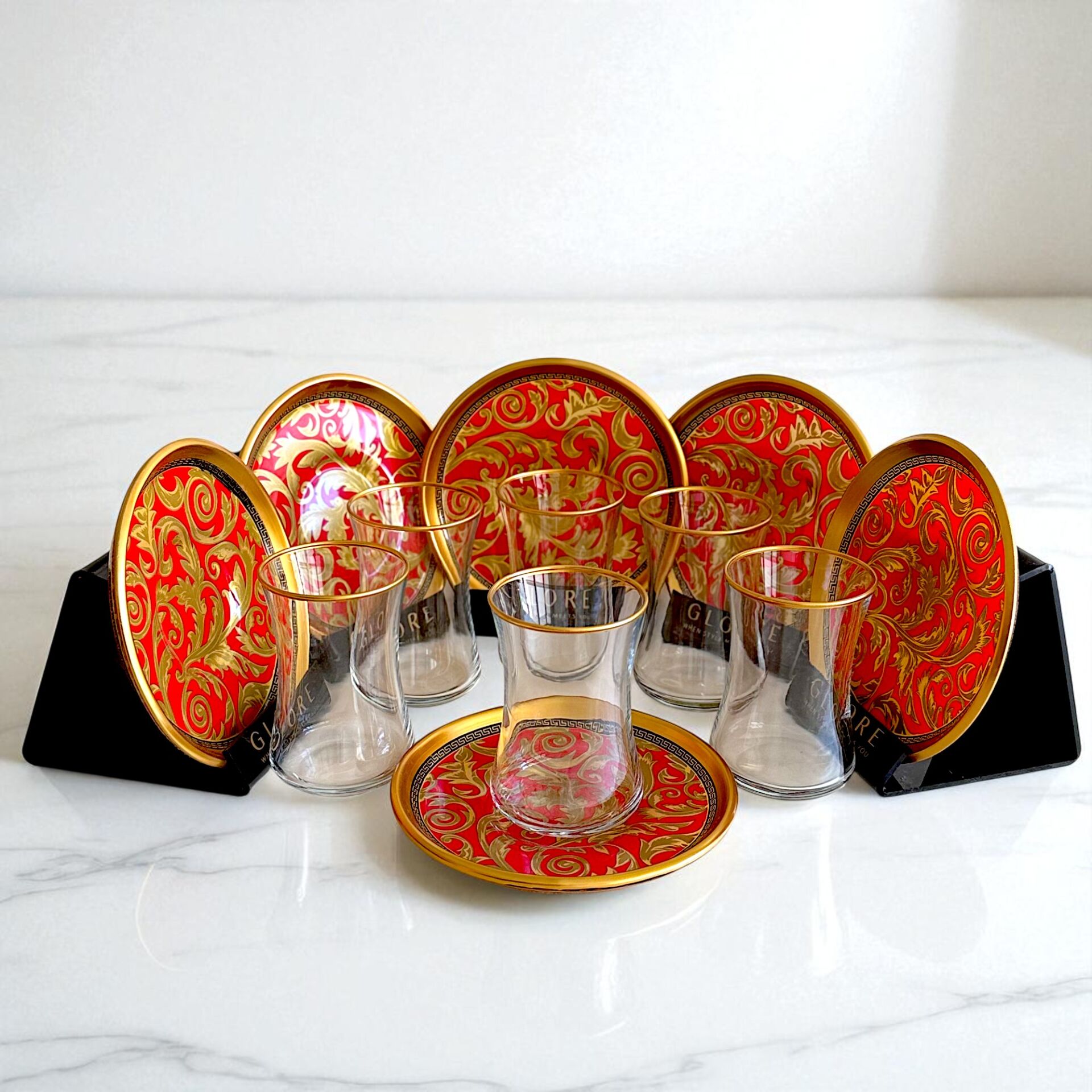 Sudedi Home Kırmızı ve Altın Desenli 6 Kişilik Çay Bardağı Seti ile Sofra Sunumlarınıza Asil Bir Dokunuş Katın!