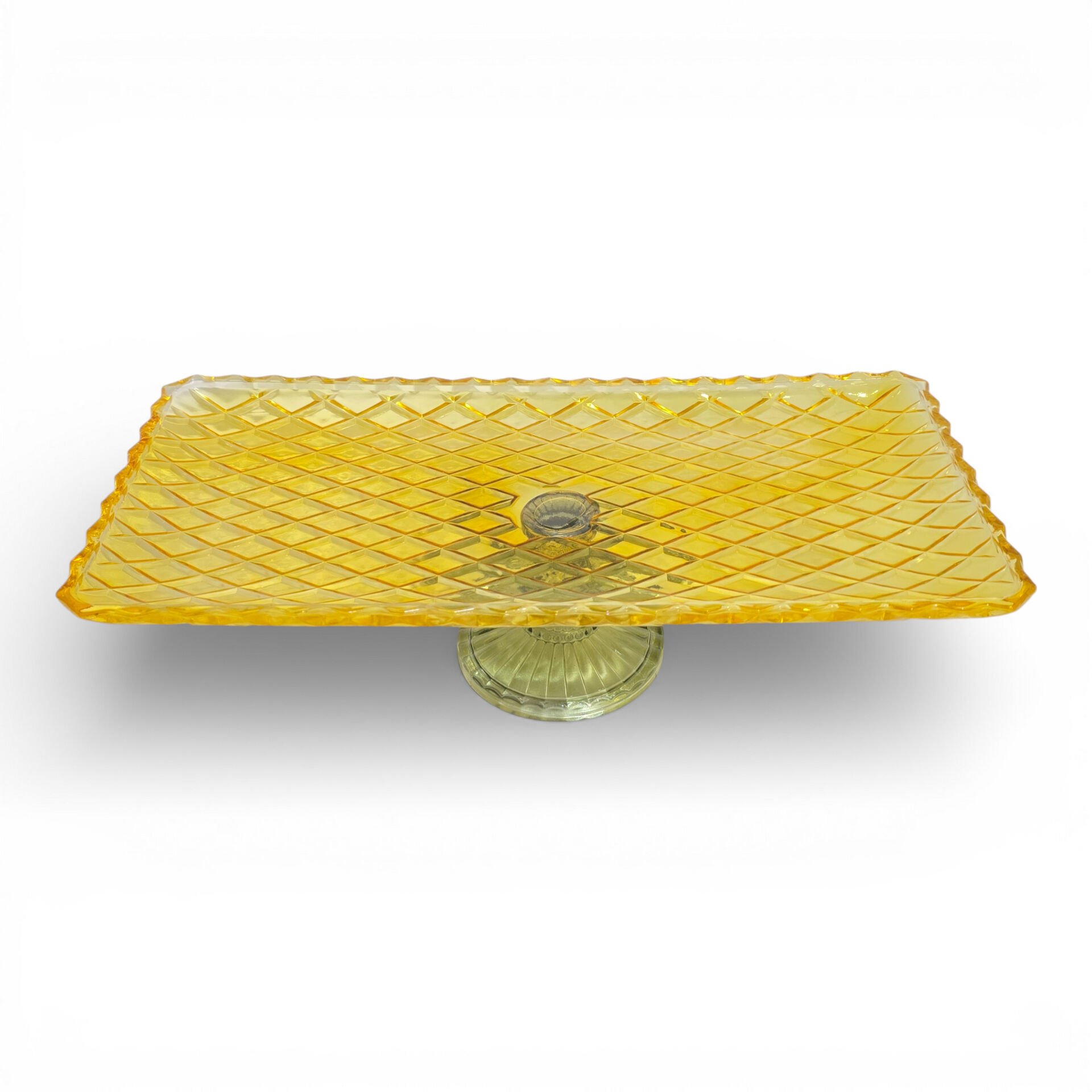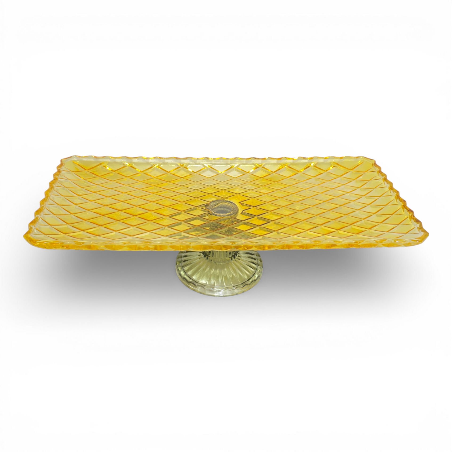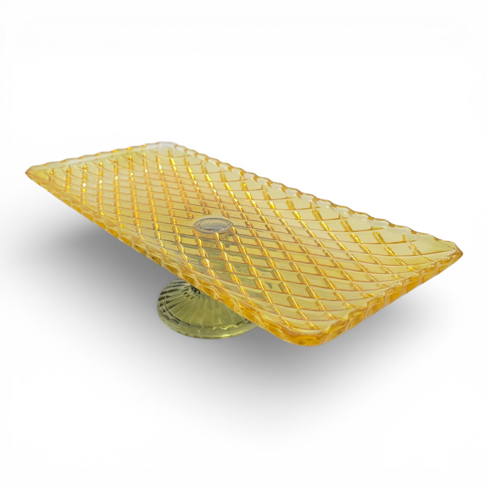 Sudedi Home Sarı Cam Baklava Desenli Ayaklı Sunum Tabağı 37×18 cm