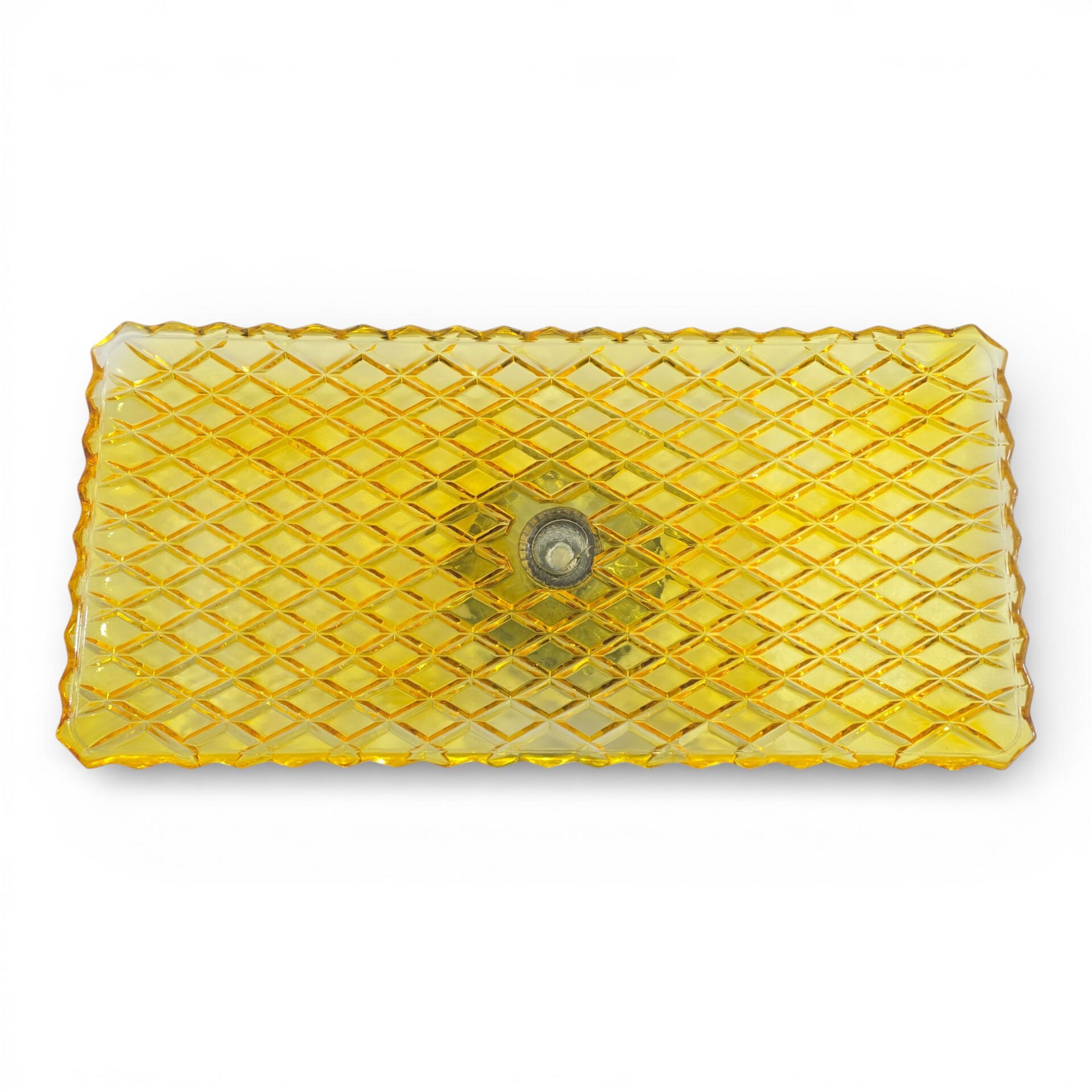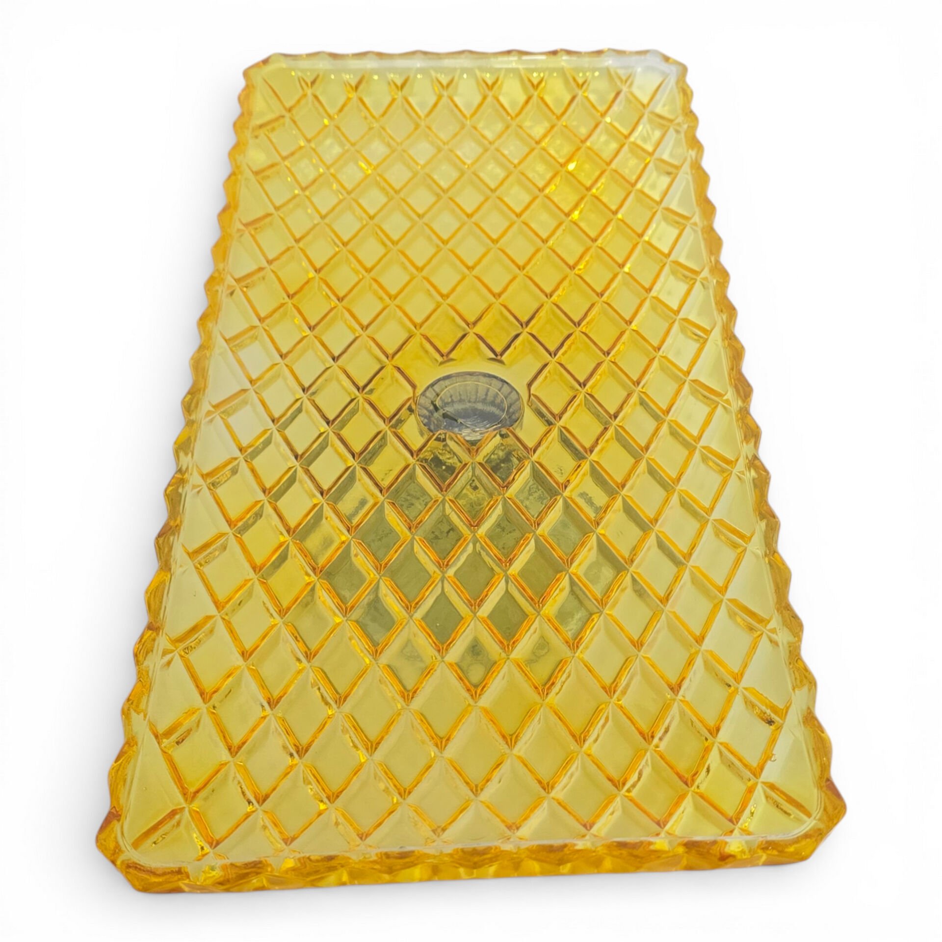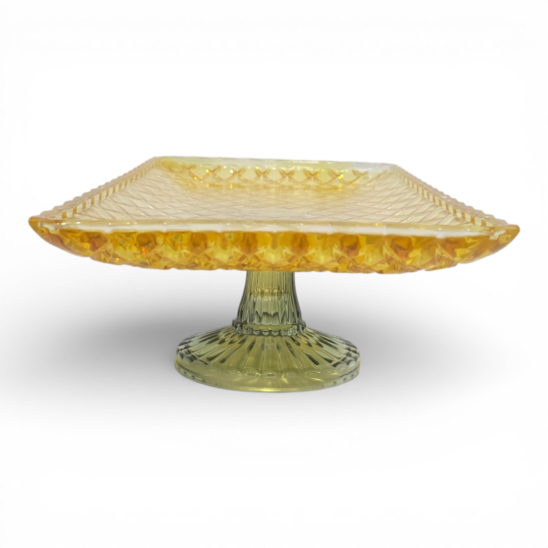 Sudedi Home Sarı Cam Baklava Desenli Ayaklı Sunum Tabağı 37×18 cm