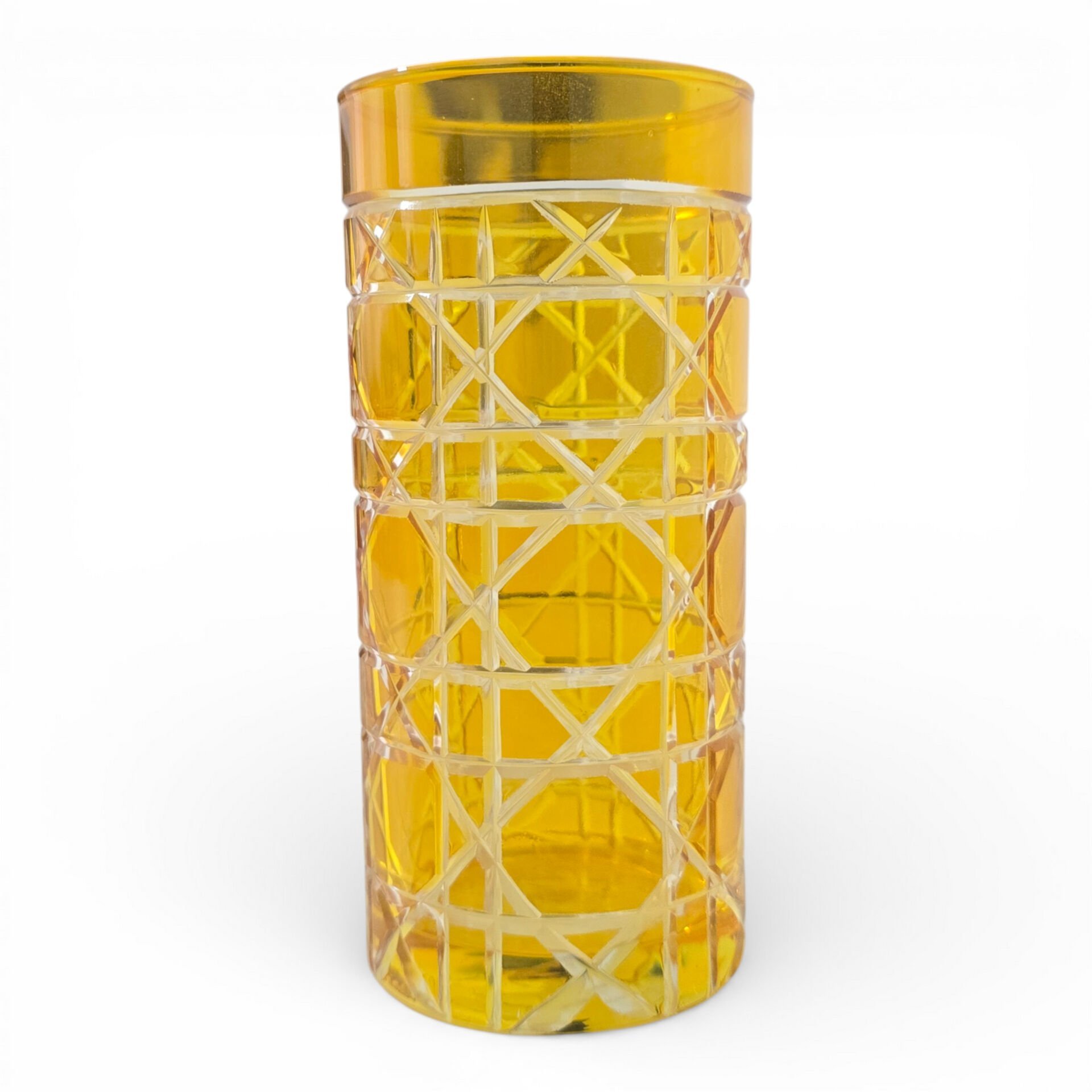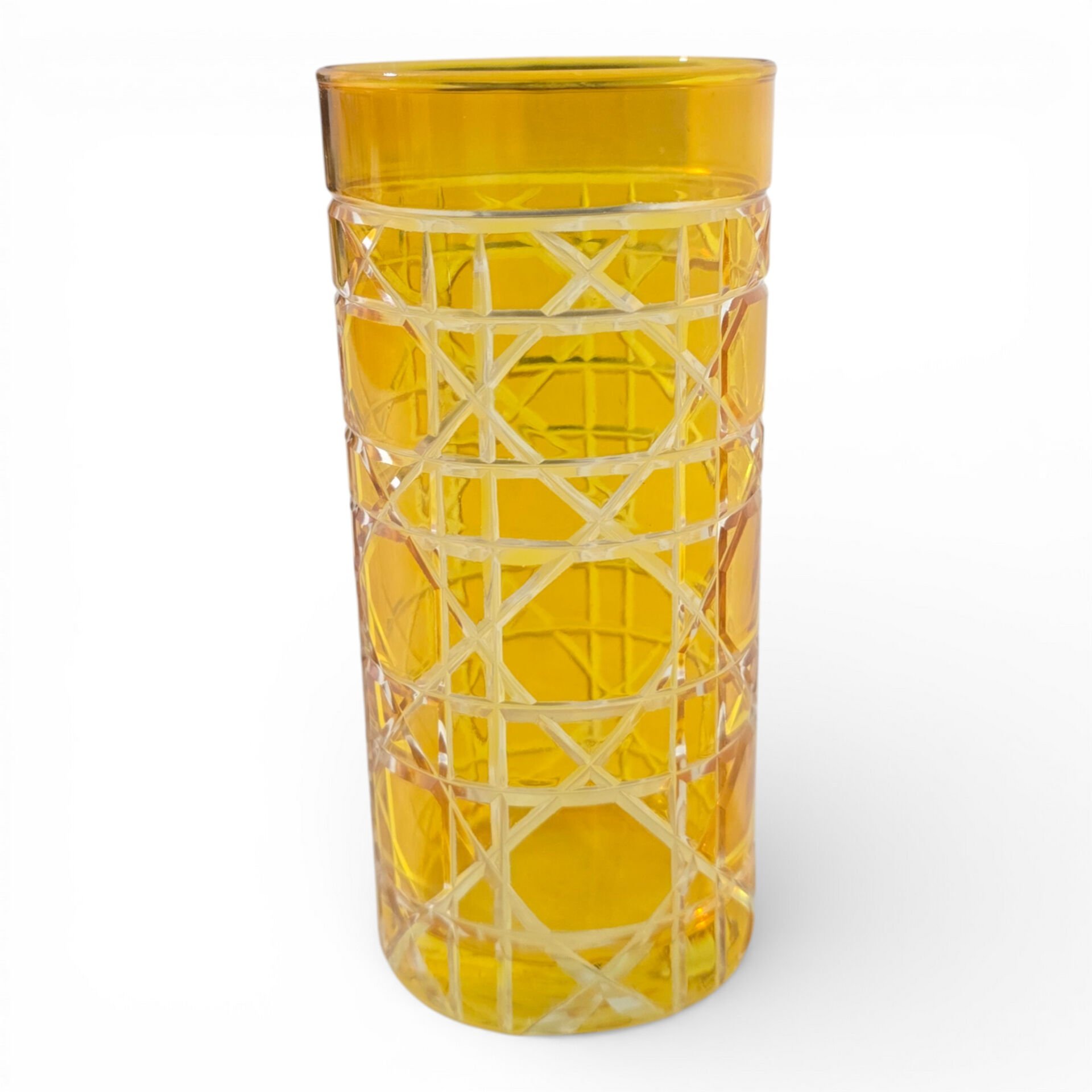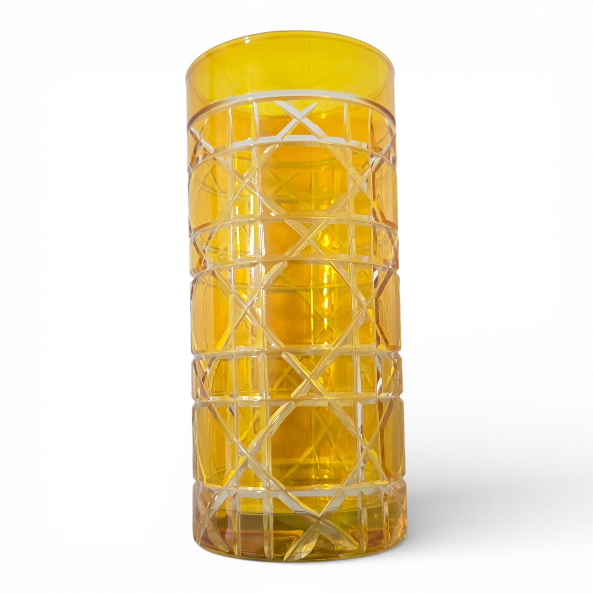 Sudedi Home Sarı Renkli Kesme Desenli Cam Sunum Bardağı