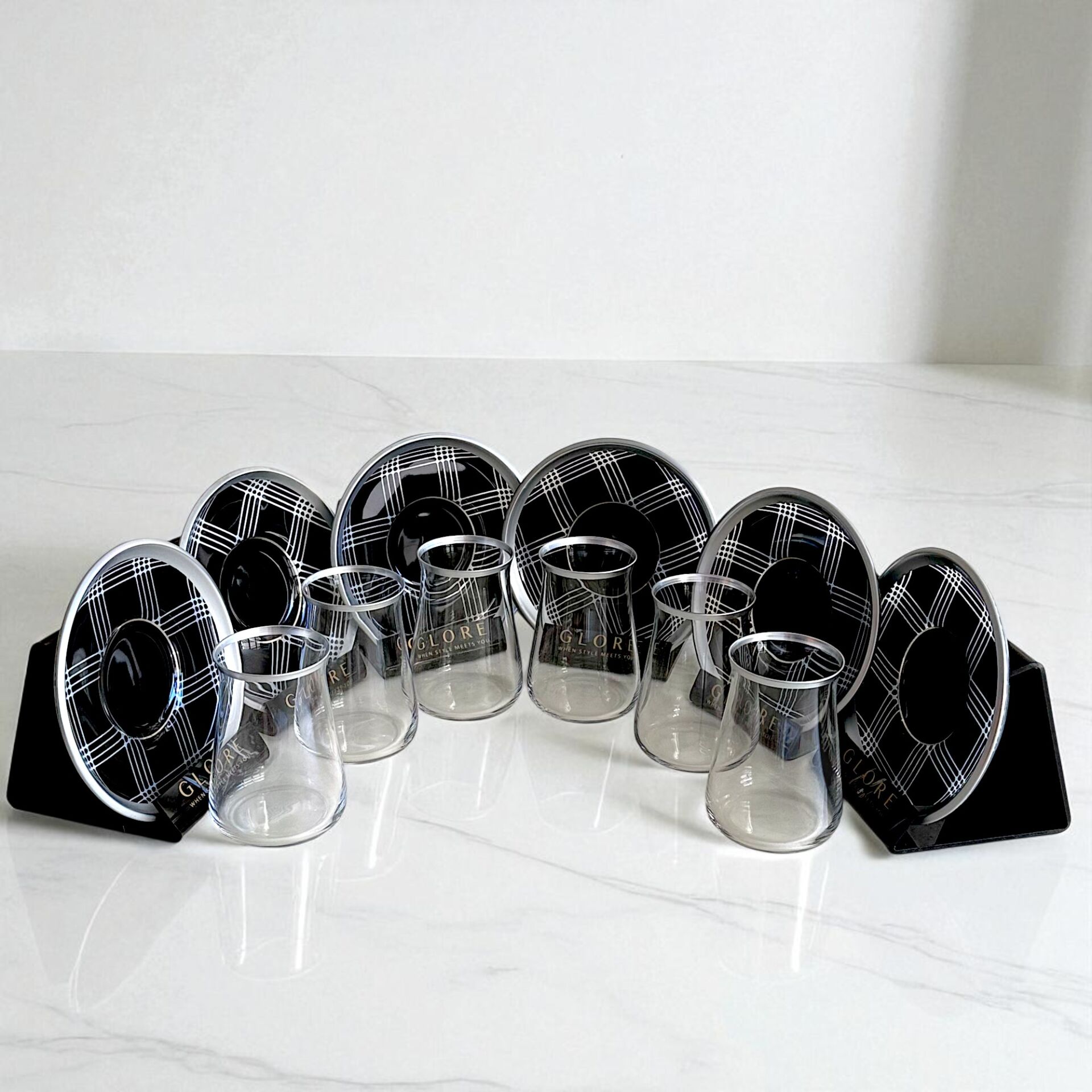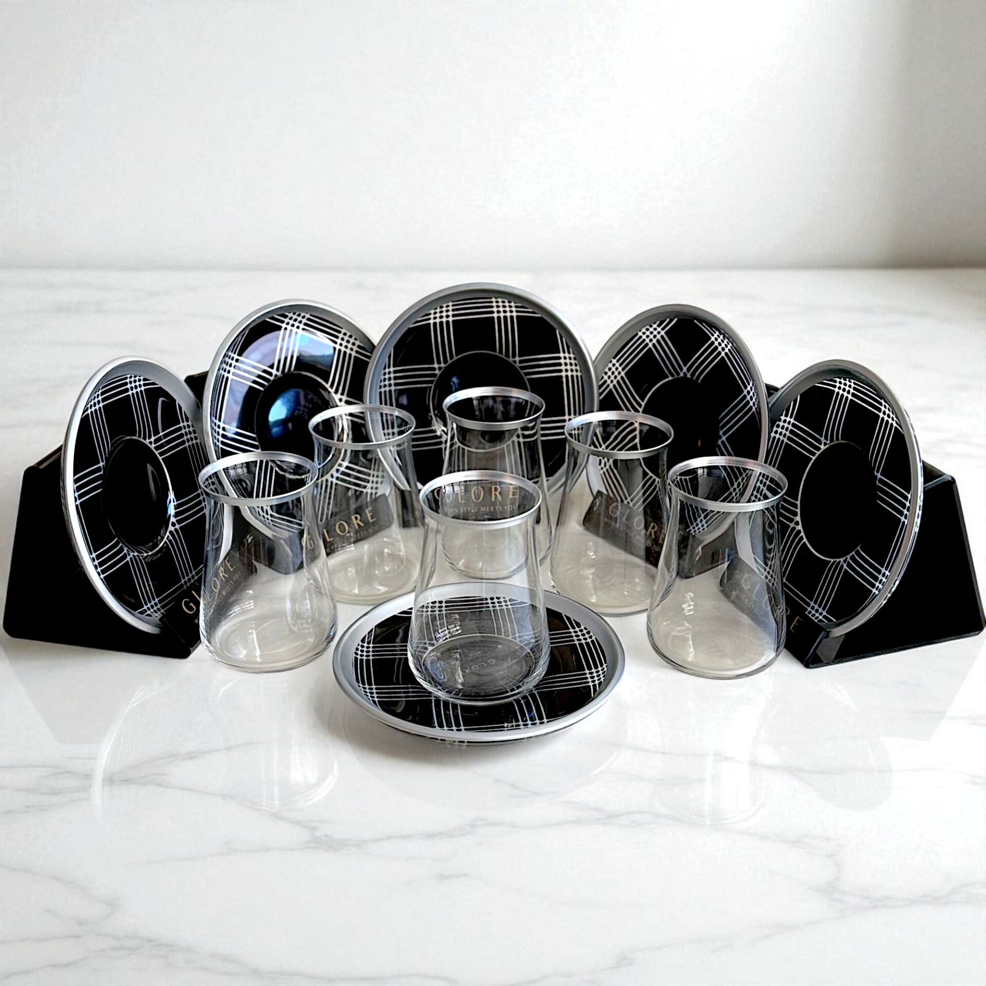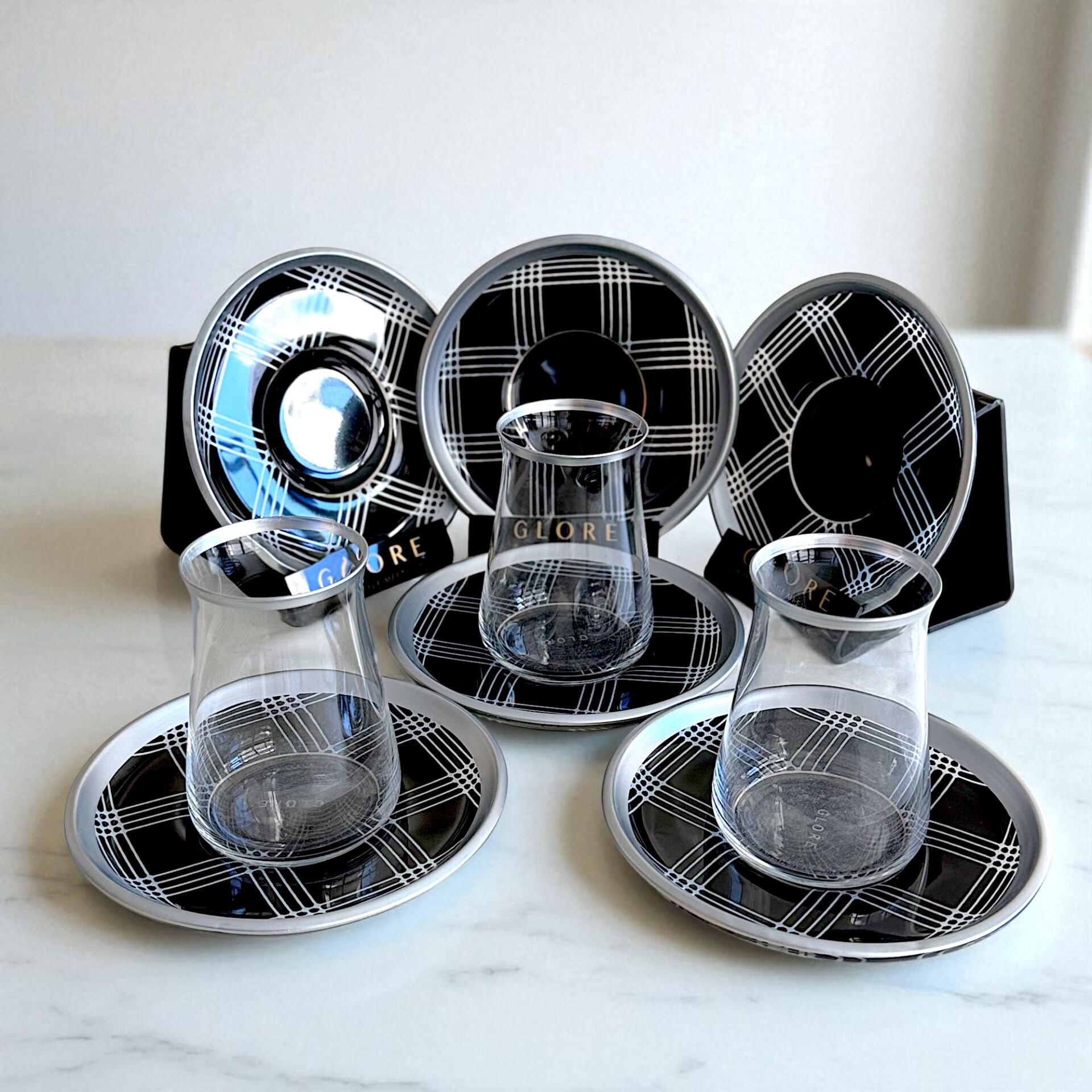 Sudedi Home Siyah Beyaz Kareli 6 Kişilik Çay Bardağı Seti ile Sofra Sunumlarınıza Modern Bir Dokunuş Katın!
